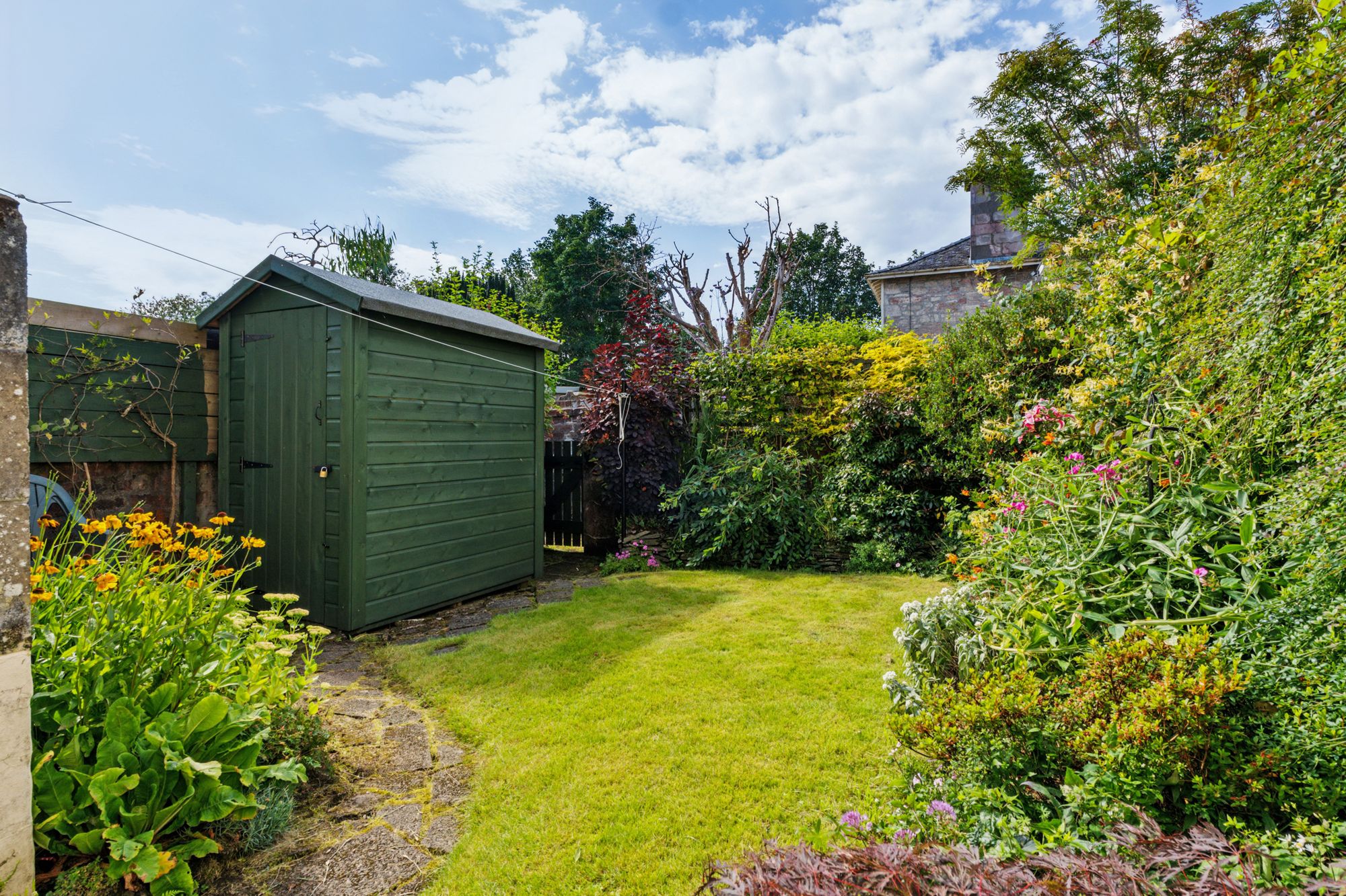 The front and rear gardens are designed for ease of maintenance, with the rear garden laid to lawn and bordered by handsome brick walls. Direct access via a rear lane ensures convenience, complemented by a timber garden shed for additional storage.