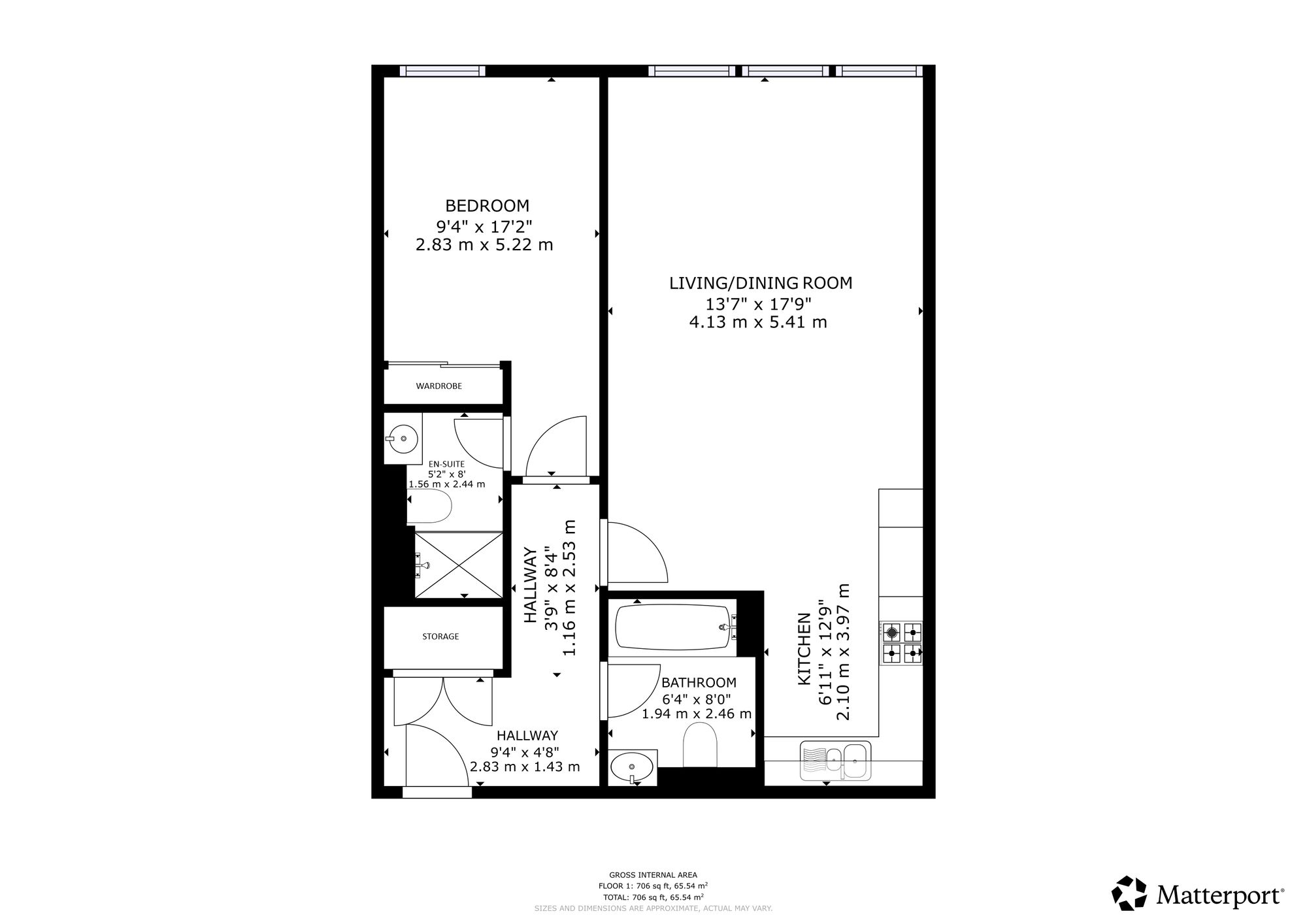 The attached photographs, floor plan and HD video tour will give an indication to the size and layout of the flat. However, in brief the accommodation extends to; welcoming entrance hallway, a bright and spacious living/dining/kitchen with balcony off. The kitchen itself has base and wall mounted units with integrated appliances and an island. There is a double bedroom with built in wardrobes and an en-suite shower room. The accommodation is completed by a tiled main bathroom with three piece suite