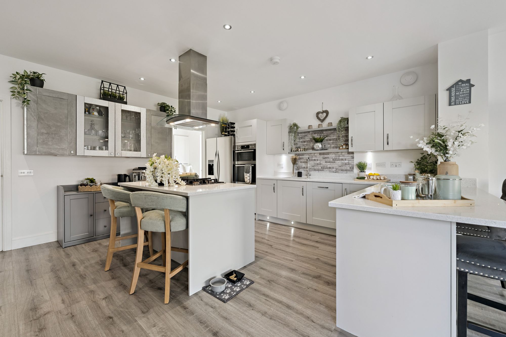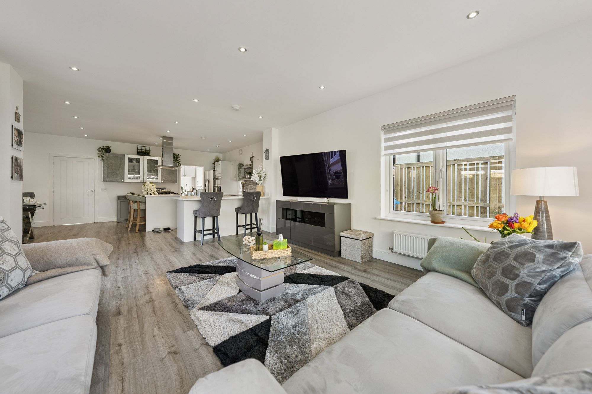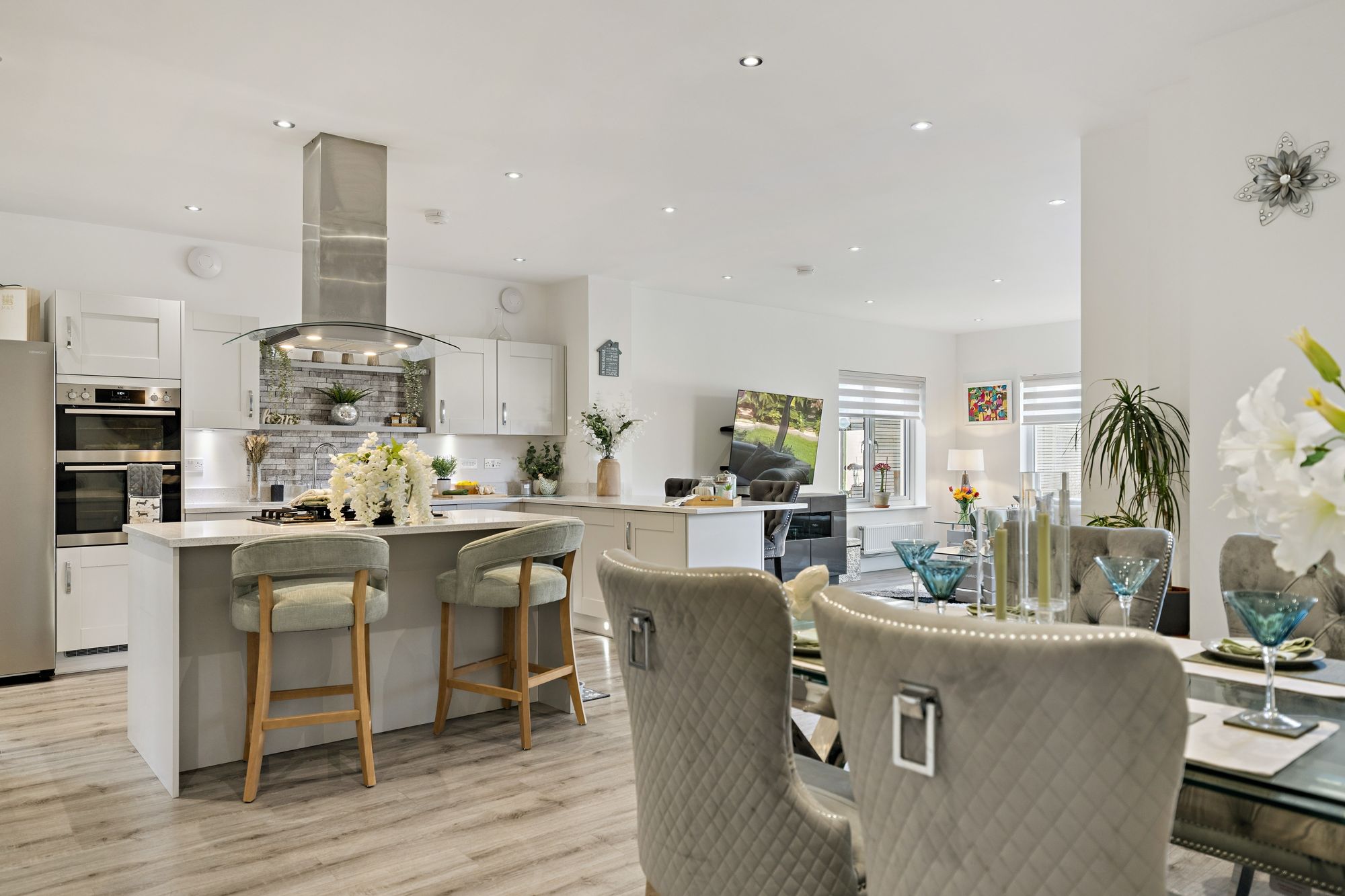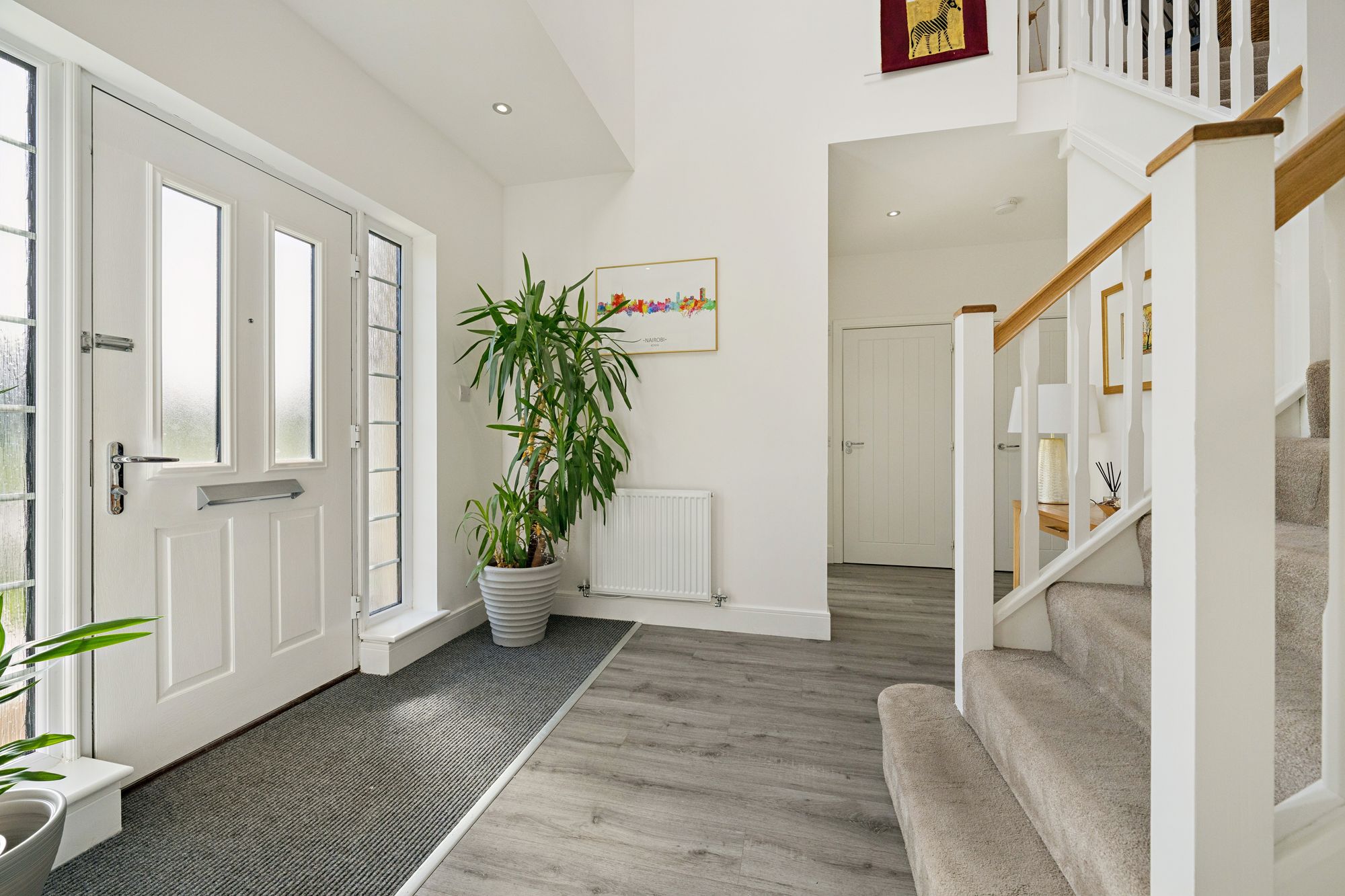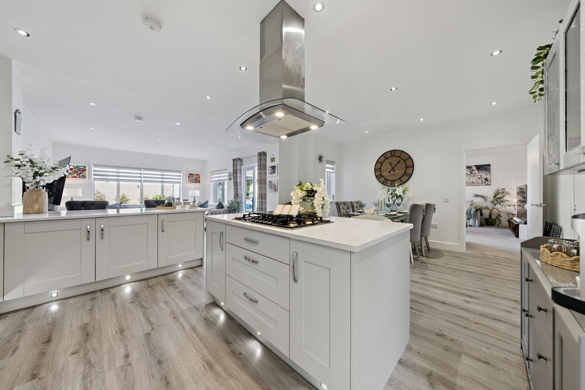 Our 3D Virtual Tours, HD Videos and Floorplans will provide a better idea of form and layout, however, a summary of the accommodation includes an impressive entrance hall, bathed in light from Velux windows on the vaulted ceiling and a staircase leading to the upper level and a large cupboard beneath. The ‘heart of the home’ is the impressive open plan kitchen/dining/living room at the rear of the property which features a range of stunning fitted units adorned with quality worktops culminating in a breakfasting bar with a central island and featuring high end integrated appliances. There is ample space for dining furniture, a spacious living area over looking the rear gardens and access to a separate utility room. There is a large family lounge, a separate office space and a versatile formal dining room/bedroom. Completing the ground floor is a convenient WC/Cloakroom.