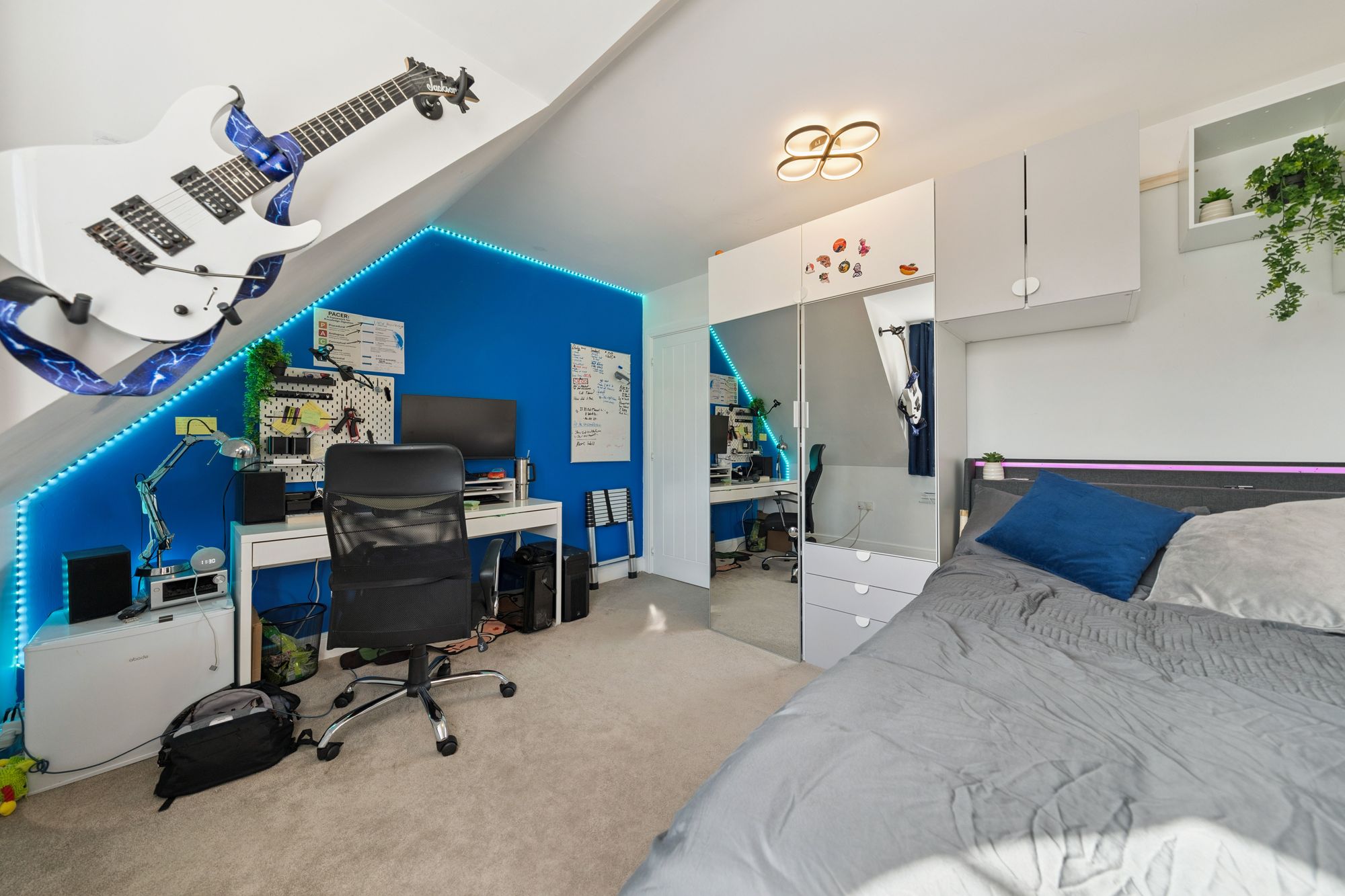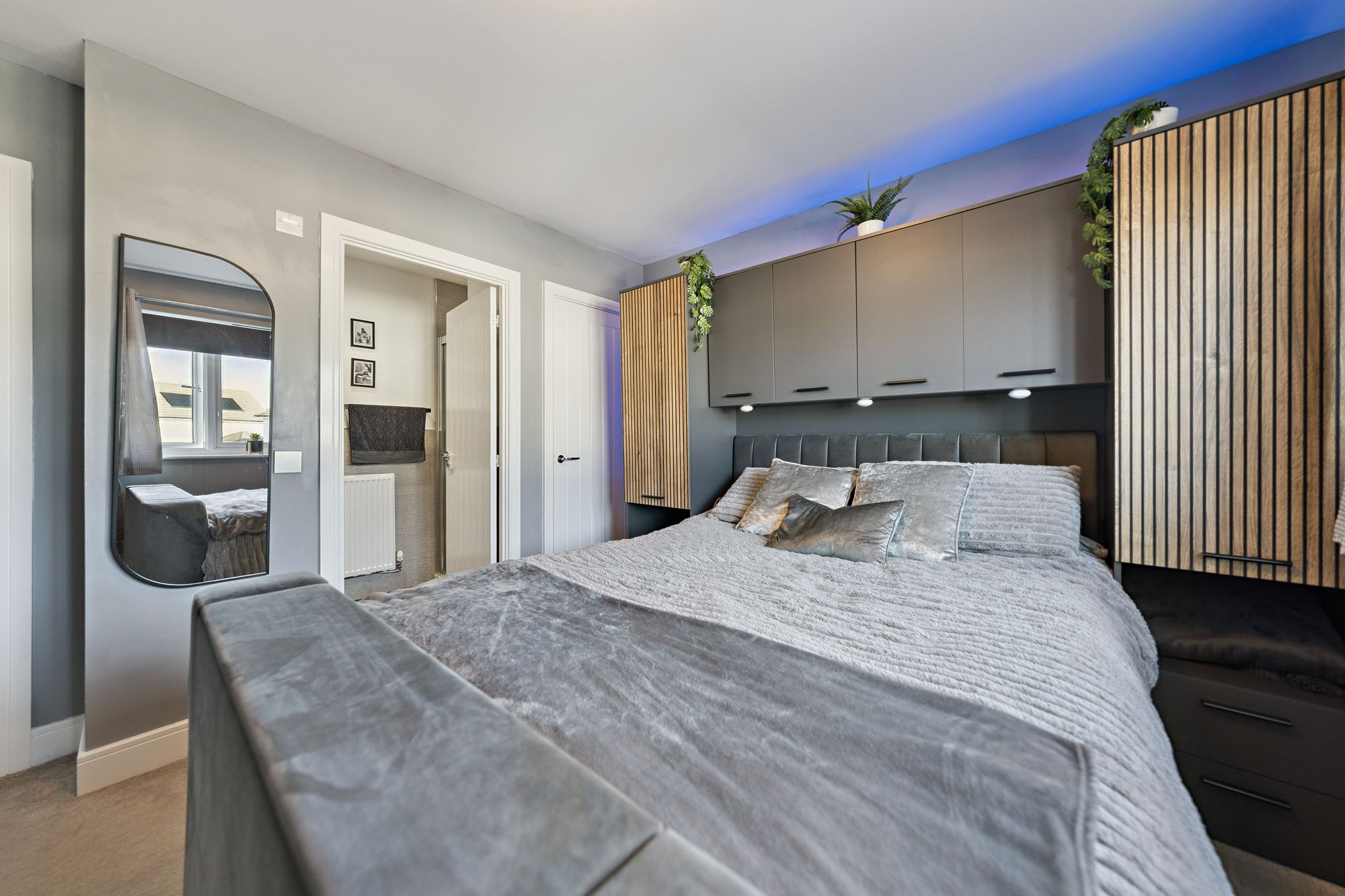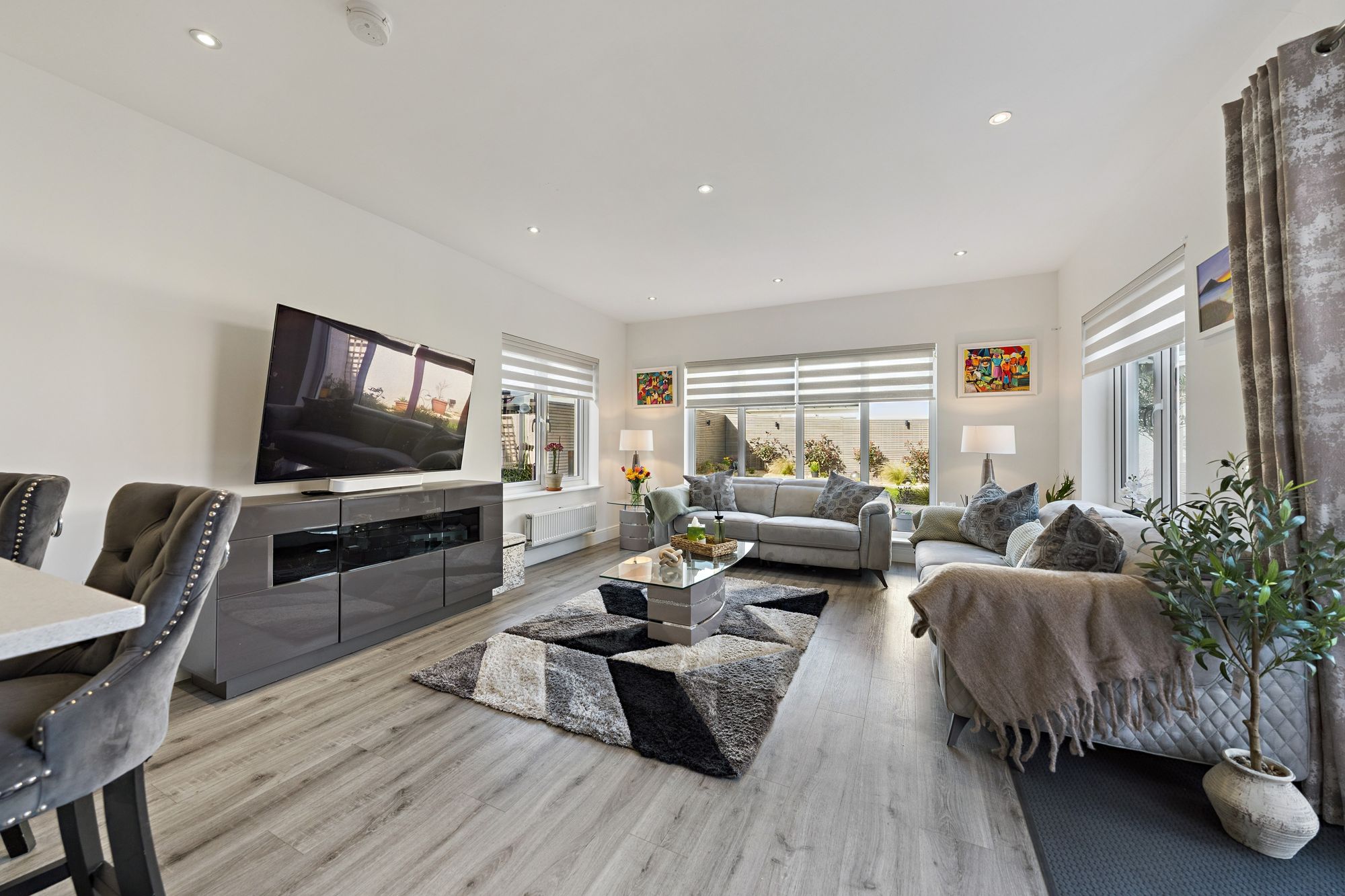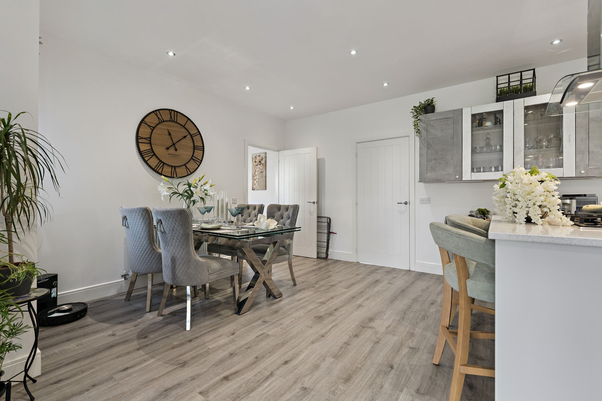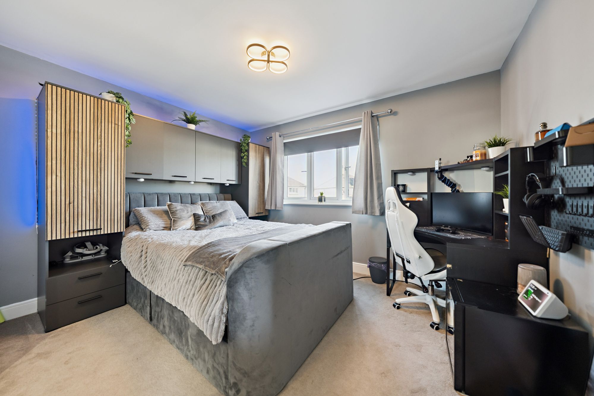 Our 3D Virtual Tours, HD Videos and Floorplans will provide a better idea of form and layout, however, a summary of the accommodation includes an impressive entrance hall, bathed in light from Velux windows on the vaulted ceiling and a staircase leading to the upper level and a large cupboard beneath. The ‘heart of the home’ is the impressive open plan kitchen/dining/living room at the rear of the property which features a range of stunning fitted units adorned with quality worktops culminating in a breakfasting bar with a central island and featuring high end integrated appliances. There is ample space for dining furniture, a spacious living area over looking the rear gardens and access to a separate utility room. There is a large family lounge, a separate office space and a versatile formal dining room/bedroom. Completing the ground floor is a convenient WC/Cloakroom.