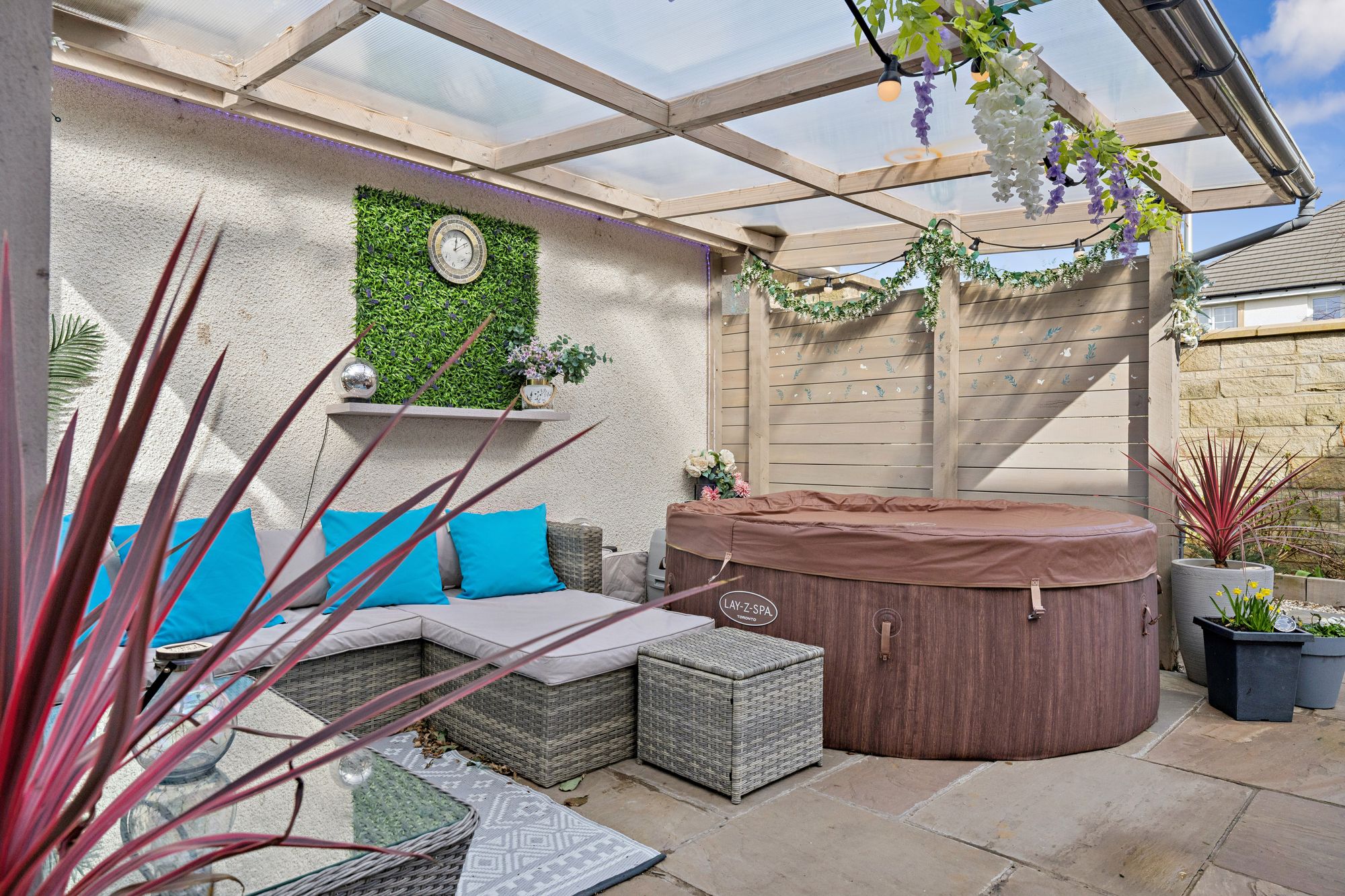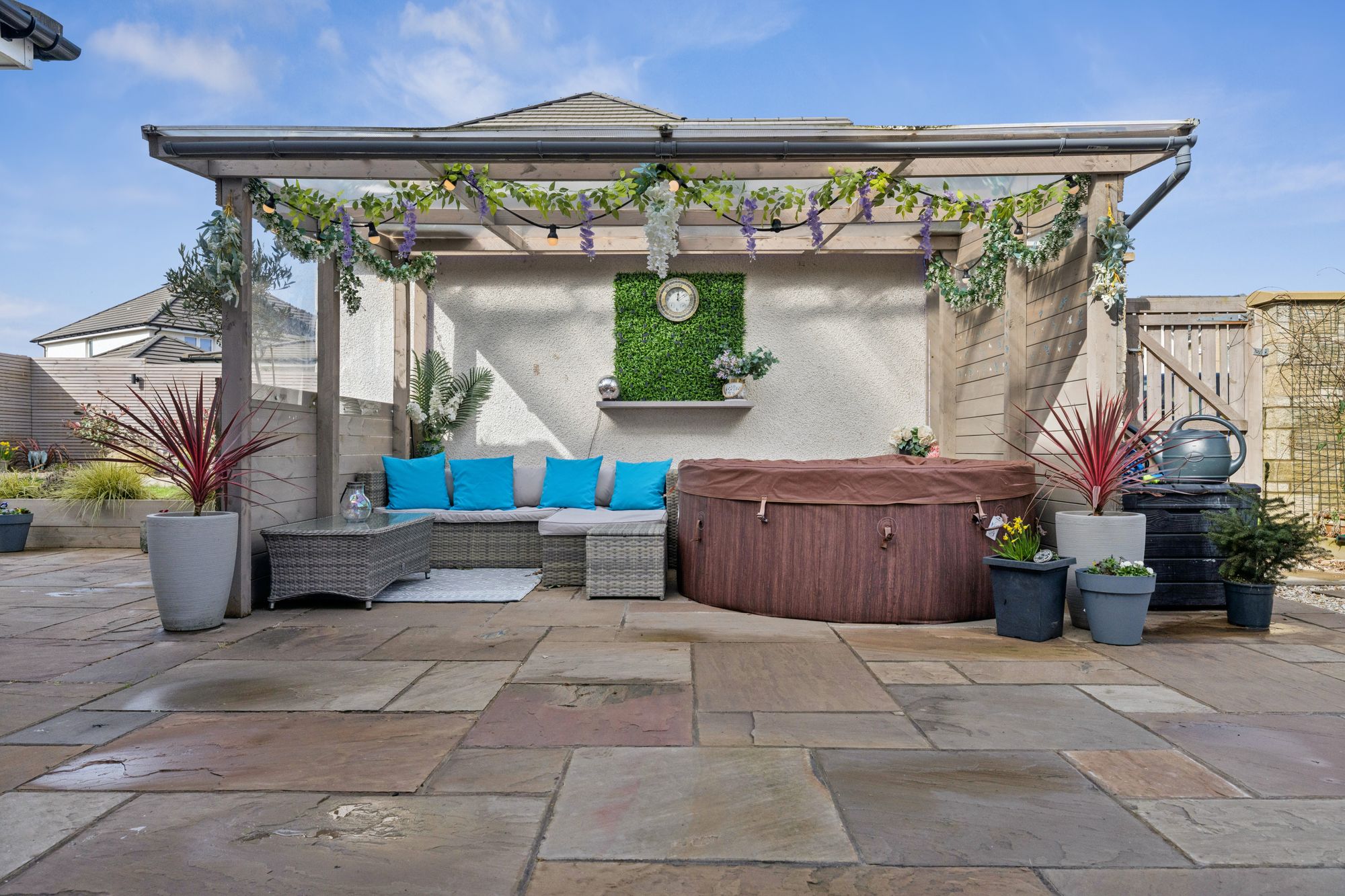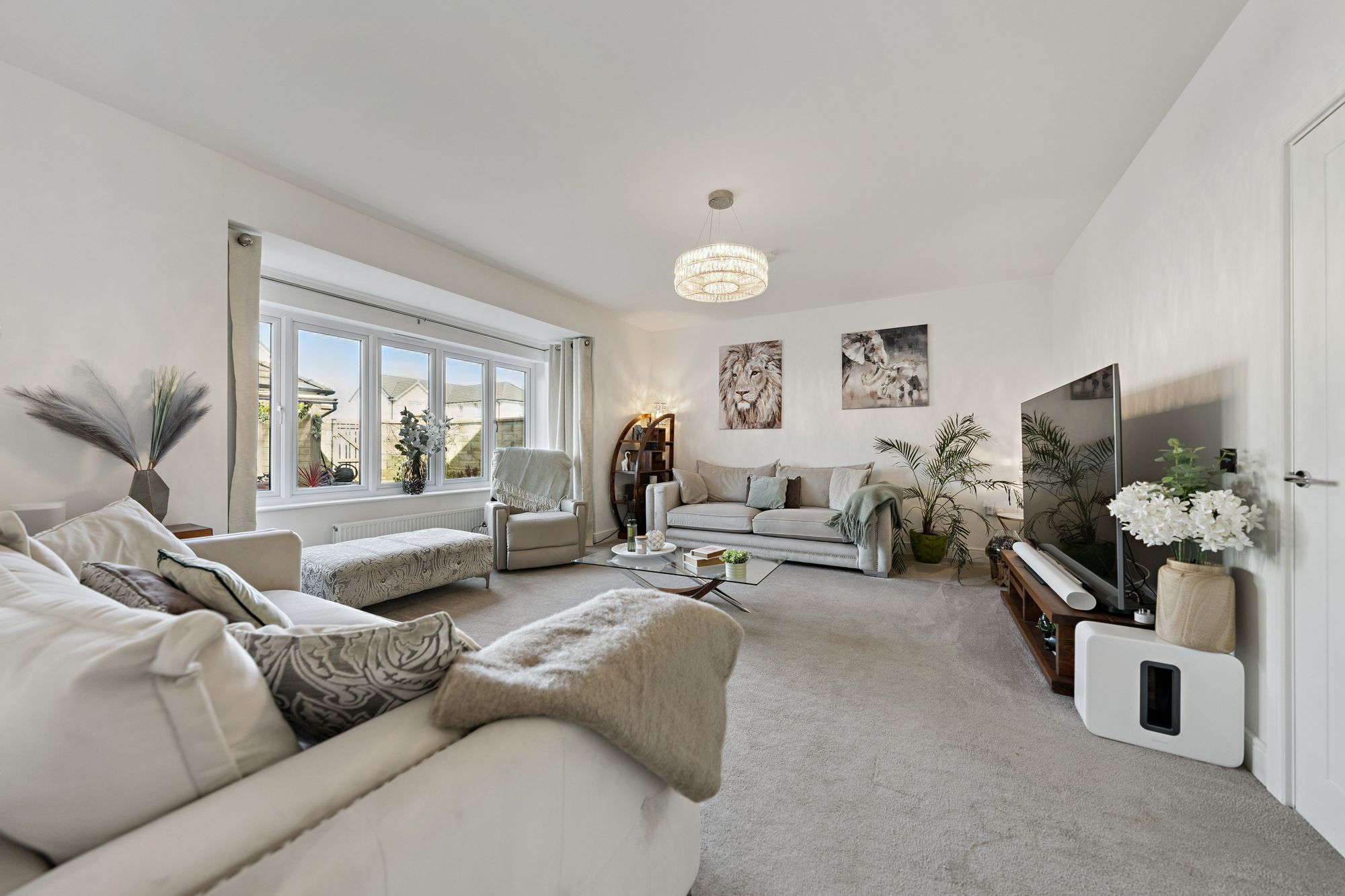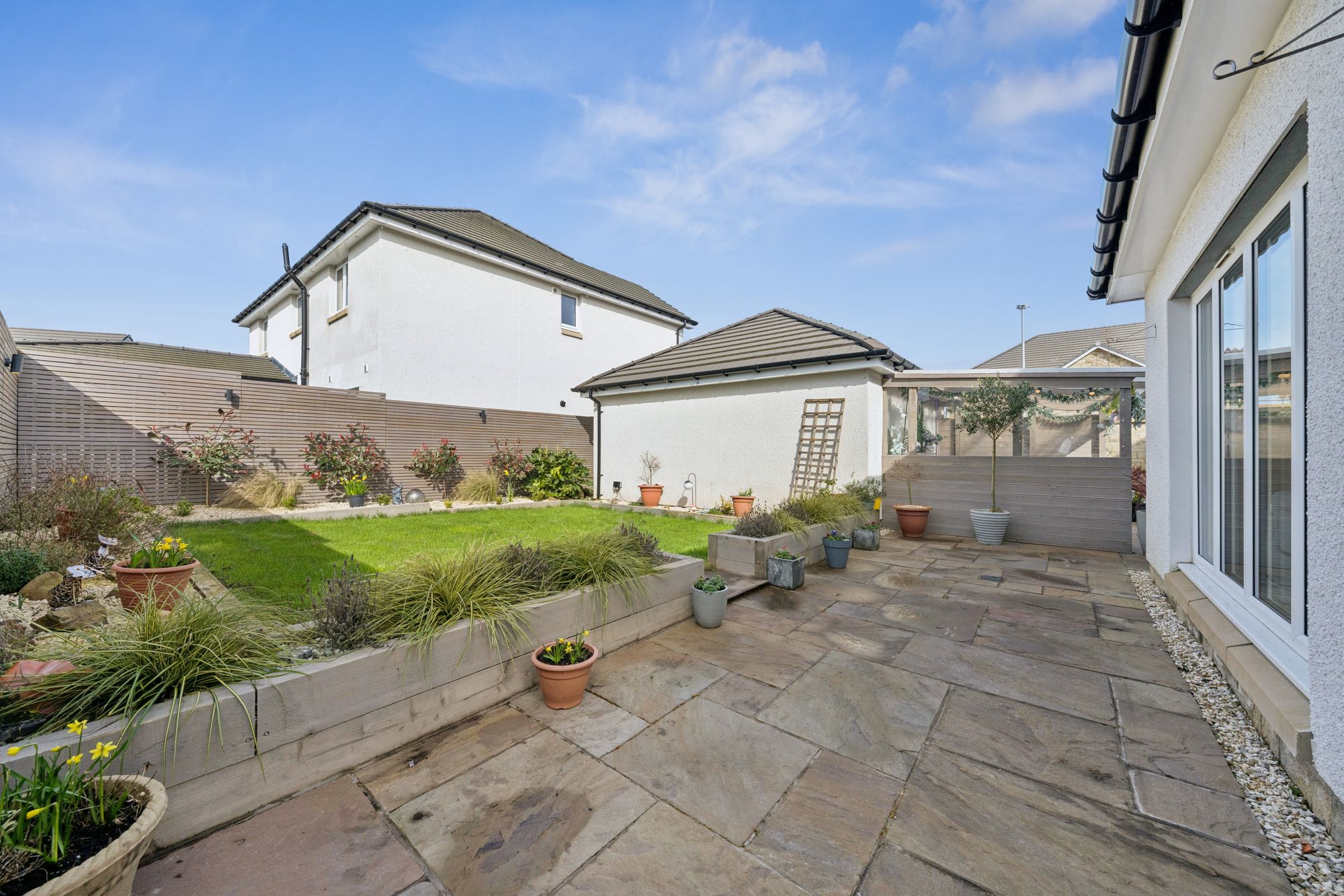 The property commands a level, corner plot accompanied by a double garage and monobloc parking for two vehicles. The rear garden is fully enclosed, landscaped and particularly private comprising of a manicured area of lawn bordered by well stocked display beds and a covered patio area which is perfect for outside entertaining.