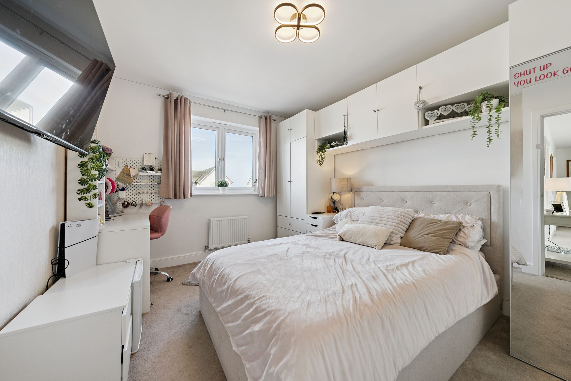 Set within this hugely popular modern development and falling within the catchment for prestigious primary and secondary schooling, this stunning detached family home is presented to market in impeccable order throughout. Set within a generous corner plot and enjoying fabulous open aspects to the front, this ‘Forbes’ from Taylor Wimpey’s Elite Range combines spacious and highly flexible family accommodation across ~2315sqft over two levels with state of art fixtures and fittings within the kitchen and bathrooms and is finished with stylish décor throughout. This particular home benefits from enhanced ceiling heights, adding to the feeling of light and space and will prove highly appealing to families looking for a generational home.