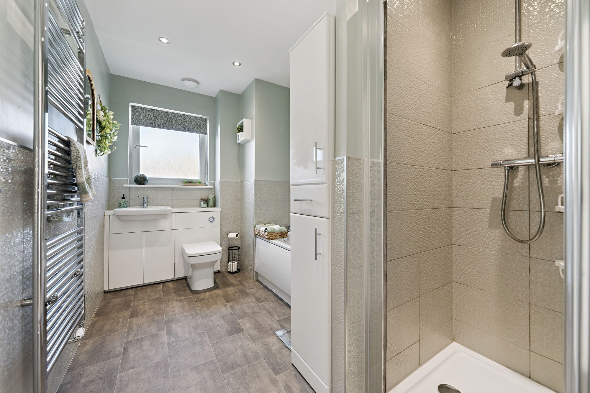 The upper level of the property has a central landing providing access to five sizeable bedrooms with the principal room and bedroom two benefitting from ensuite shower rooms. The family bathroom comprises of a four piece suite in white with stylish tiling.