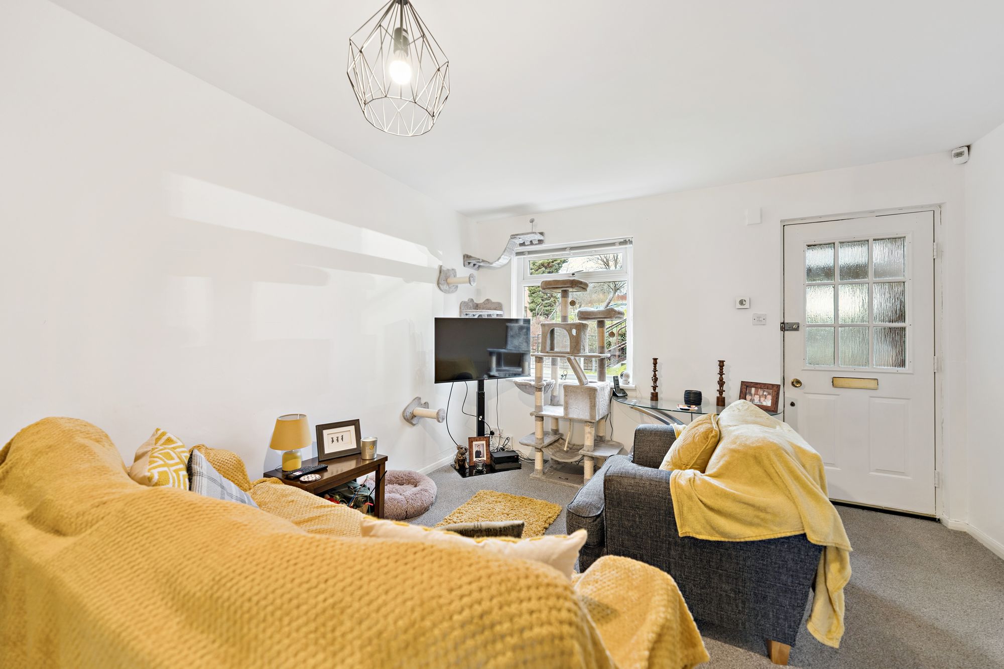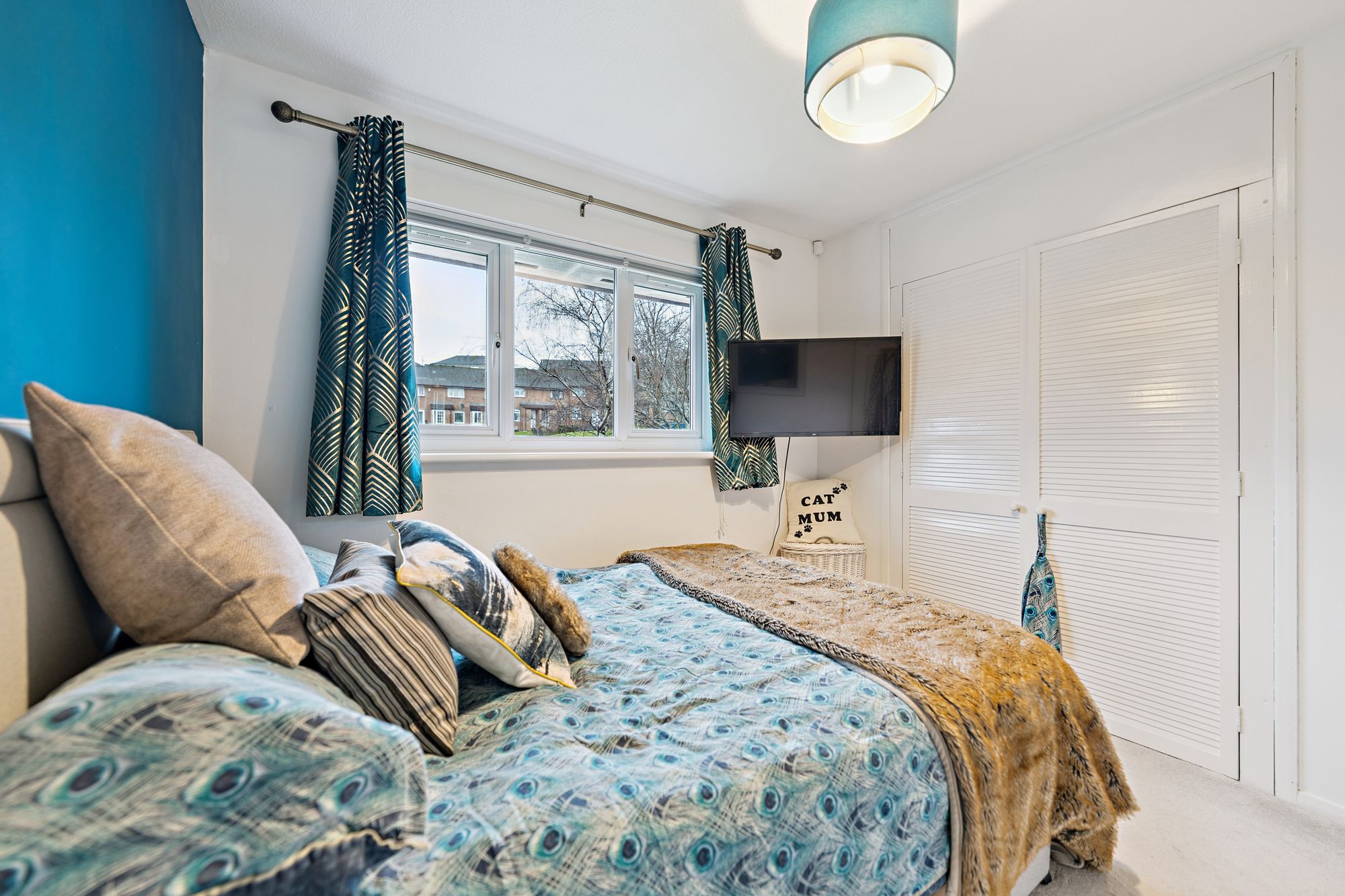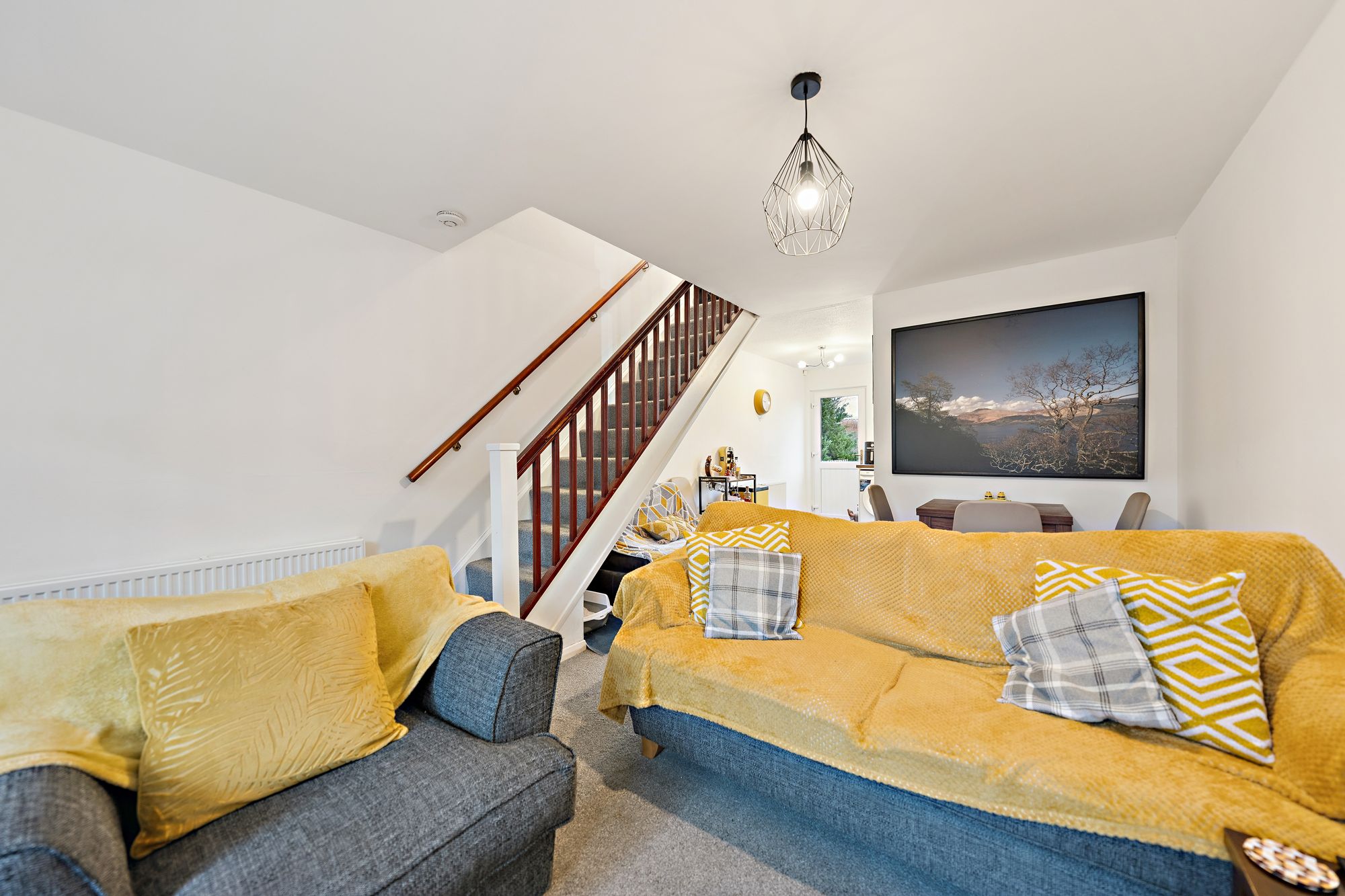 Upstairs, the upper landing gives access to two well-proportioned double bedrooms, both featuring integrated storage, and a contemporary family bathroom complete with a three-piece suite and shower over bath.