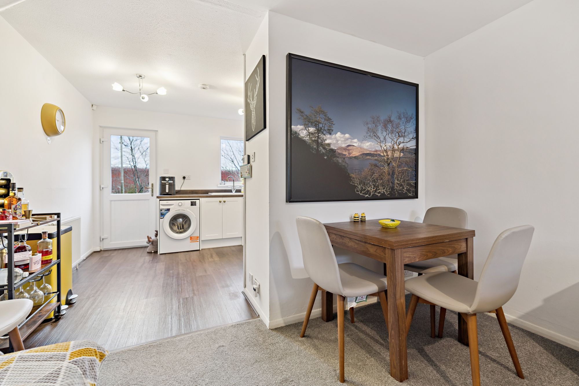 The ground floor comprises a bright and welcoming entrance vestibule leading to a generously proportioned lounge to the front. To the rear, the superb modern fitted kitchen boasts a range of sleek base and wall-mounted units and offers direct access to the enclosed, rear garden ideal for outdoor dining and relaxation.