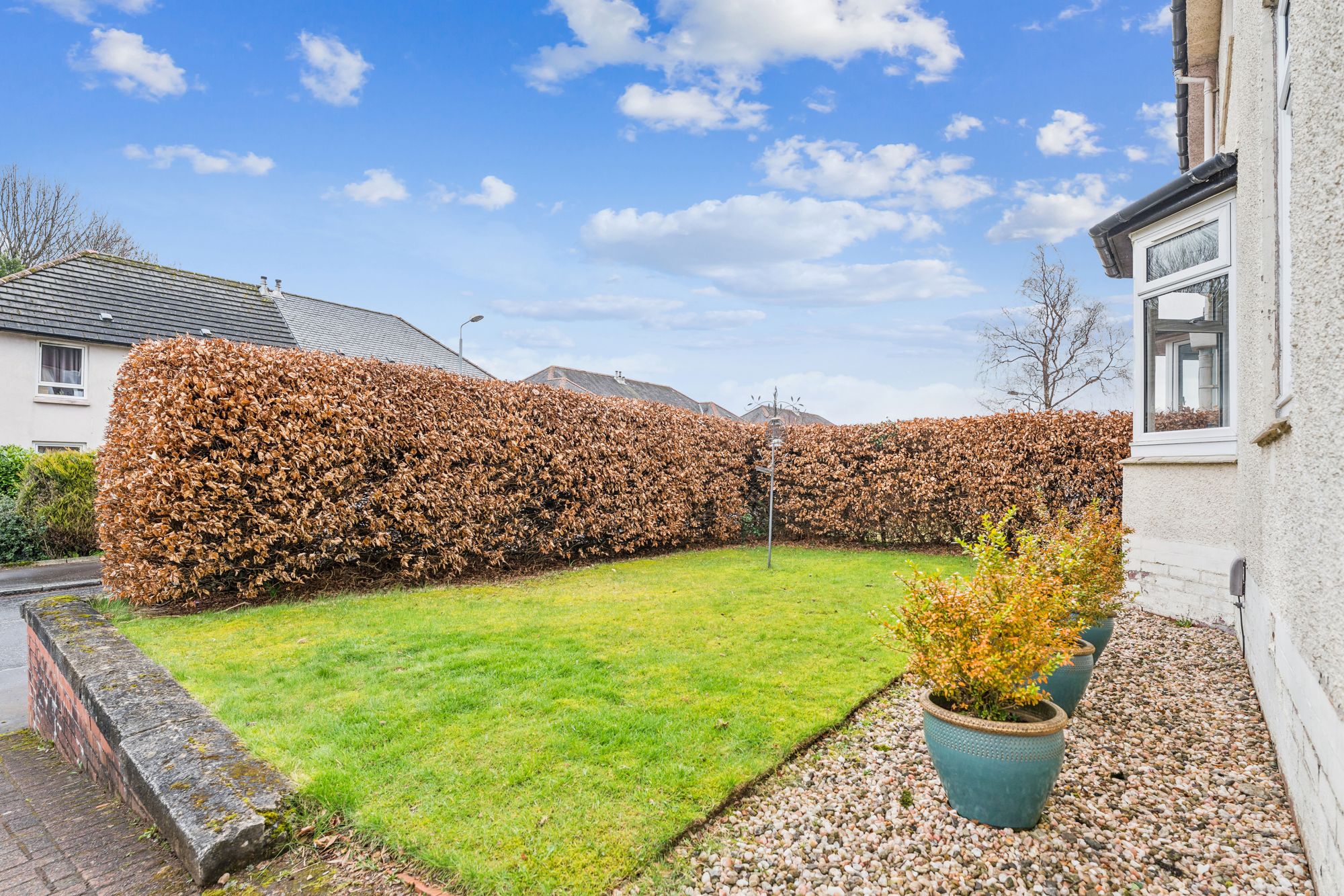 The village centre is just a short five-minute walk away, offering an excellent selection of shops, cafés, and amenities, including Boots, Marks & Spencer, Tesco, and Waitrose. The area is well served by highly regarded schooling, including Craigdhu Primary and Douglas Academy. Excellent transport links are also available, with regular bus services and a nearby railway station providing frequent connections to Glasgow’s West End and city centre.