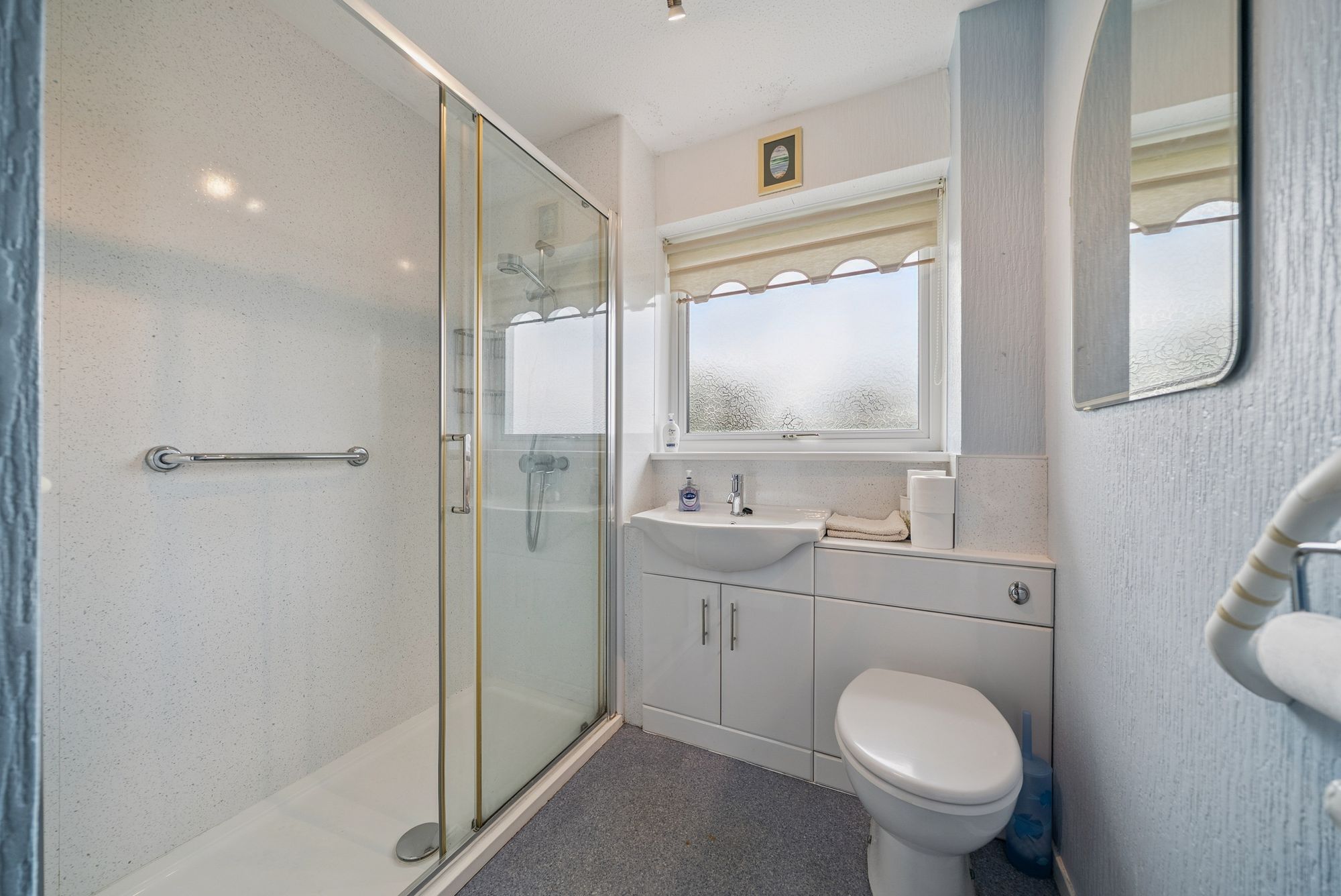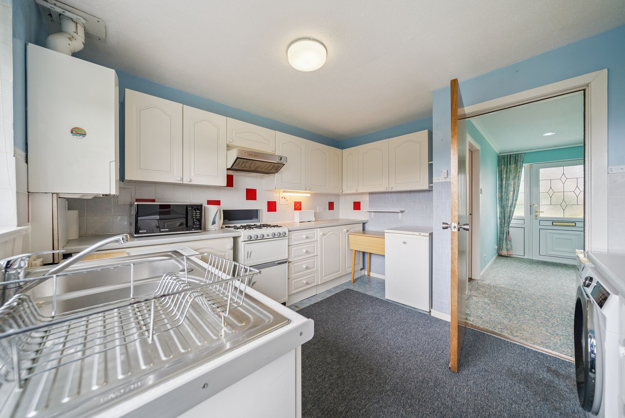 Internally, the home offers well-laid-out, flexible accommodation comprising: A welcoming entrance hallway with useful storage, A bright and spacious lounge/dining room, comfortably accommodating a three-piece suite and dining table. A well-appointed kitchen, featuring an extensive range of floor and wall-mounted units, free standing appliances and access to the rear garden via a side door, with a rear-facing double window allowing excellent natural light. Three well-proportioned bedrooms, all benefiting from built-in storage. A stylish, refitted shower room comprising a modern three-piece suite including WC, wash hand basin, and shower enclosure with electric shower