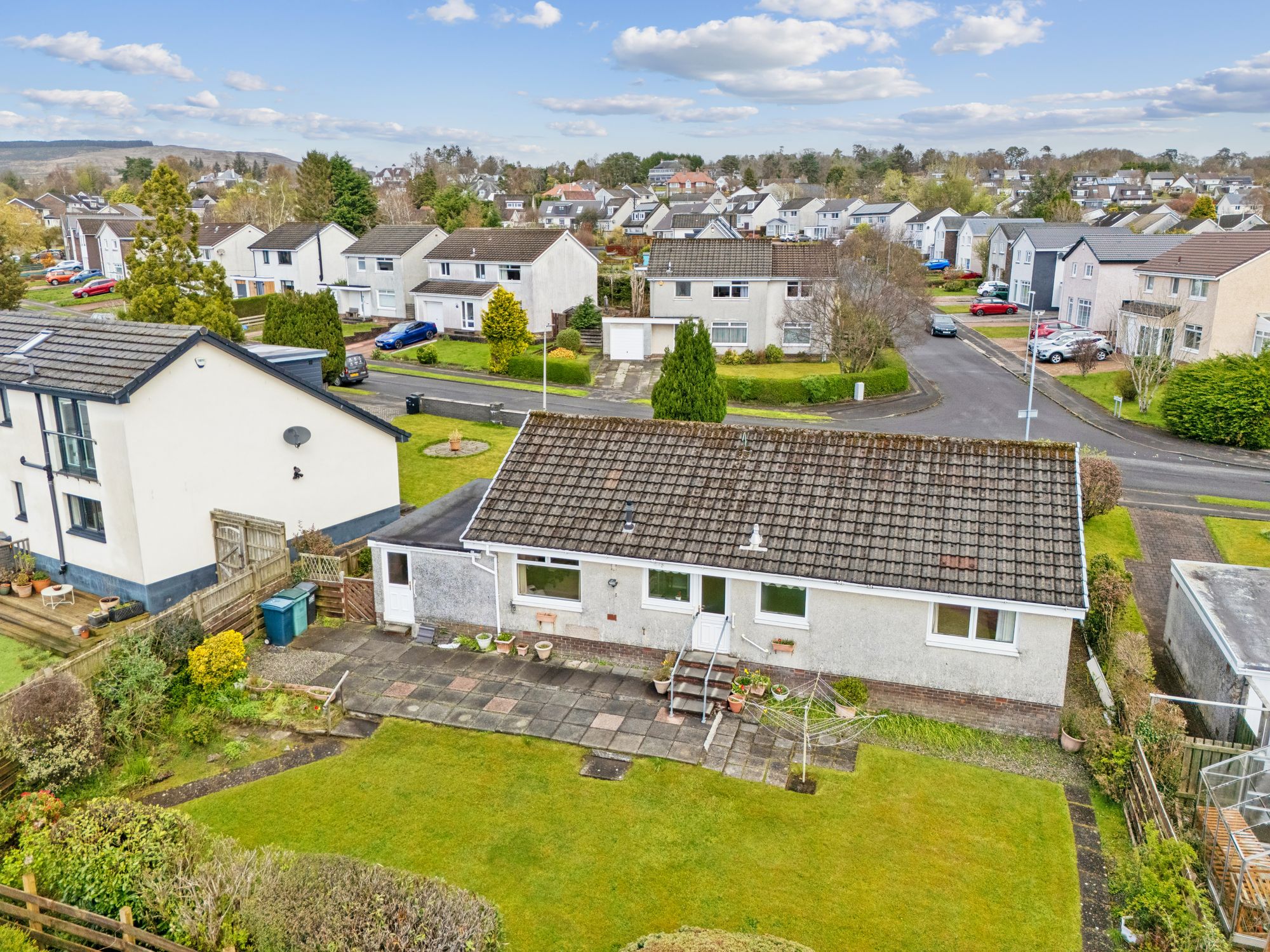 Situated within a highly desirable residential area in Helensburgh, this attractive detached bungalow is brought to the market in good internal condition, having been well maintained by the current owners during their residency. Set within generous, well-tended garden grounds, the property enjoys a peaceful setting with enclosed front and rear gardens. A paved driveway provides off-street parking for two to three vehicles and leads to an attached single garage with an up-and-over door.
