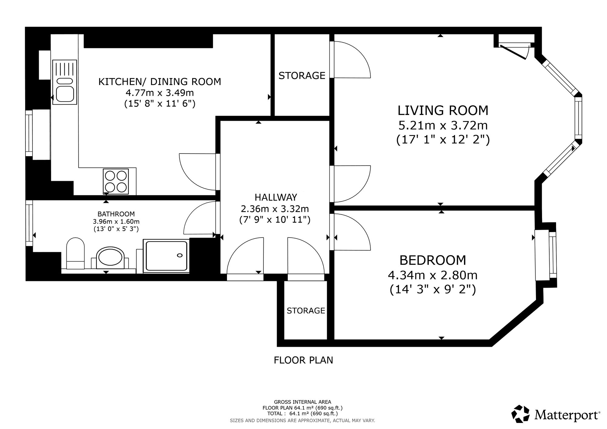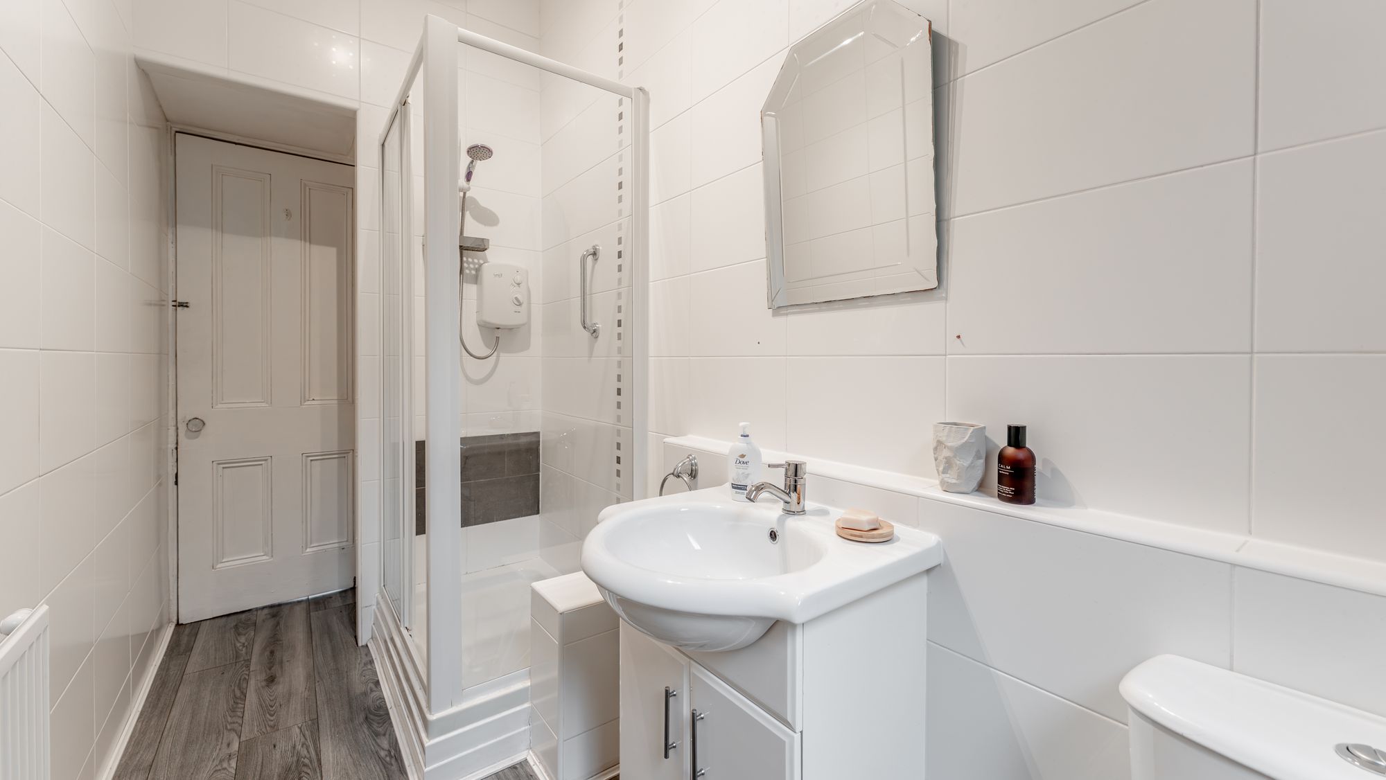 The building itself is accessed via a secure entry intercom system with stairs providing access to all levels. Internally, this is an exceptionally well presented flat and the accommodation extends to; welcoming entrance hallway with storage off, wonderful bay windowed living room with walk in cupboard, spacious double bedroom, a modern dining sized kitchen with hand made cabinetry and dining recess. The accommodation is completed by a fully tiled shower room with enclosed cubicle.