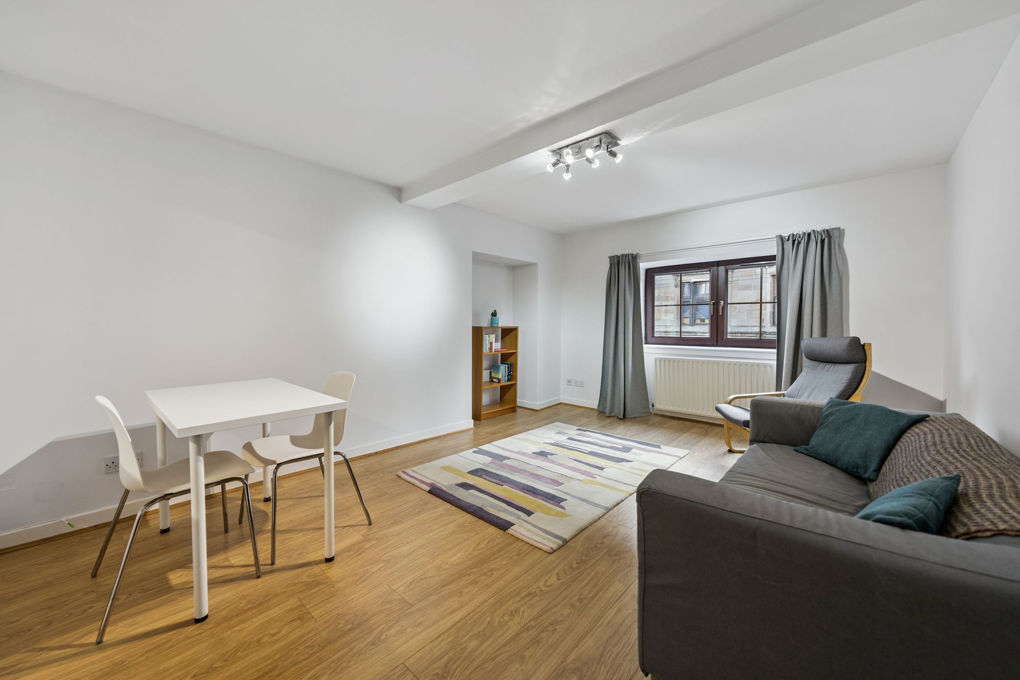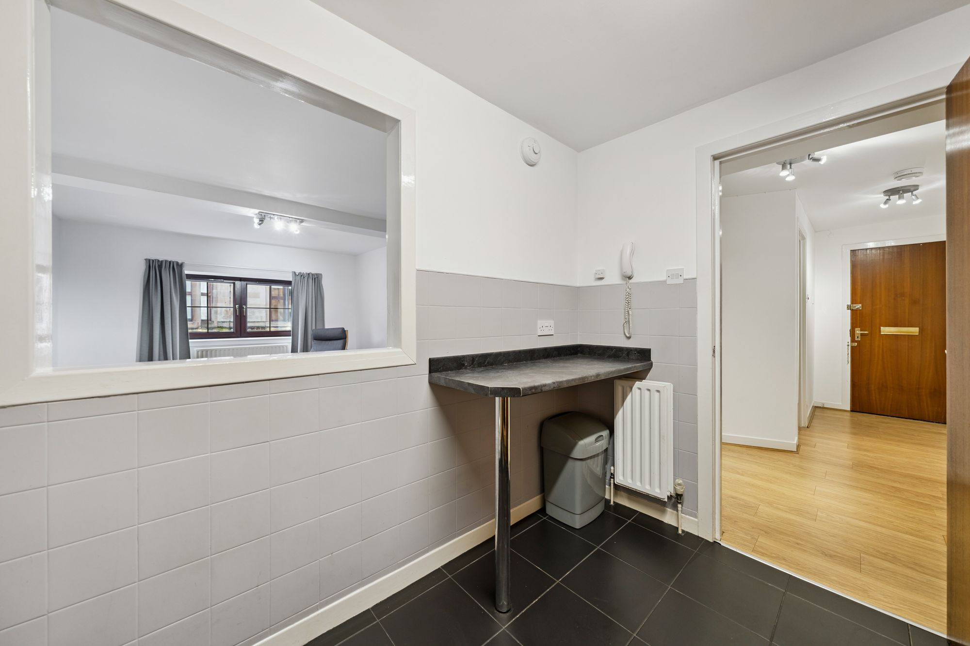 Accessed via a secure door entry system into a well-maintained communal close, the apartment opens into a welcoming reception hall with a large storage cupboard off. The generous living room is bright and spacious, providing ample room for both lounge and dining furniture, creating an ideal space for relaxing or entertaining. The fitted kitchen is well appointed with a range of floor and wall mounted units, offering excellent storage and complemented by integrated appliances.