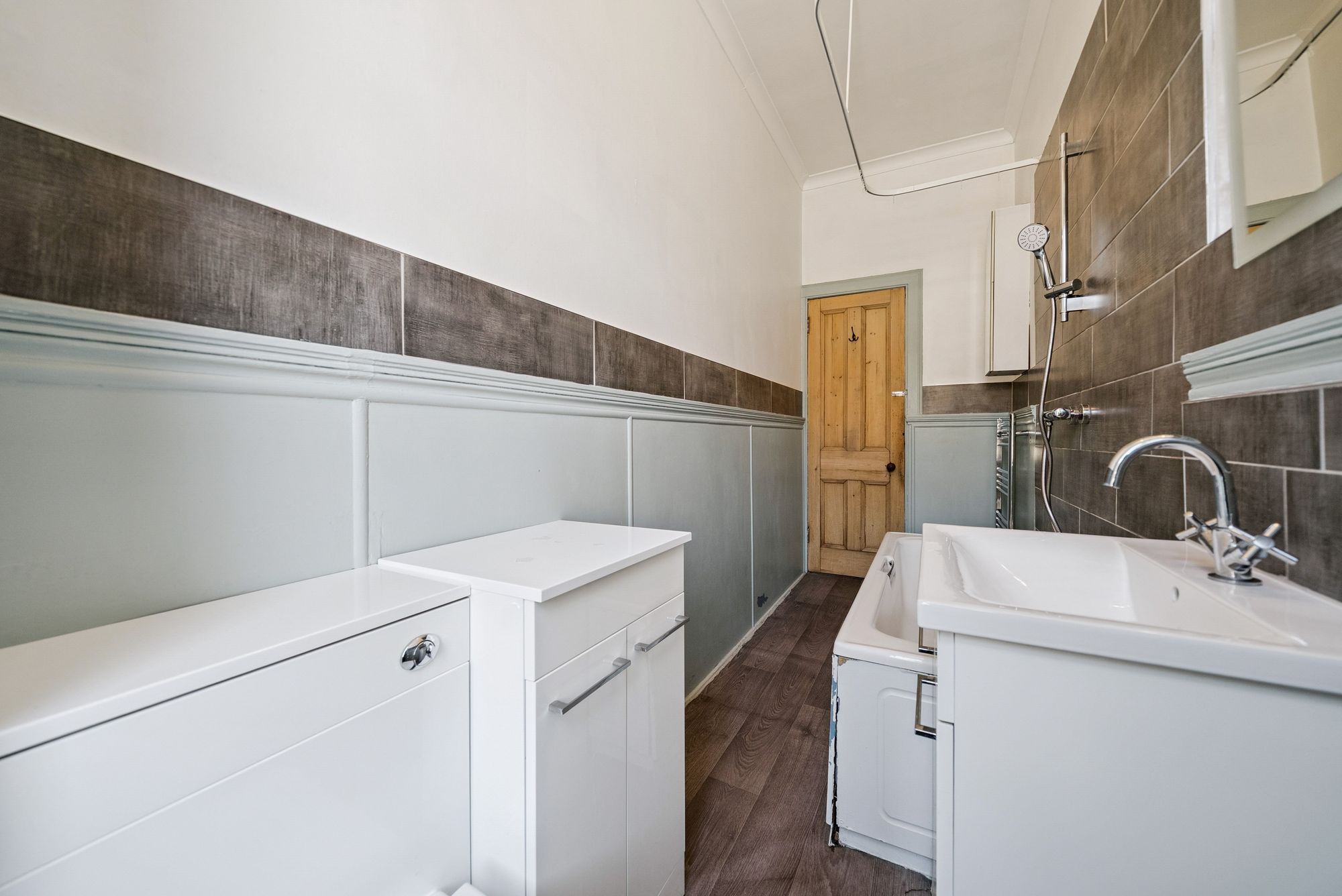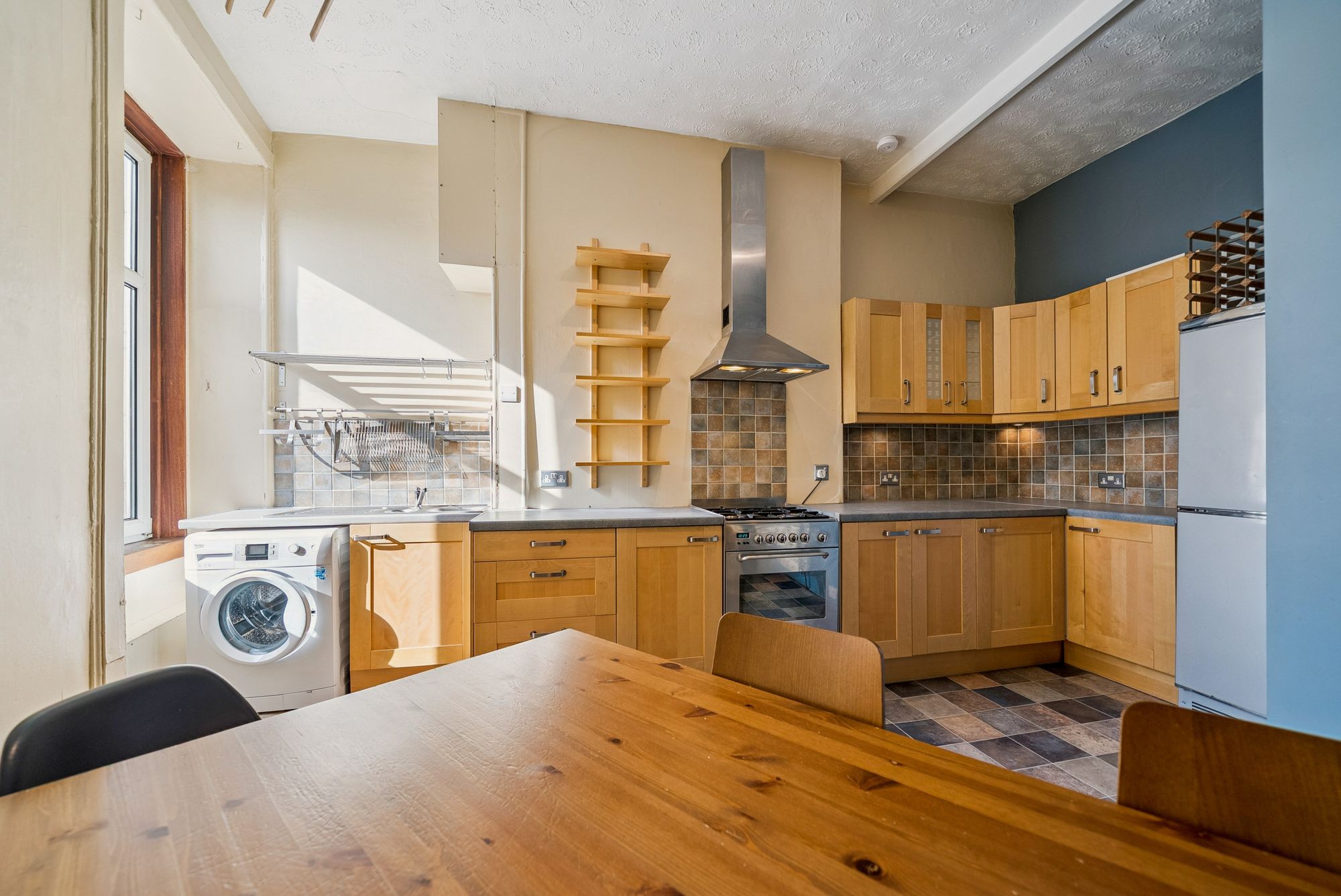 To the rear, there is a spacious dining sized kitchen with ample room for both cooking and entertaining. There are two well-proportioned double bedrooms, both offering excellent space and flexibility, and a well appointed galley style bathroom complete with three piece suite and shower over bath.