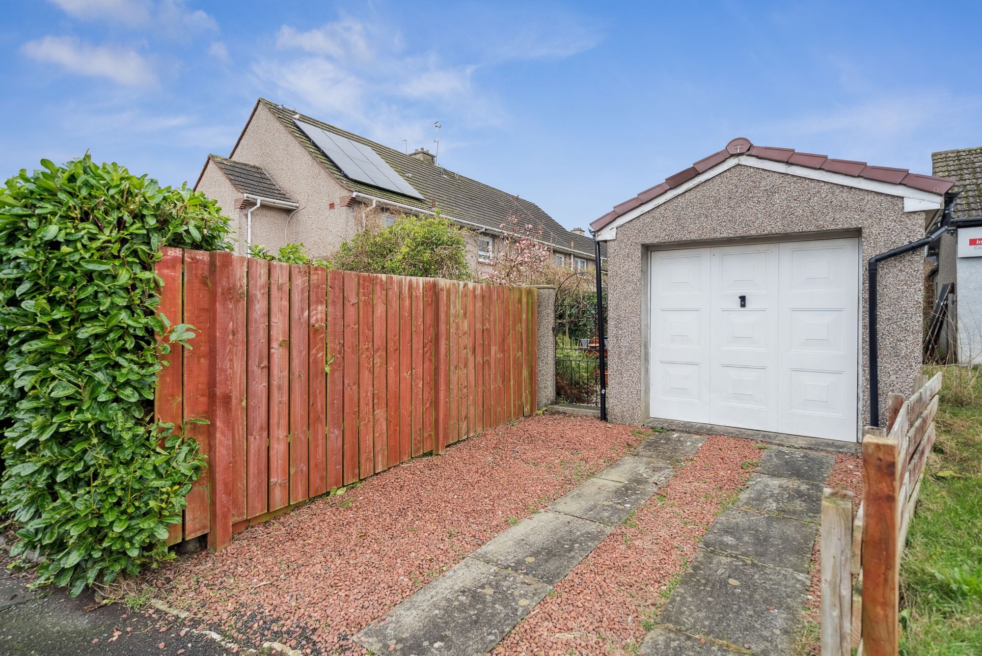 Externally, the property boasts well-tended lawned and bordered gardens, paved and gravelled areas, and two gravelled driveways. A detached single car garage, with light, power, and a small workbench, provides practical parking and workspace, while a brick-built garden store offers additional storage. Mature fruit trees and shrubs add privacy and character, with a laurel bush forming part of the boundary onto Mains Avenue. With mains gas heating, double-glazed PVC windows, and a desirable corner plot, this property represents a fantastic opportunity for first-time buyers, professionals, or those looking to down size. The property benefits from modern solar panels fitted just 3 years ago, fully certified and supported by a 25-year guarantee, delivering outstanding energy efficiency and significant ongoing cost savings. Combining convenience, comfort, and charm, this flat is ready to move into and enjoy from day one.