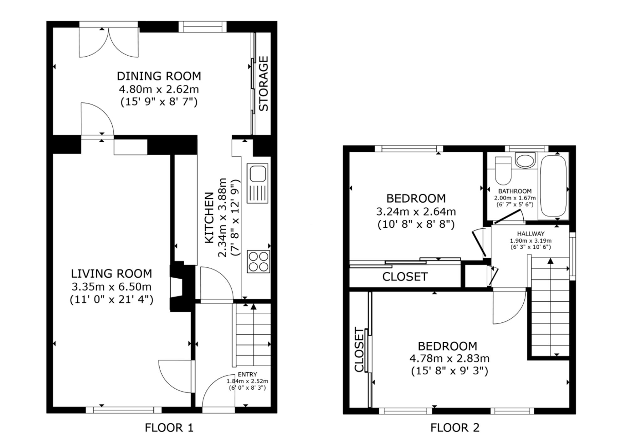 The first floor is arranged around a central landing, giving access to two generously sized bedrooms, each offering good natural light and ample space for furniture. A contemporary bathroom completes the upper level, providing a clean and comfortable finish to the accommodation.