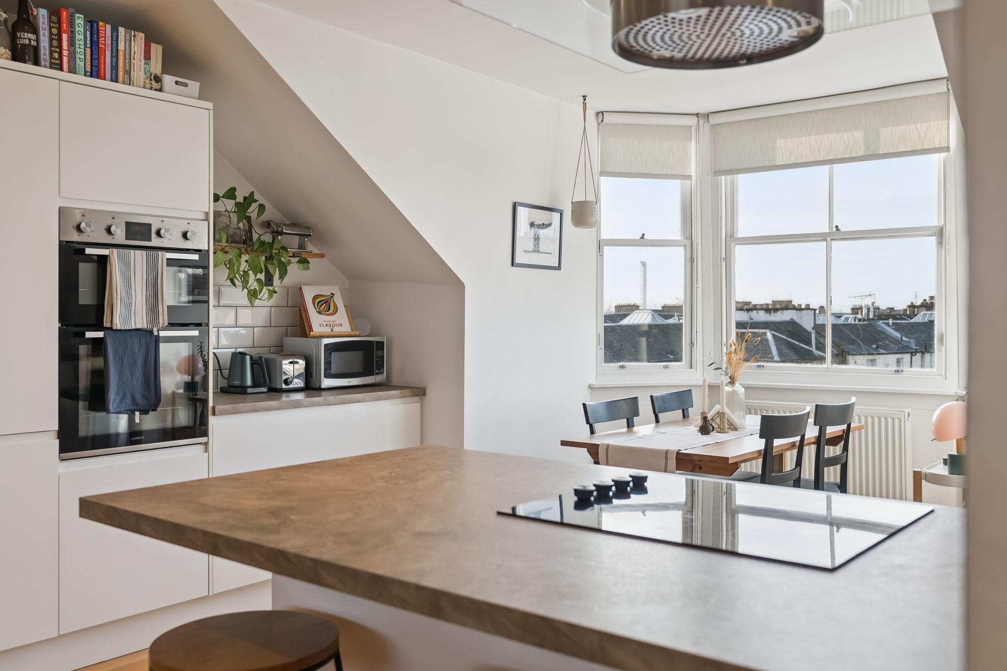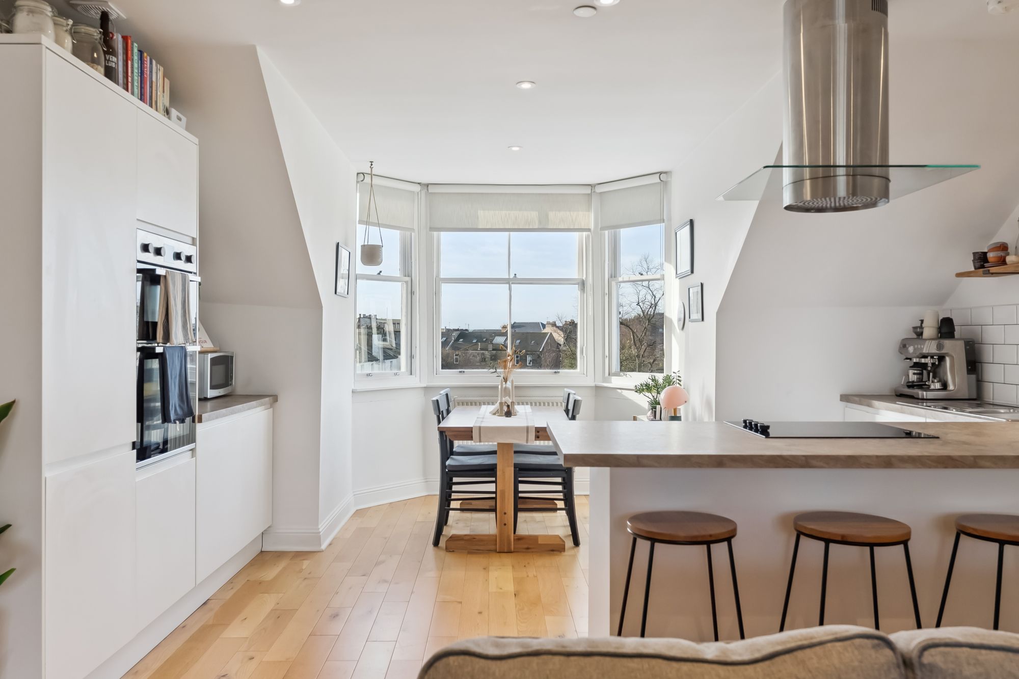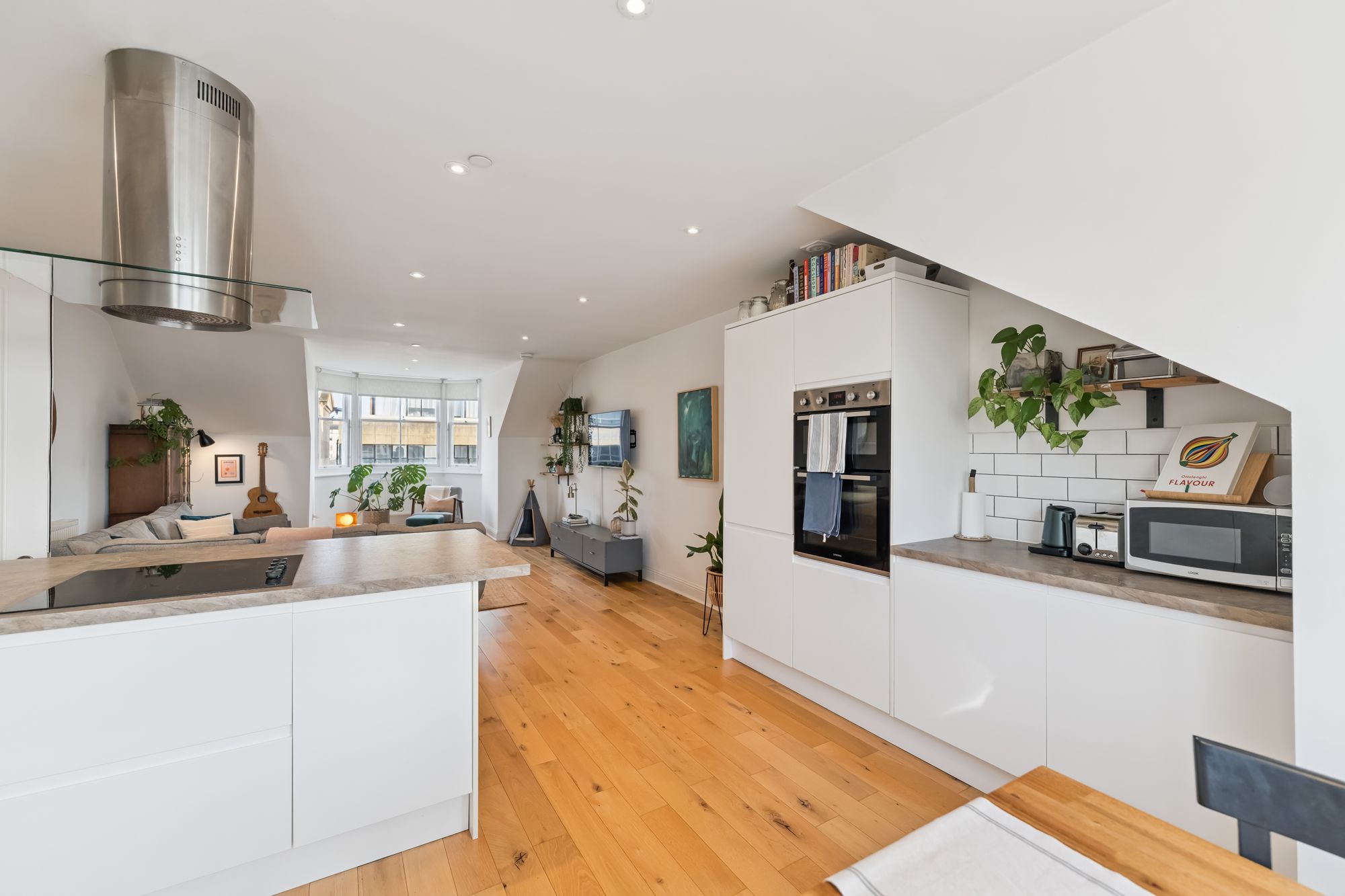 The building itself was completely refurbished in 2019 and is therefore presented in immaculate condition. The attached photographs, floor plan and HD video tour will give an indication to the size and layout of the flat. However, in brief the accommodation extends  to; a broad entrance hallway with skylight, a spacious living/dining/kitchen with wonderful, dual aspect views. The kitchen itself has base and wall mounted units with integrated appliances and a breakfast bar. There are two double bedrooms, including a bay windowed principal room which also benefits from built in wardrobes and an en-suite bathroom. The accommodation is completed by a main bathroom with three piece suite and shower over the bath.
