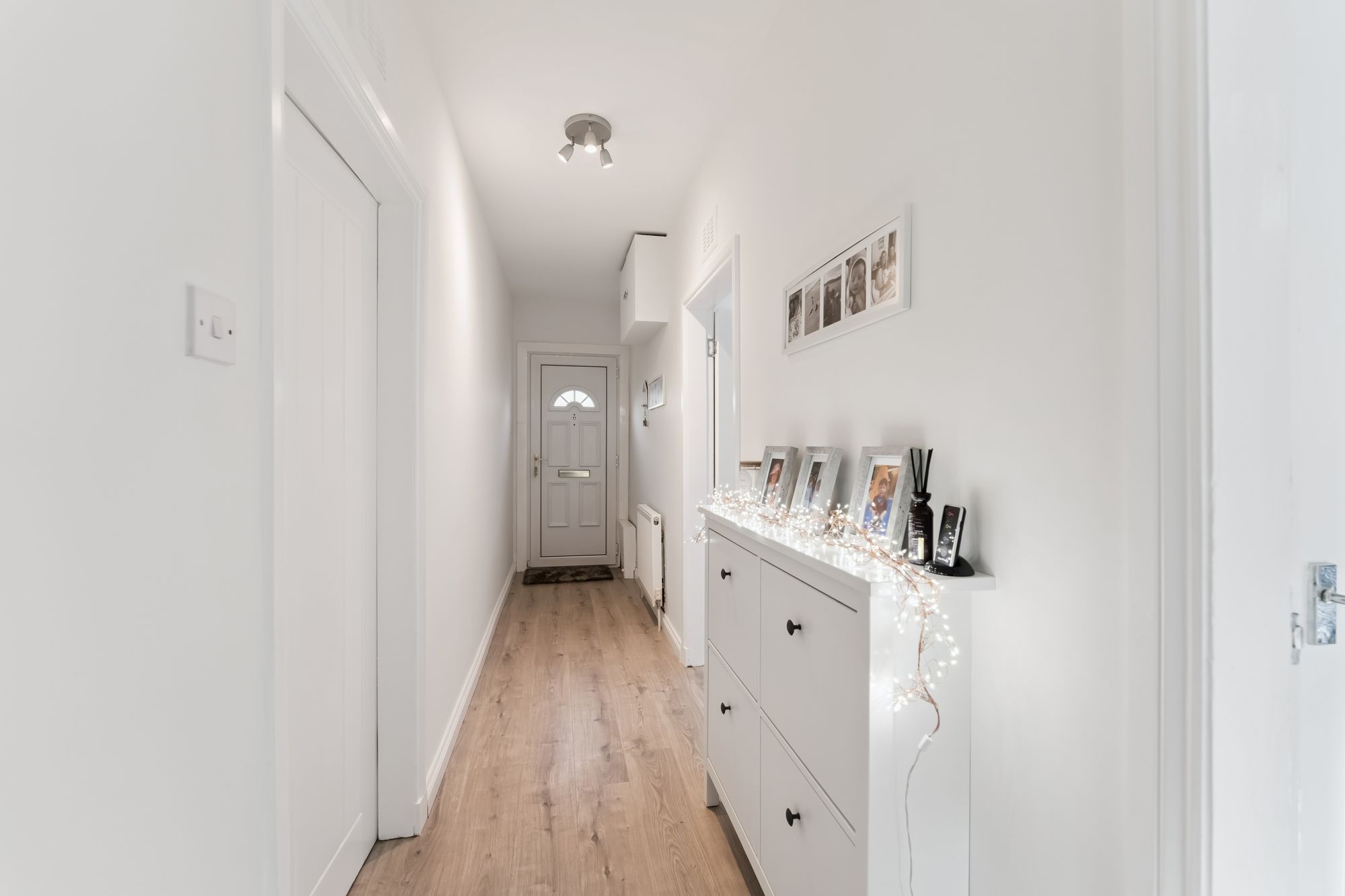Thane Road is well placed for quick access to a wealth of amenities including a collection of shops, cafes and supermarkets. Scotstounhill train station is a short walk, and the major road networks can be joined with ease making this an ideal base for those looking to commute throughout the central belt. On arrival at the property, you are welcomed by a private front garden made up of a section of lawn enclosed with hedging and path leading to the front door.