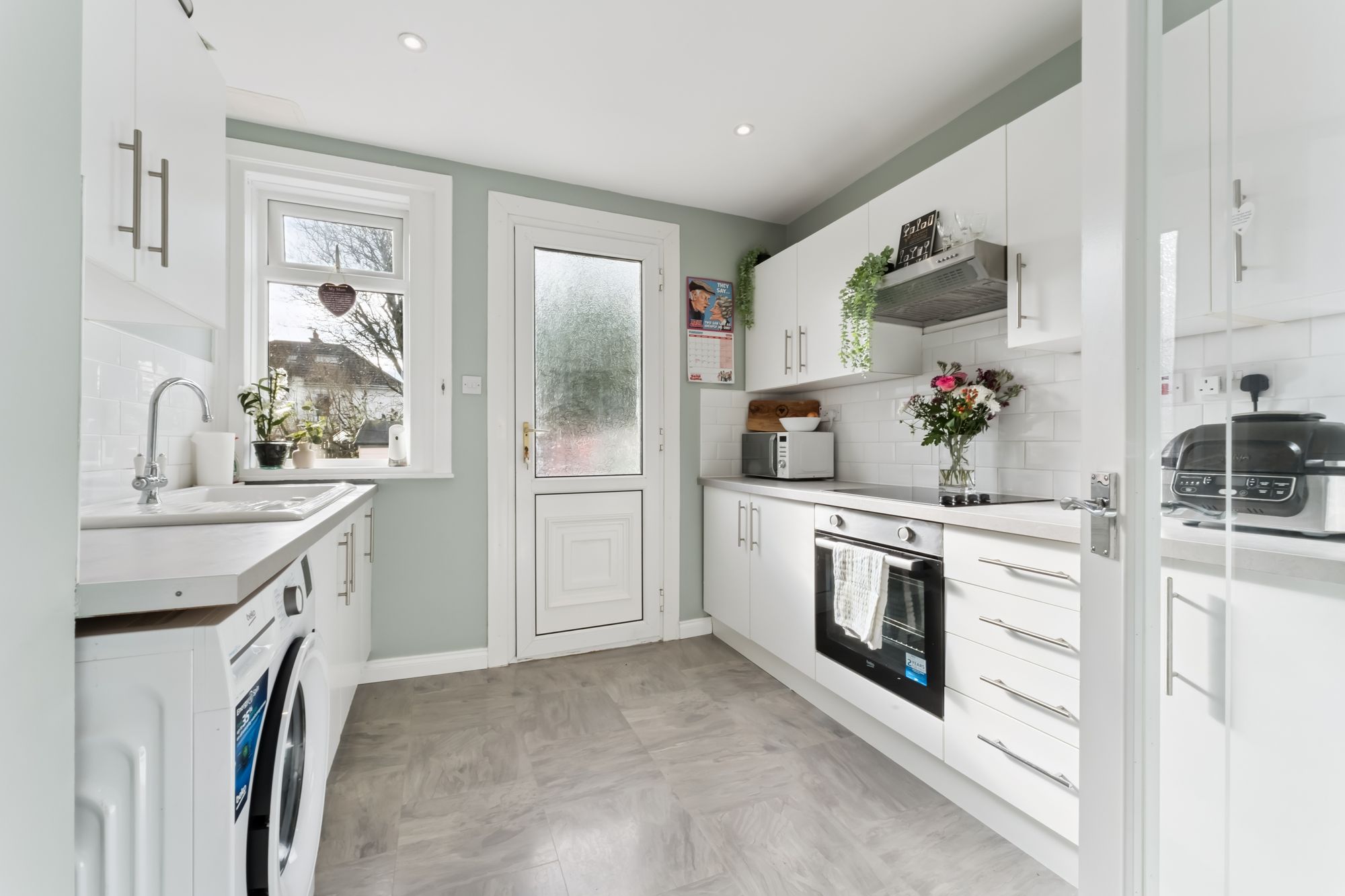 The attached photographs, floor plan and HD video tour will give an indication to the size and layout of the flat. However, in brief the accommodation extends to; welcoming entrance hallway with storage off, a front facing living room, kitchen, two double bedrooms, both of which have built in storage. The accommodation is completed by a bathroom with three piece suite. To the rear of the property is a spacious back garden, with decked area and a large private section, and a separate communal area. Double glazed through out with warmth provided by gas central heating.