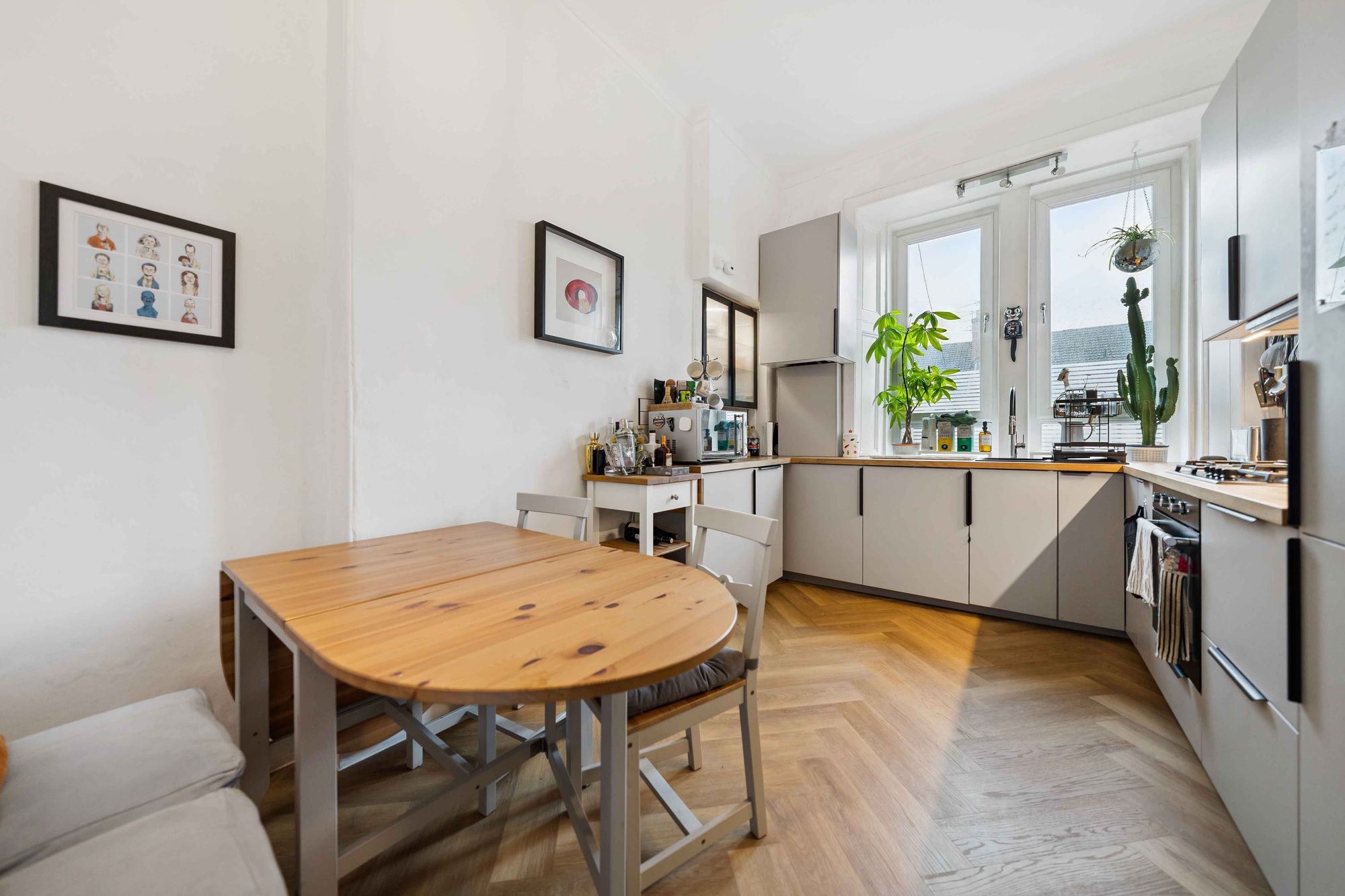 Internally, the apartment offers a bright and generously proportioned layout, ideally suited to a range of buyers. The accommodation comprises a welcoming entrance hallway with storage cupboard off, two spacious double bedrooms, and an impressive bay-windowed lounge which enjoys excellent natural light. The main bathroom is fitted with a modern three-piece suite, including a walk-in shower enclosure. Completing the accommodation is a contemporary dining kitchen, well-appointed with a range of floor and wall-mounted units and integrated appliances.