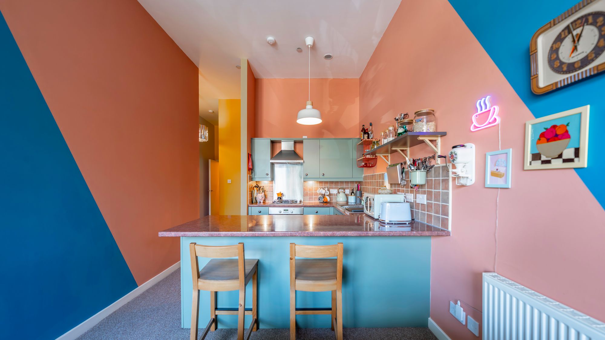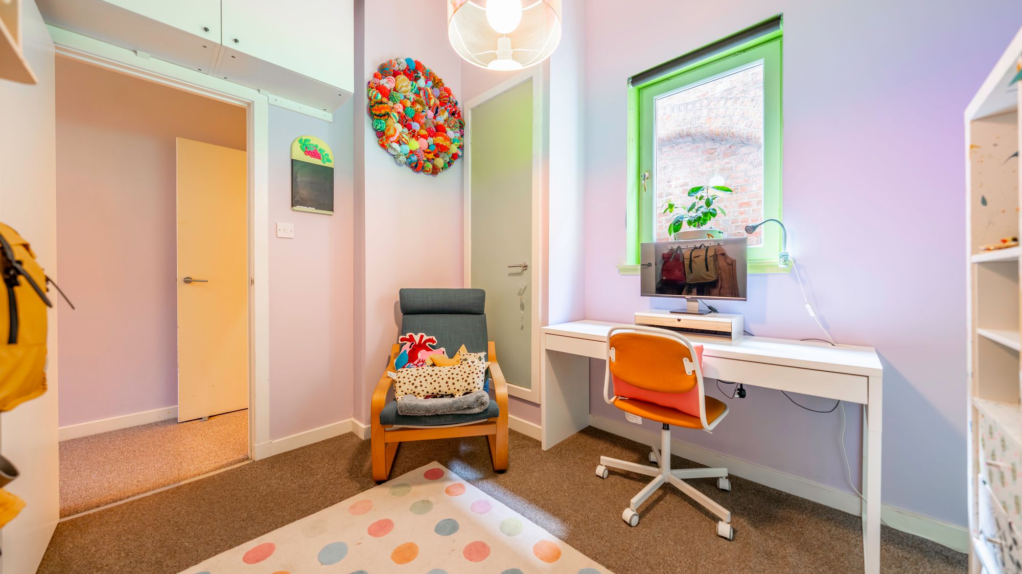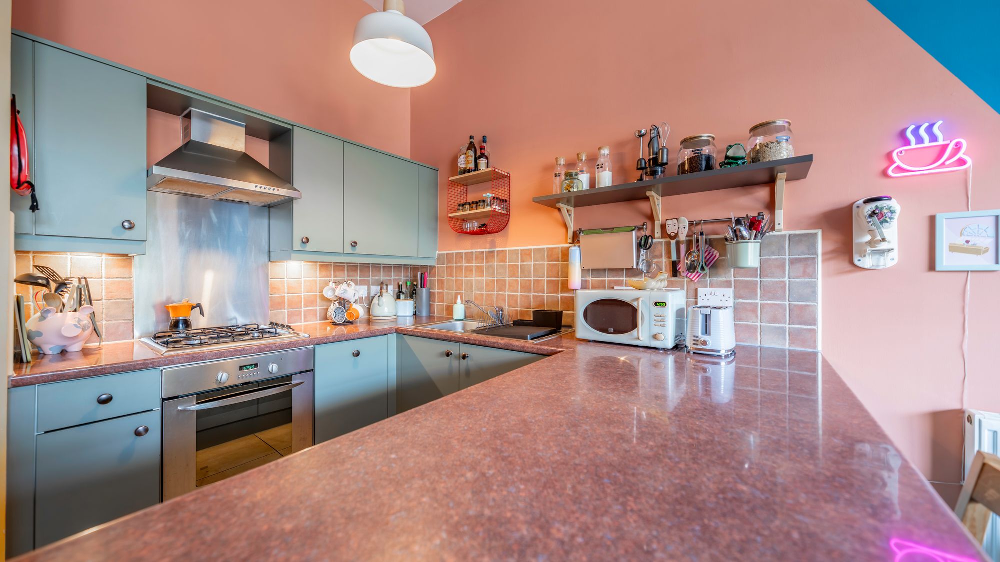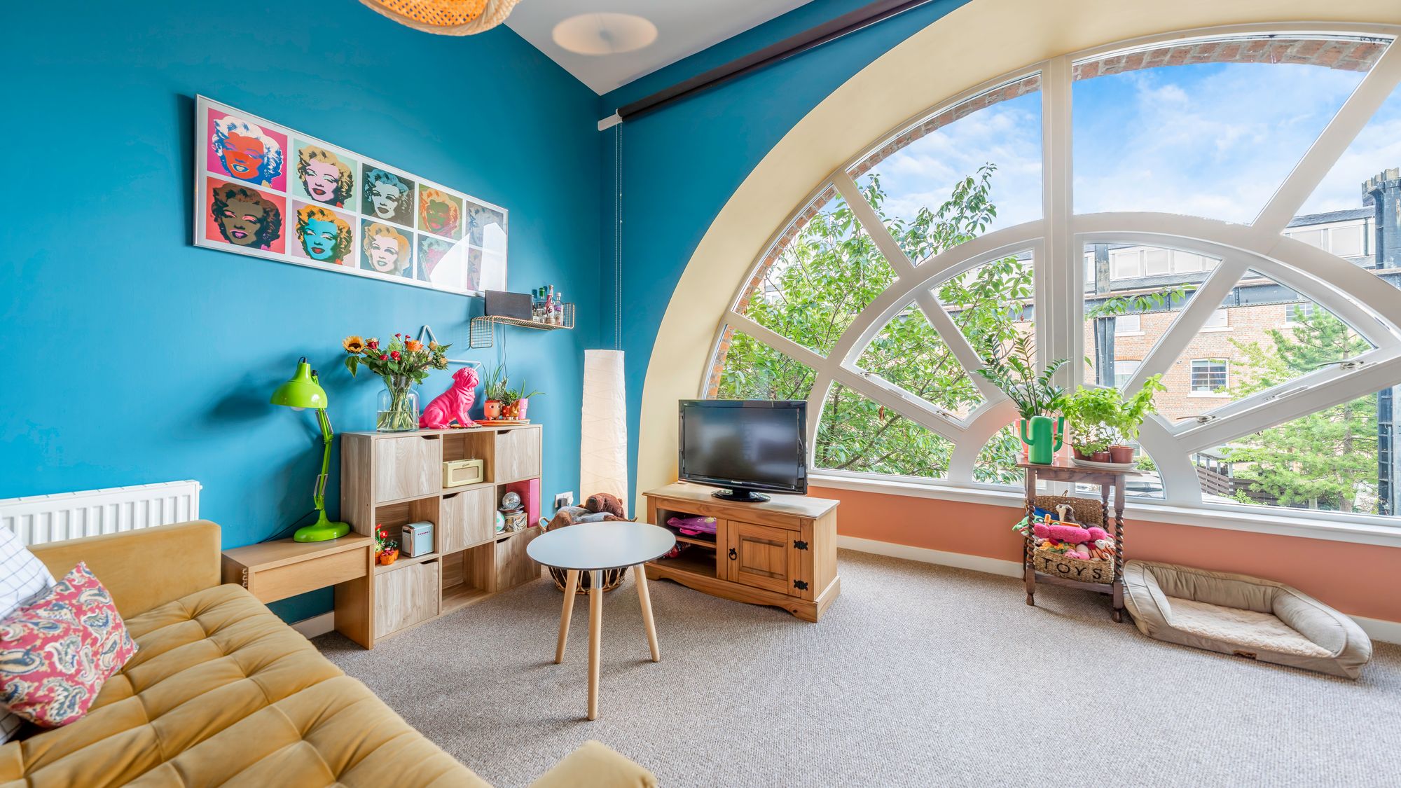 Internally, the property comprises a welcoming entrance hall with built-in storage, a generously proportioned lounge highlighted by a unique arched window, fitted kitchen with island, fully integrated appliances and a stylish tiled splashback. There are two spacious double bedrooms and a well-appointed family bathroom with shower over bath.