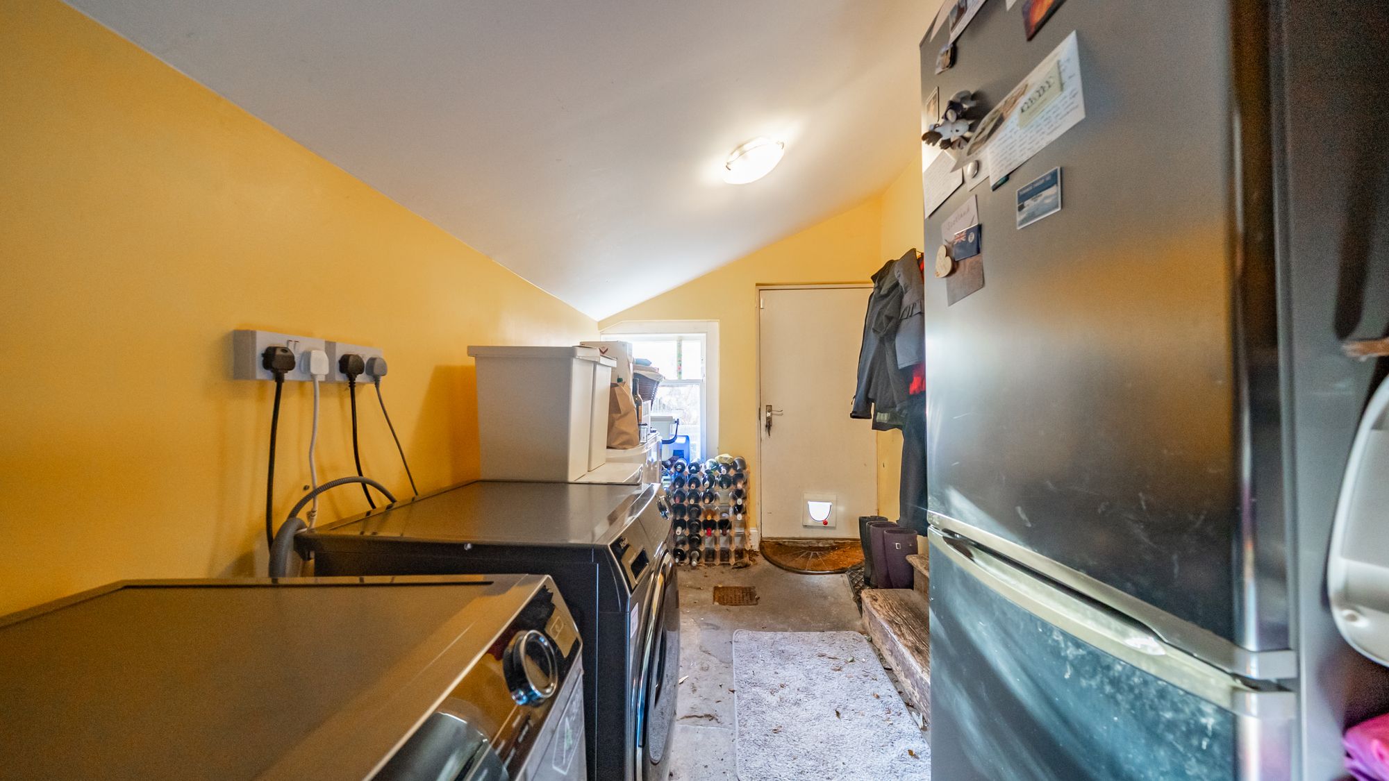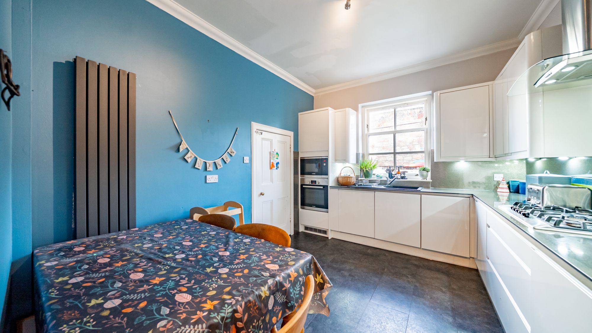The property opens into a charming vestibule and welcoming hallway, immediately showcasing the warmth and authenticity of original wooden flooring. To the front, the formal dining room makes a striking first impression, enhanced by a magnificent bay window, an abundance of natural light and a beautiful feature marble fireplace with solid-fuel fire. Adjacent lies a versatile family room, currently used as a playroom but easily adaptable as a fifth bedroom or home office for those requiring flexible, ground-floor living. Descending to the lower ground floor, you will find the heart of the home, a bright, contemporary kitchen with sash windows, thoughtfully designed integrated appliances and an excellent range of wall and base units. A few steps down is a superb utility room offering further storage and convenient direct access to the rear garden.