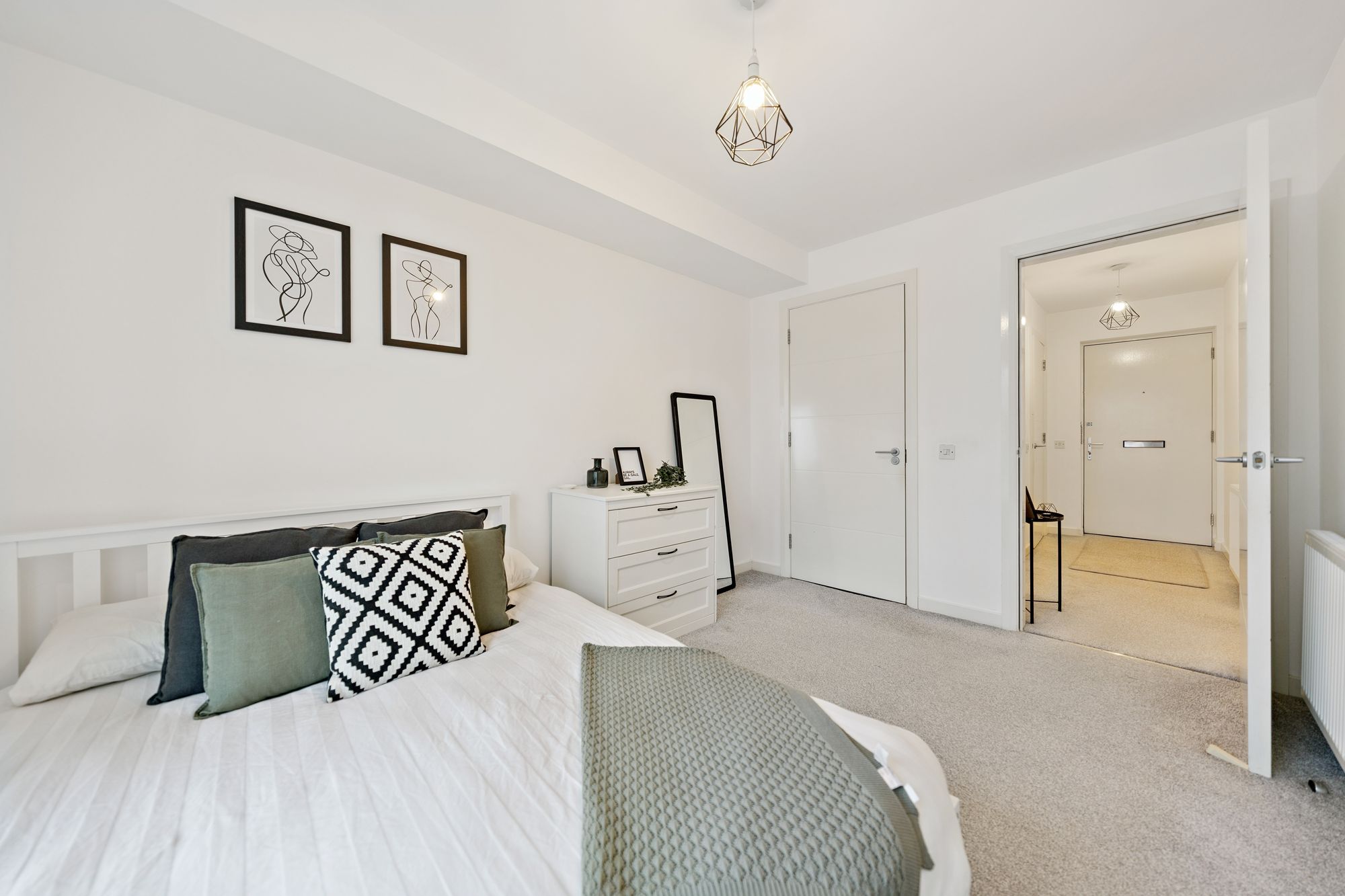 There are two well-proportioned double bedrooms, both benefiting from integrated wardrobes, with the principal bedroom further enhanced by a stylish en-suite shower room. Completing the accommodation is a well-appointed main bathroom featuring a three-piece suite with a contemporary free-standing bath.