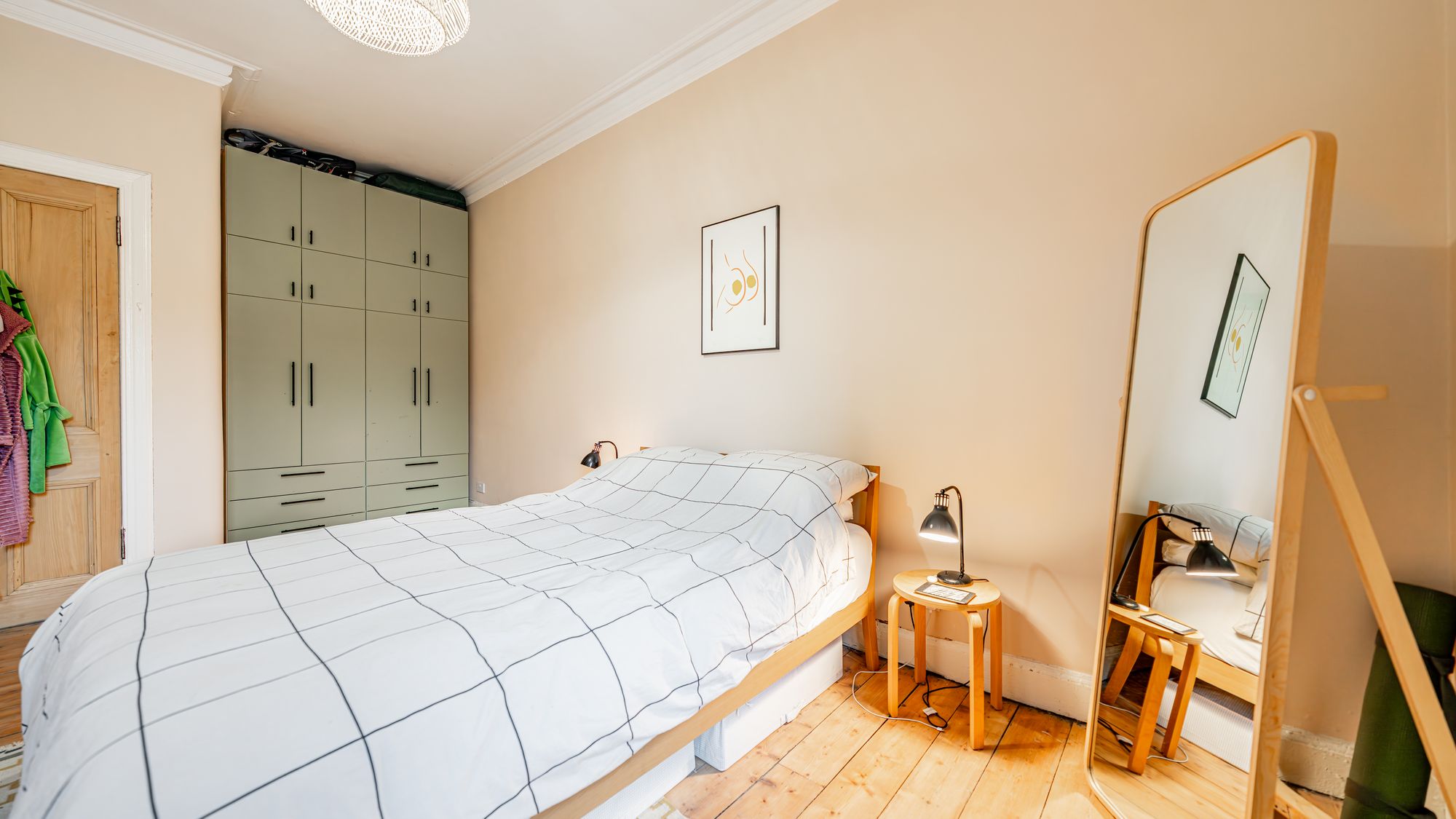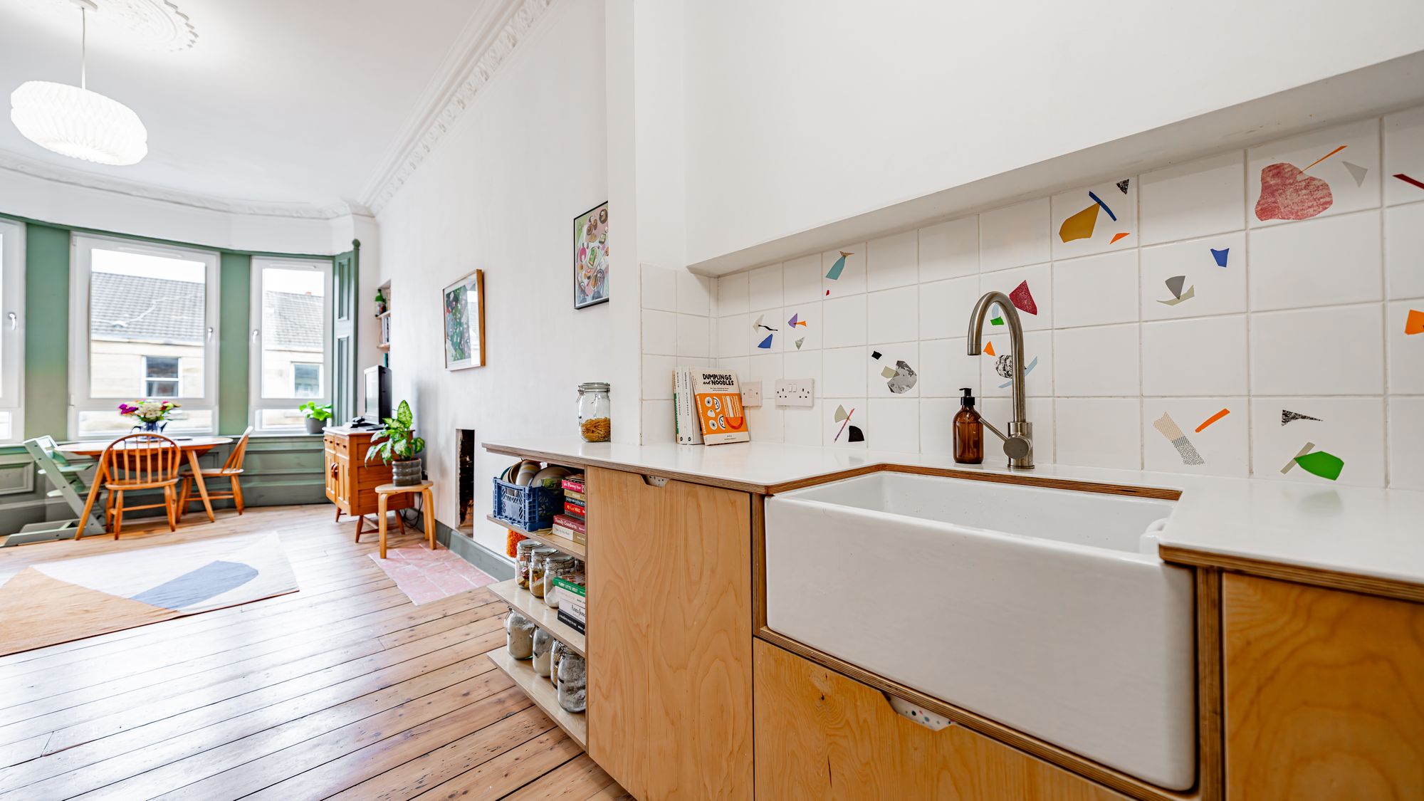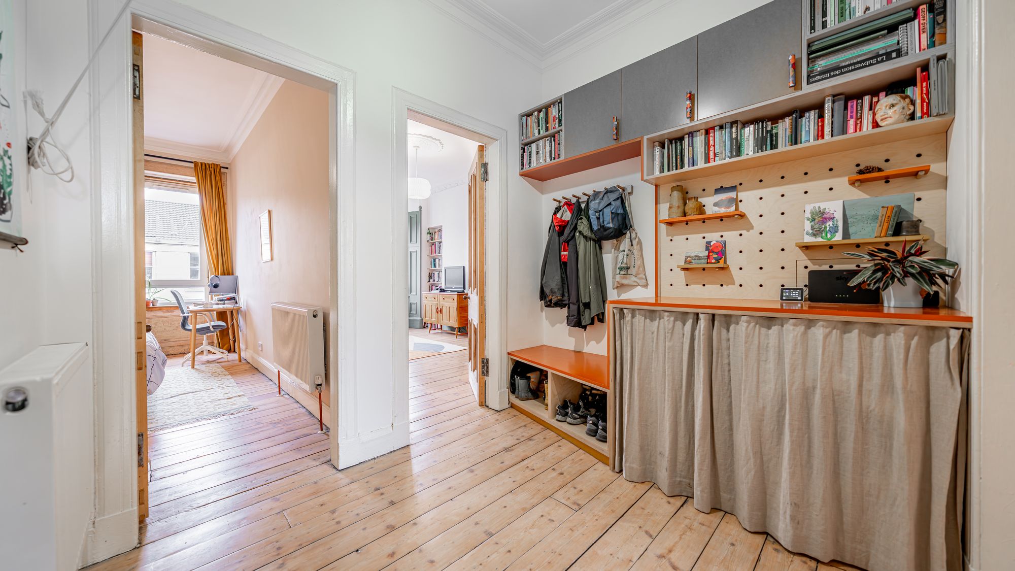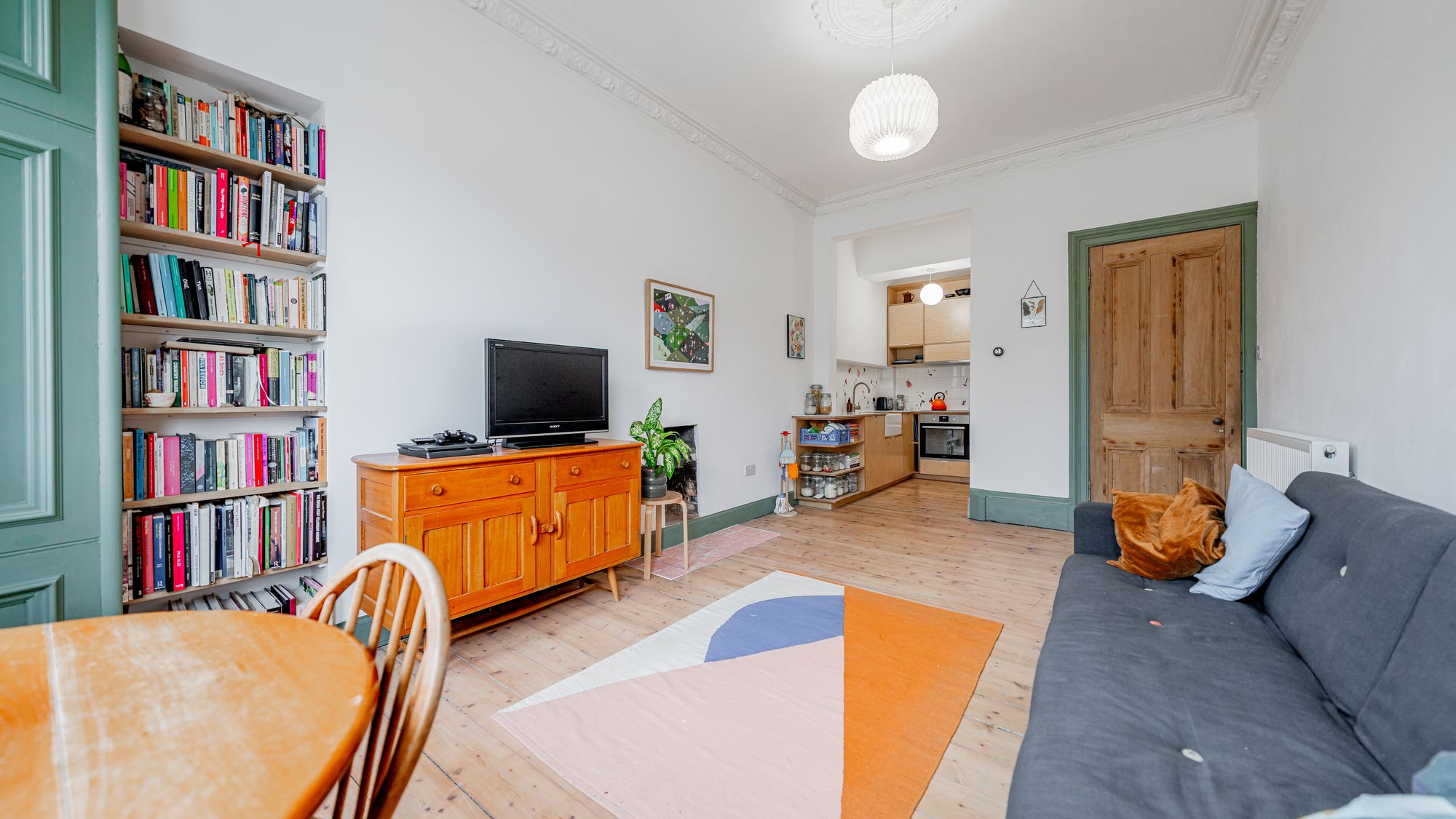 The property for sale is held on the top floor of an attractive blonde sandstone tenement. Access into number 87 is via a secure door with buzzer entry system. To the rear of the building, you will find an enclosed garden with designated drying facilities.