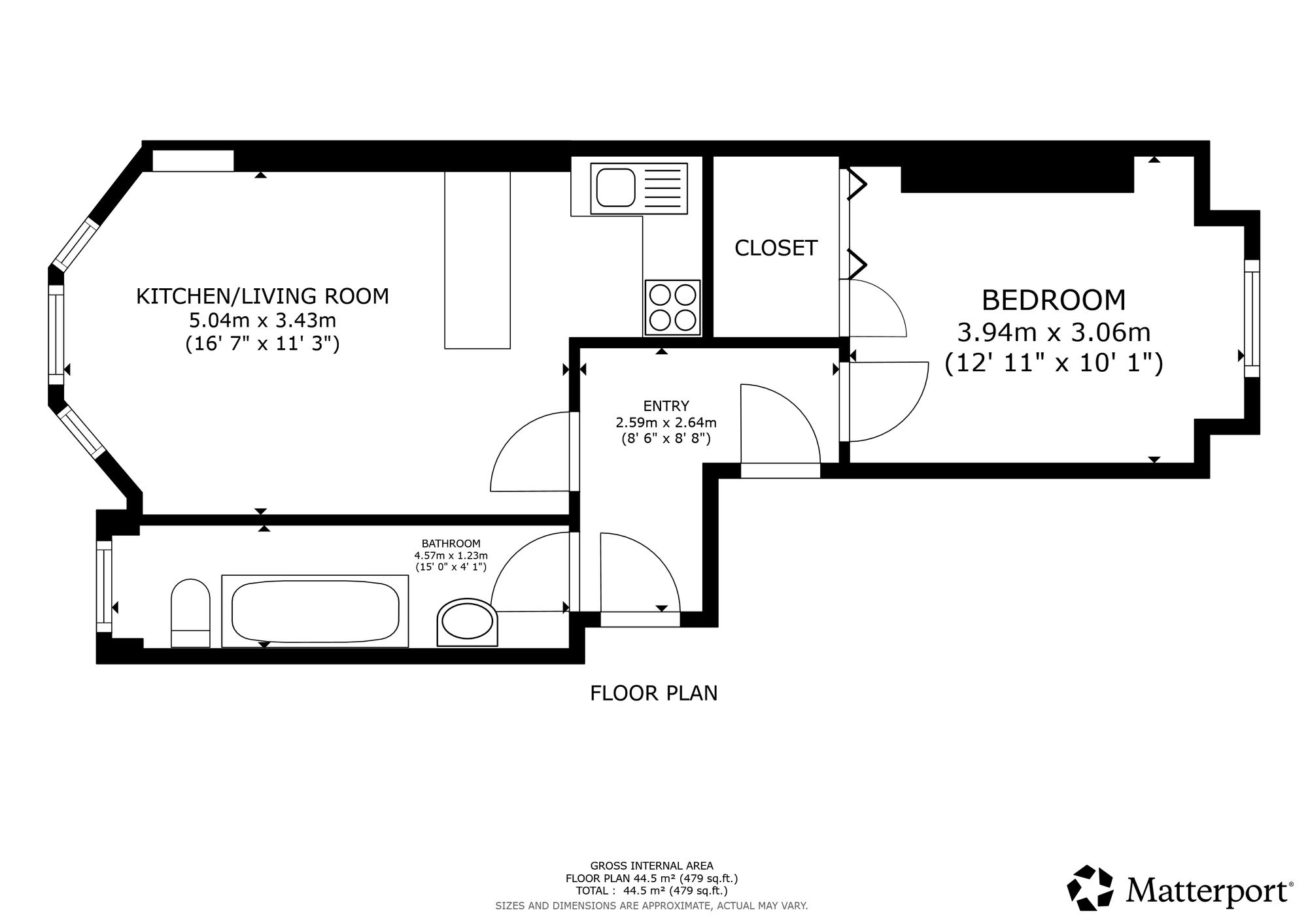 The accommodation extends to welcoming reception hallway with storage cupboard off, bay windowed lounge with alcove and open plan kitchen area, double bedroom with walk-in wardrobe/storage and a bathroom with three piece suite and shower over bath.
