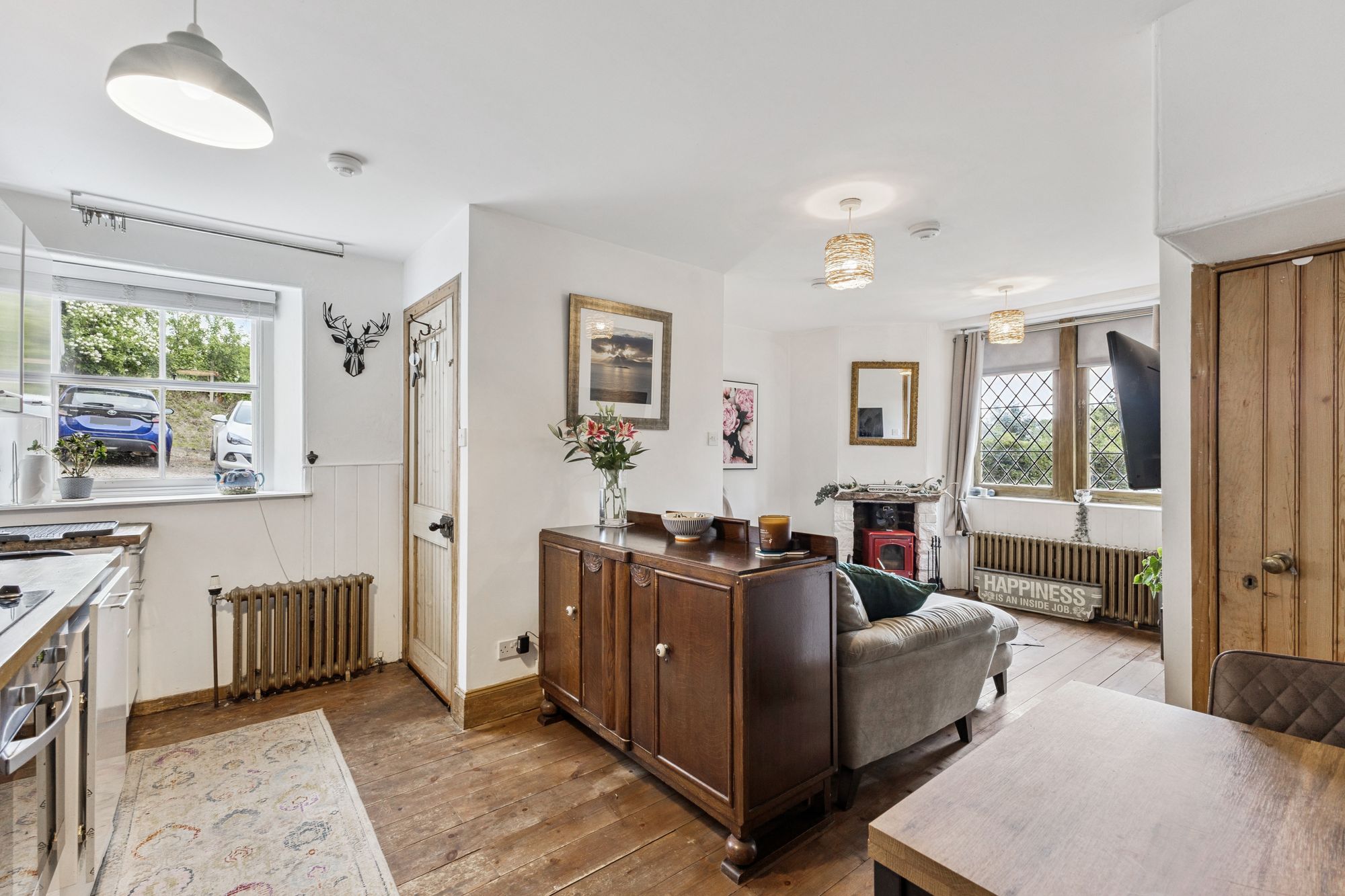 This delightful semi-detached two-storey cottage is located in the peaceful rural community of Ballindean, offering a wonderful blend of countryside living with easy access to nearby urban centres. The property features a welcoming entrance vestibule leading into an inner hallway, which connects to a bright and spacious open-plan sitting room and kitchen. A family bathroom with WC is also located on the ground floor. Upstairs, the first floor comprises a landing and two well-proportioned bedrooms, providing comfortable accommodation ideal for a range of buyers.