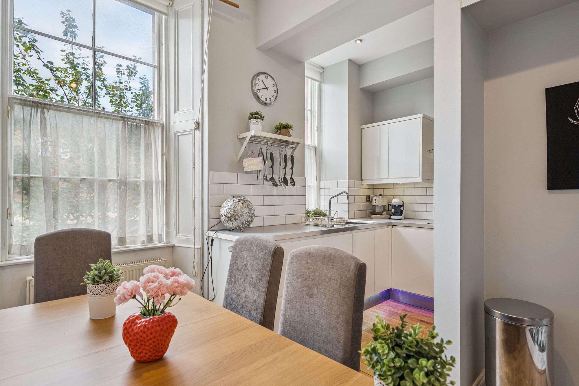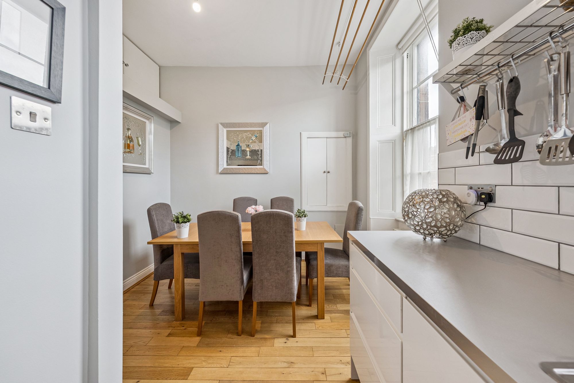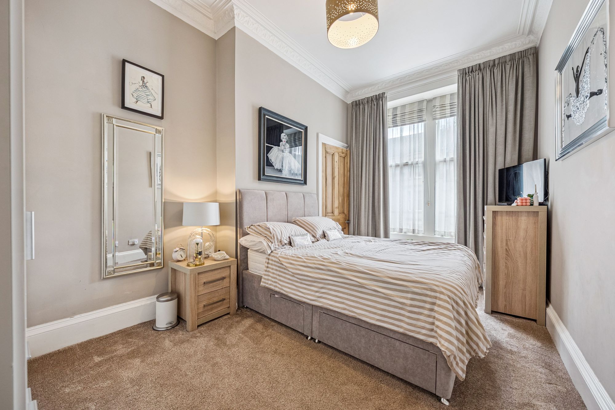The attached photographs, floor plan and HD video tour will give an idea of the size and layout of the flat. However, in brief the accommodation extends to: welcoming entrance hallway with storage cupboards off, a spacious bay windowed living room, a modern dining sized L-shaped kitchen which makes a perfect space for entertaining. The kitchen itself has a range of base and wall mounted gloss units with tiled splash back and integrated appliances. There are two double bedrooms and the accommodation is completed by a fully tiled main bathroom with bath and separate walk-in shower.