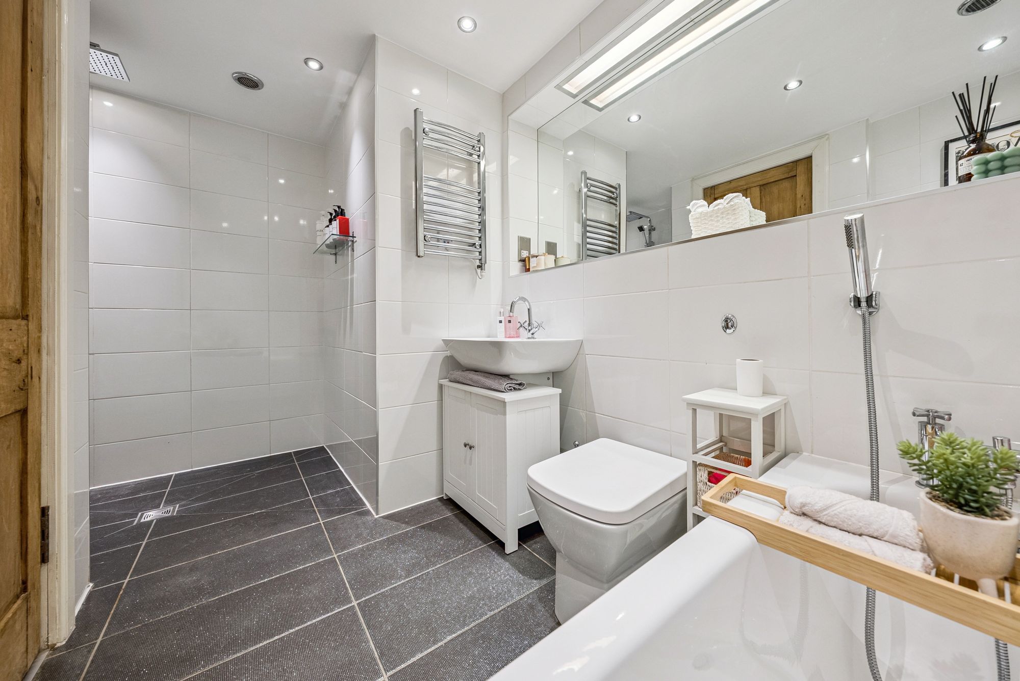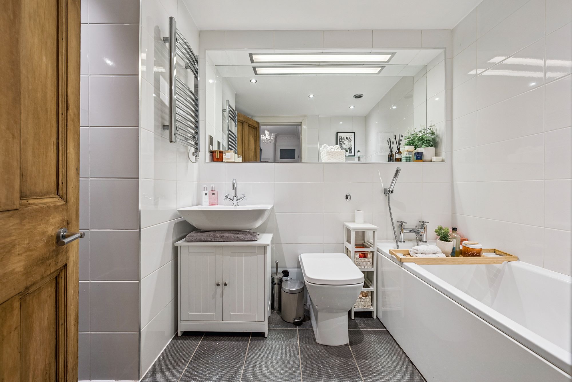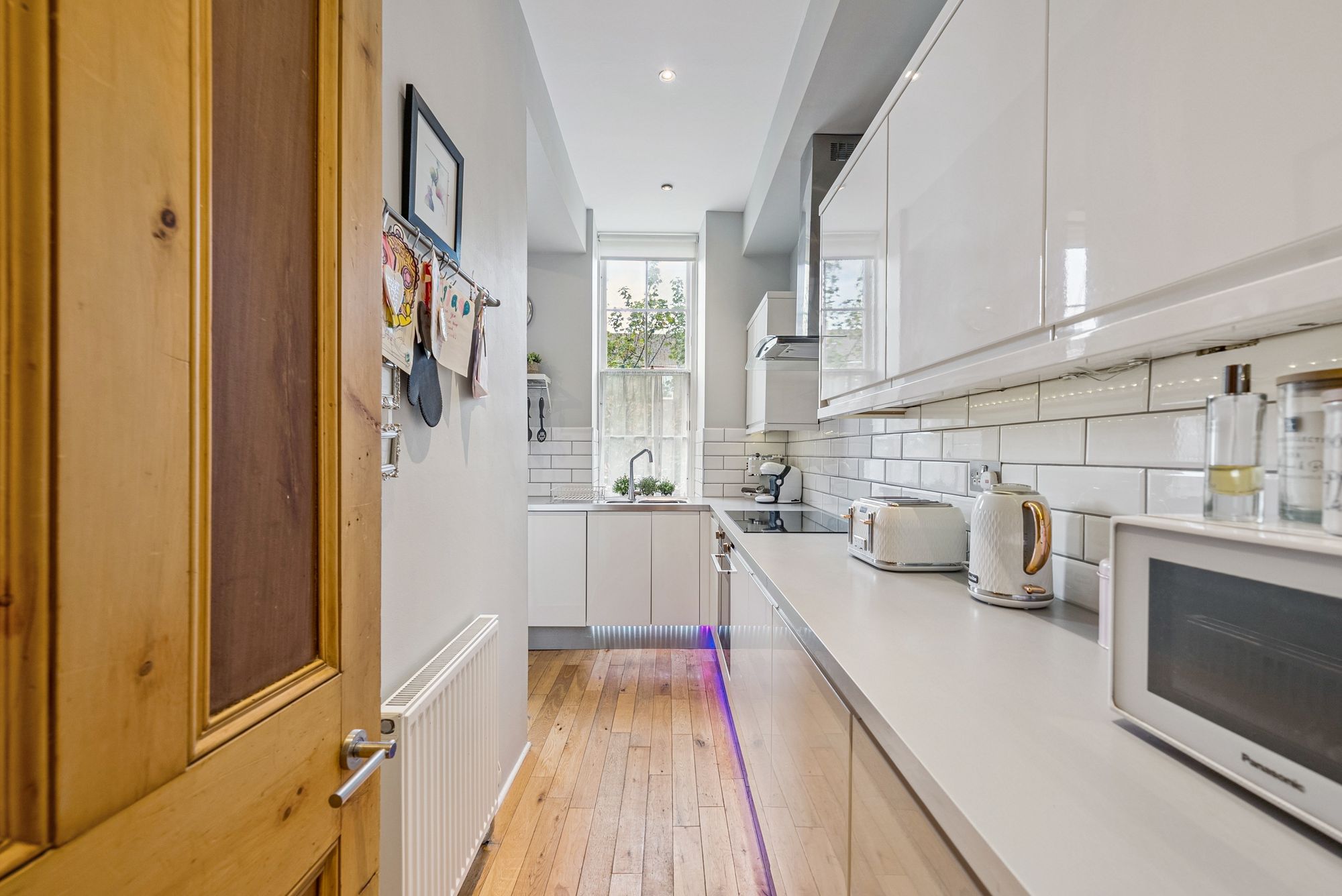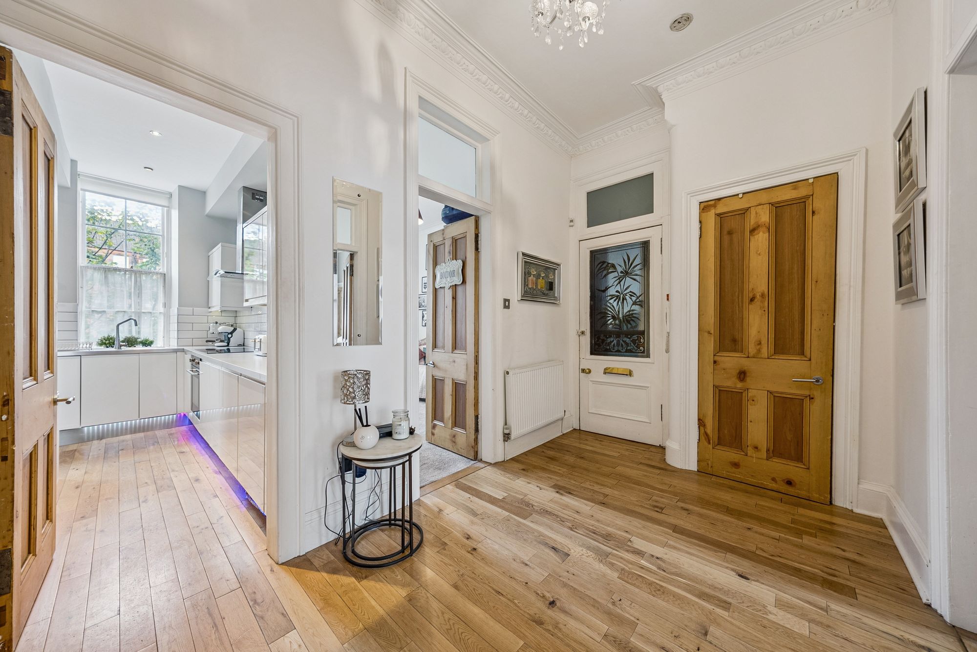 The attached photographs, floor plan and HD video tour will give an idea of the size and layout of the flat. However, in brief the accommodation extends to: welcoming entrance hallway with storage cupboards off, a spacious bay windowed living room, a modern dining sized L-shaped kitchen which makes a perfect space for entertaining. The kitchen itself has a range of base and wall mounted gloss units with tiled splash back and integrated appliances. There are two double bedrooms and the accommodation is completed by a fully tiled main bathroom with bath and separate walk-in shower.