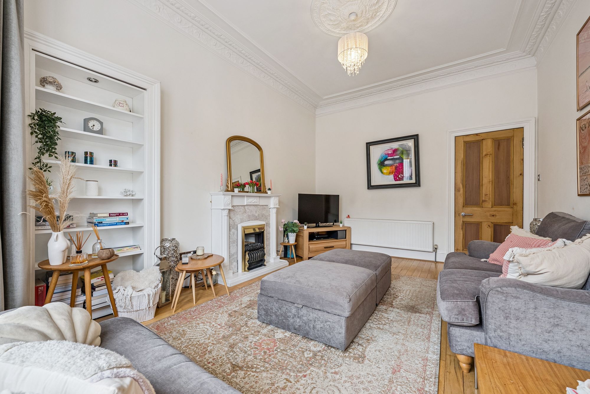 The property lies within a traditional, well-maintained red sandstone tenement which has a pitched, tiled roof. There is a secure entrance door with buzzer access and the shared hall and stairways are found in good order. The home for sale is a bright and spacious two bedroom flat, which is presented in wonderful condition throughout.