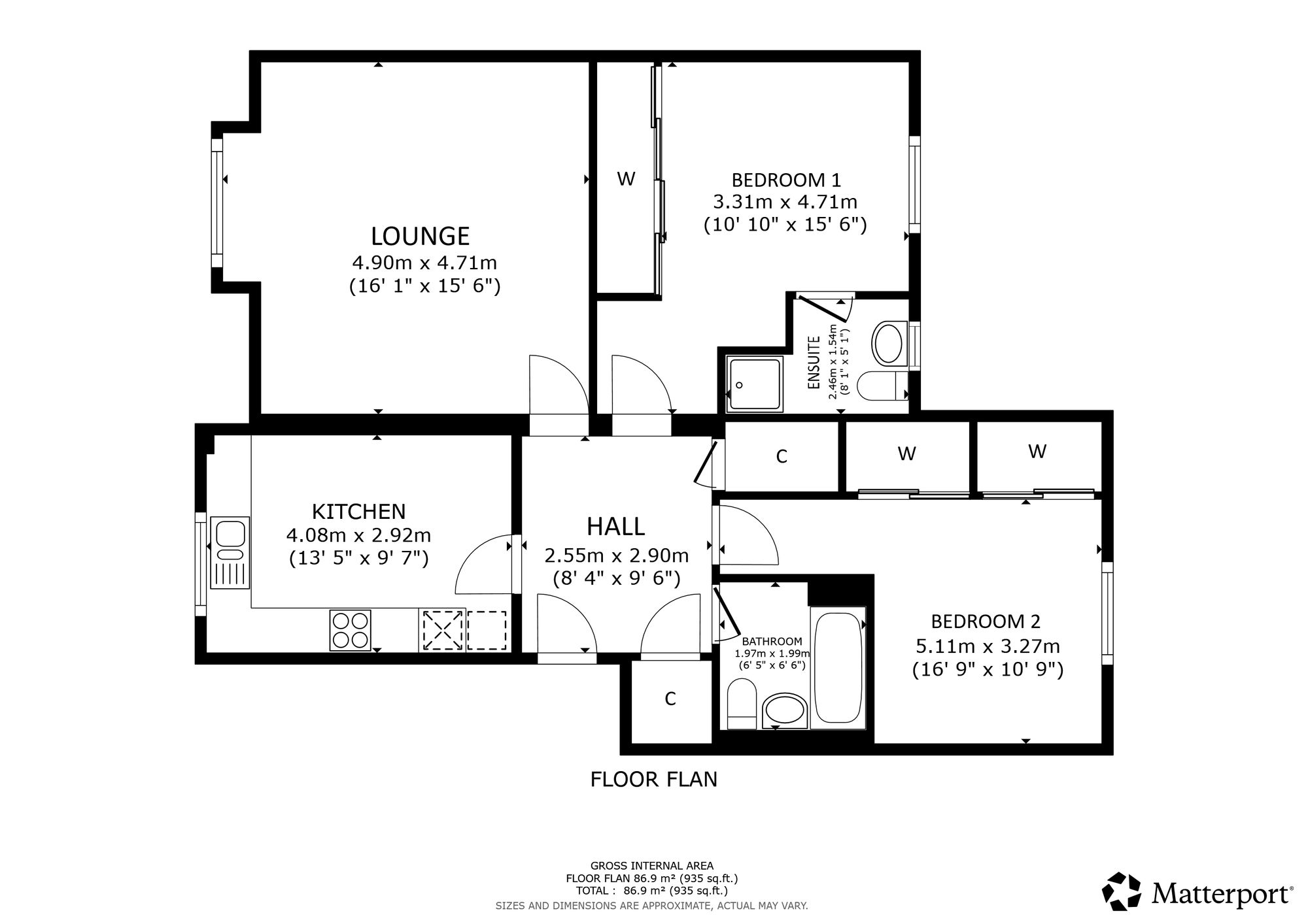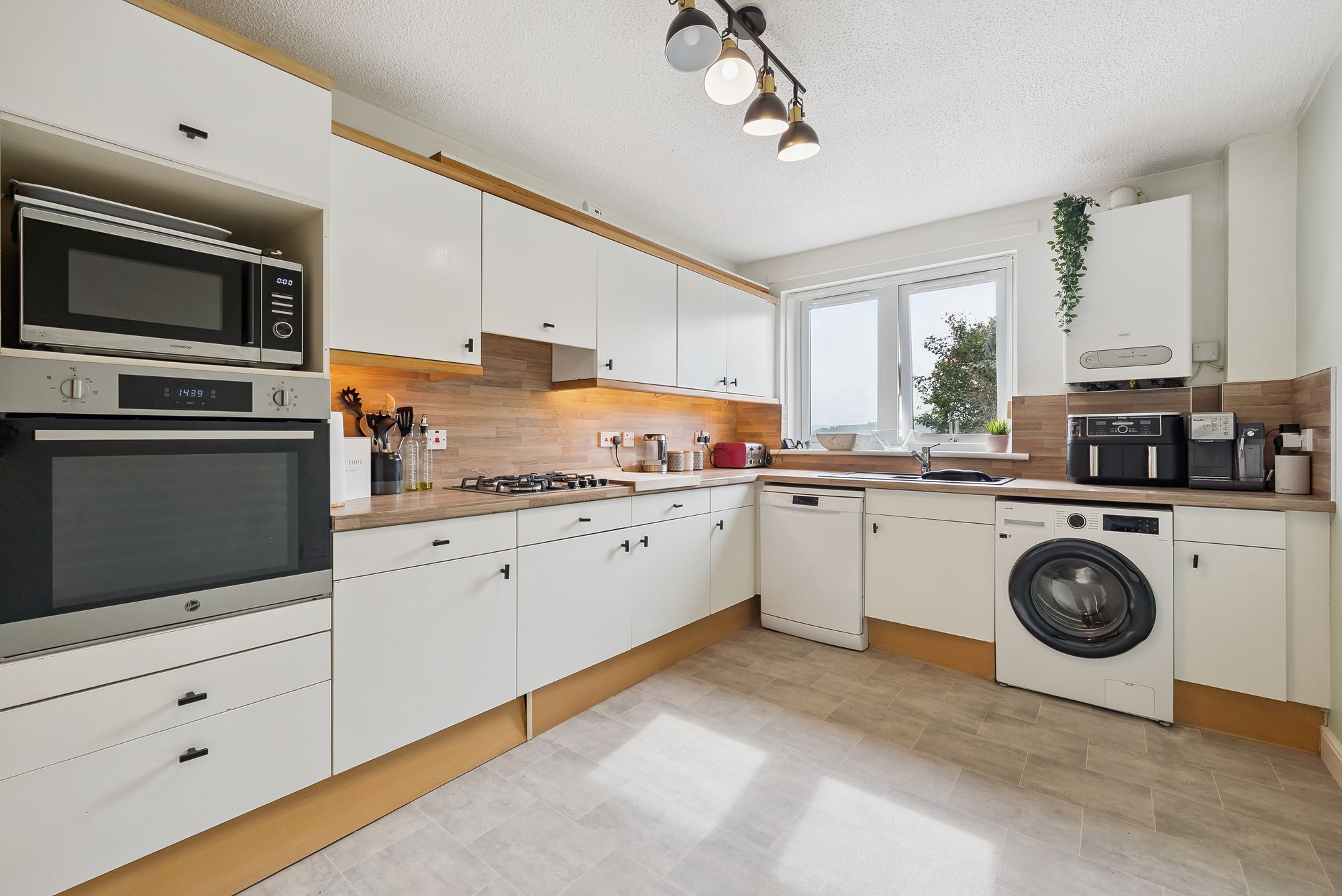 The property is entered through a solid timber front door into a spacious and welcoming reception hallway, complete with two generous storage cupboards offering excellent practicality. To the front of the flat is a bright and airy lounge, enhanced by a large double glazed window that allows natural light to flood the room while framing partial views of the loch. This inviting living space offers ample room for both seating and dining arrangements, making it ideal for relaxing or entertaining guests. Adjacent to the lounge is a well appointed breakfasting kitchen, featuring a range of modern wall mounted and counter level units, large work surfaces, a single bowl stainless steel sink, and space for free standing appliances. A window to the front ensures a pleasant outlook and natural ventilation. The master bedroom, situated to the rear for added privacy, is generously proportioned and features built in mirrored wardrobes providing ample storage. It benefits from a private ensuite shower room, fitted with a white wc and wash hand basin, along with a fully enclosed shower cabinet and wall mounted aluminium shower. A second double bedroom, also with built in mirrored wardrobes offers flexible space ideal for guests, family, or home office use. The main bathroom is internally positioned and fitted with a three piece coloured suite, including wc, wash hand basin, and bath. The property is fully double glazed and has gas fired central heating. The propertyis also accessed via a bright and secure communal close.