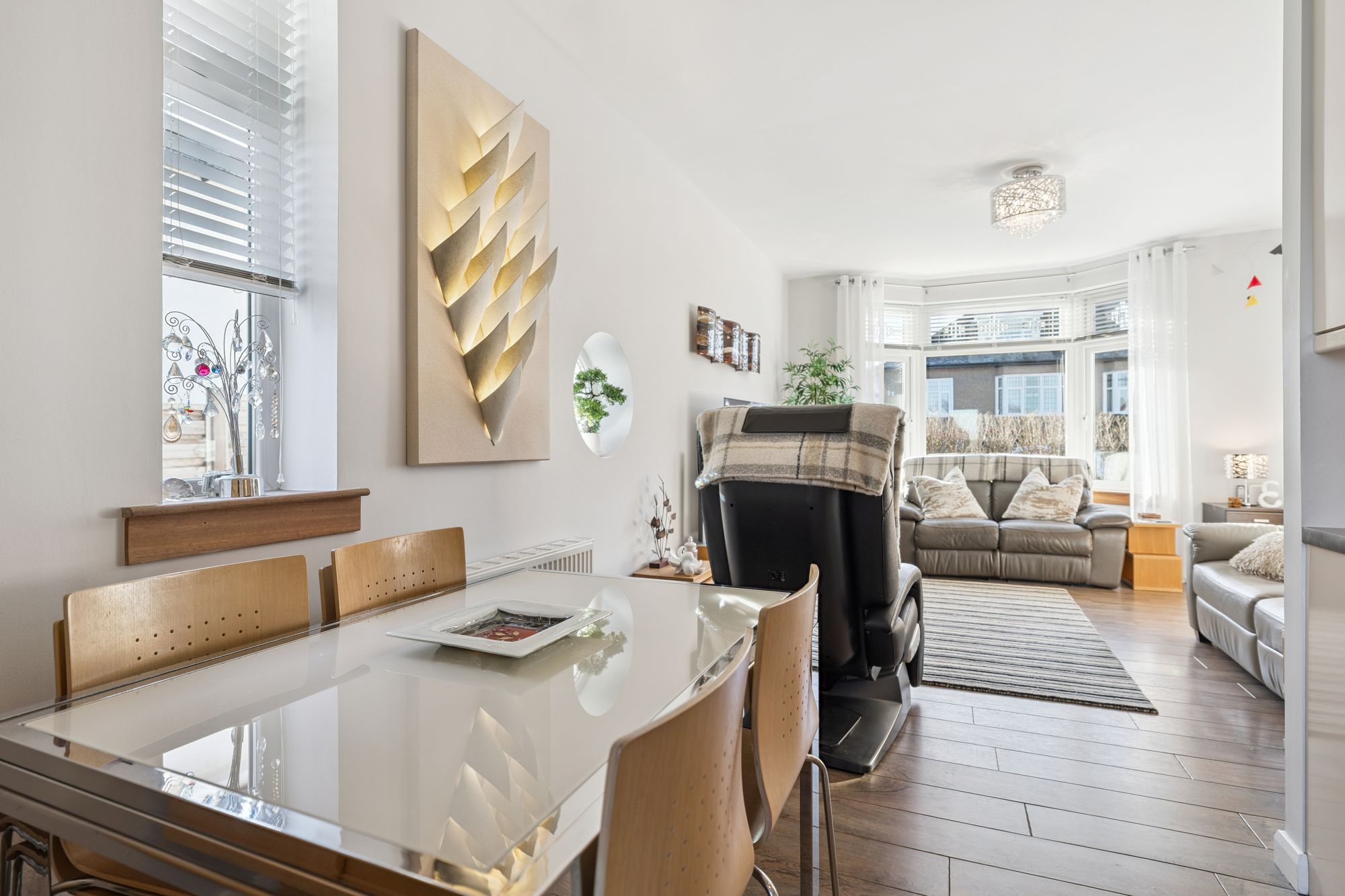 Set within this highly desirable residential area of Netherlee and enjoying a beautifully landscaped and level plot is this beautifully presented detached bungalow. Having undergone a program of internal reconfiguration and upgrading, the property now offers a unique layout boasting fabulous open plan living/dining/kitchen space, three bedrooms, a family bathroom and an ensuite shower room off the principal bedroom across one ground floor level. The property includes quality fixtures and fittings within the kitchen, bathroom and ensuite as well as stylish décor throughout and will prove very appealing to downsizers and young families alike.