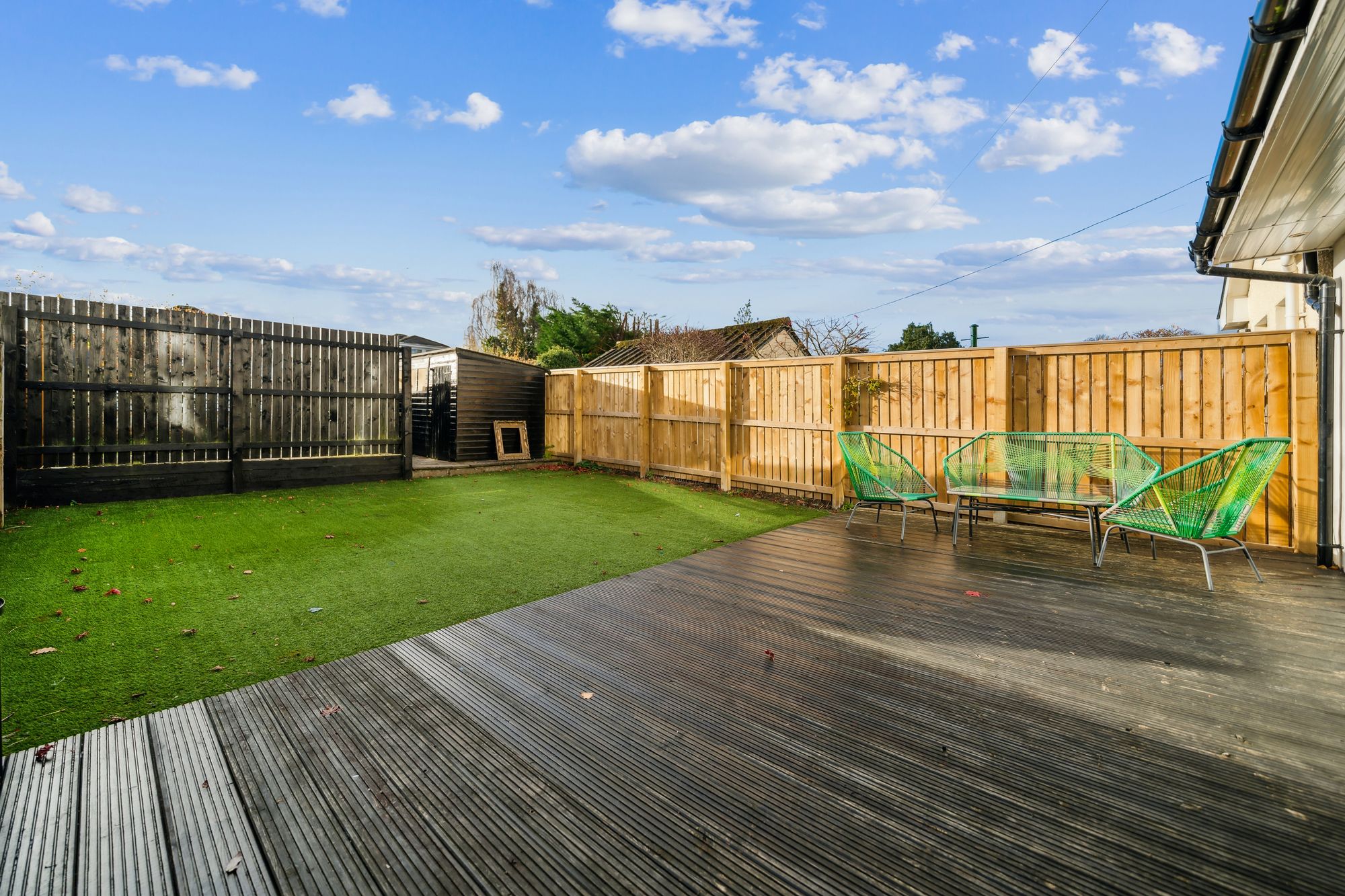 The property is screened neatly from the road side by mature hedgerow and features a manicured area of lawn. The rear garden faces South and is full enclosed with a large area of decking adjacent to the sliding doors from the kitchen with an area of artificial grass thereafter. Off street parking is available at the rear of the property and is accessed via a lane from First Avenue.