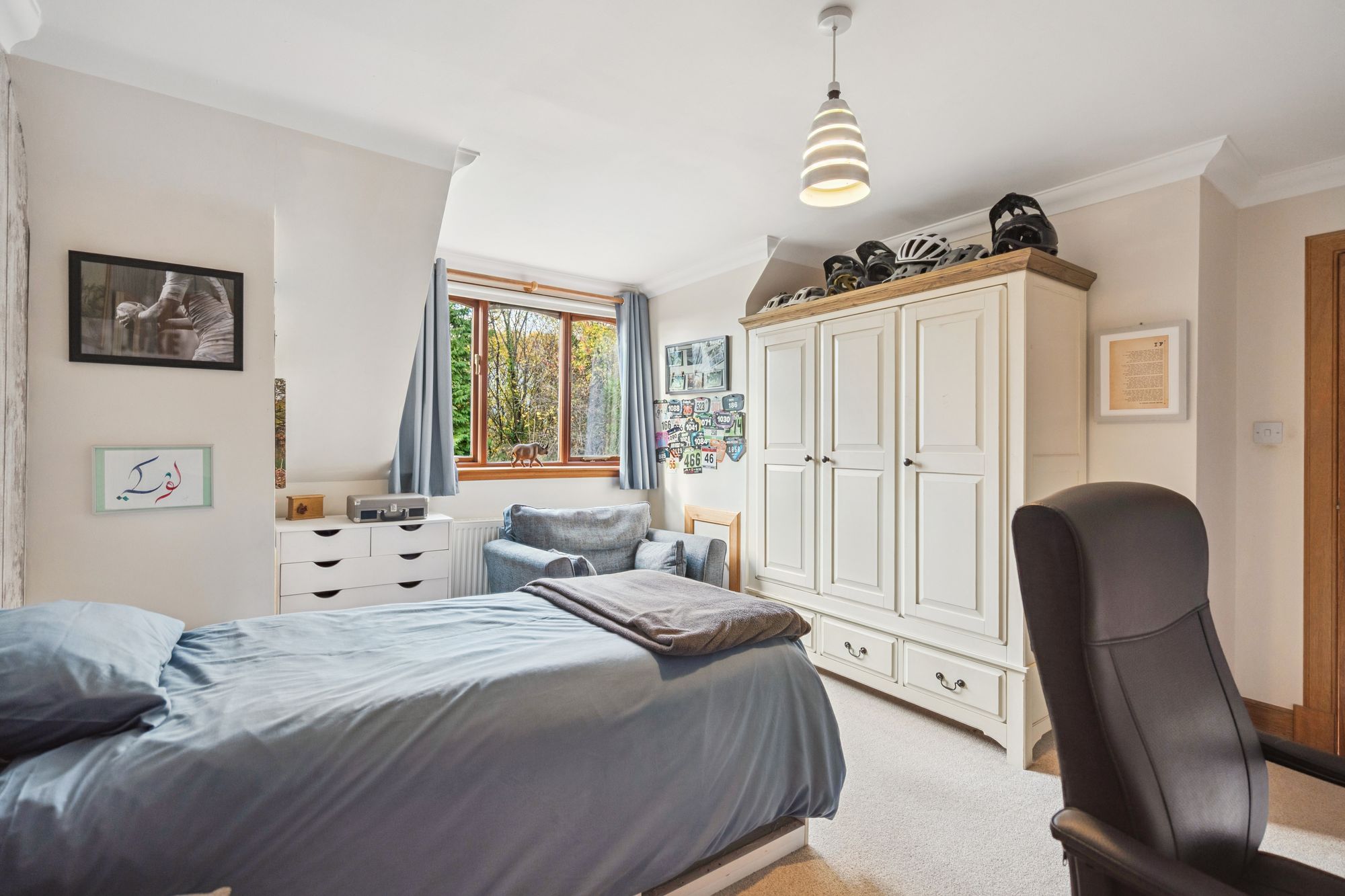 The top floor provides a superb self-contained suite, featuring a spacious bedroom with unrivalled views of the Ochil Hills, a shower room, separate WC, and a sauna — a rare and indulgent feature that elevates the home’s appeal.