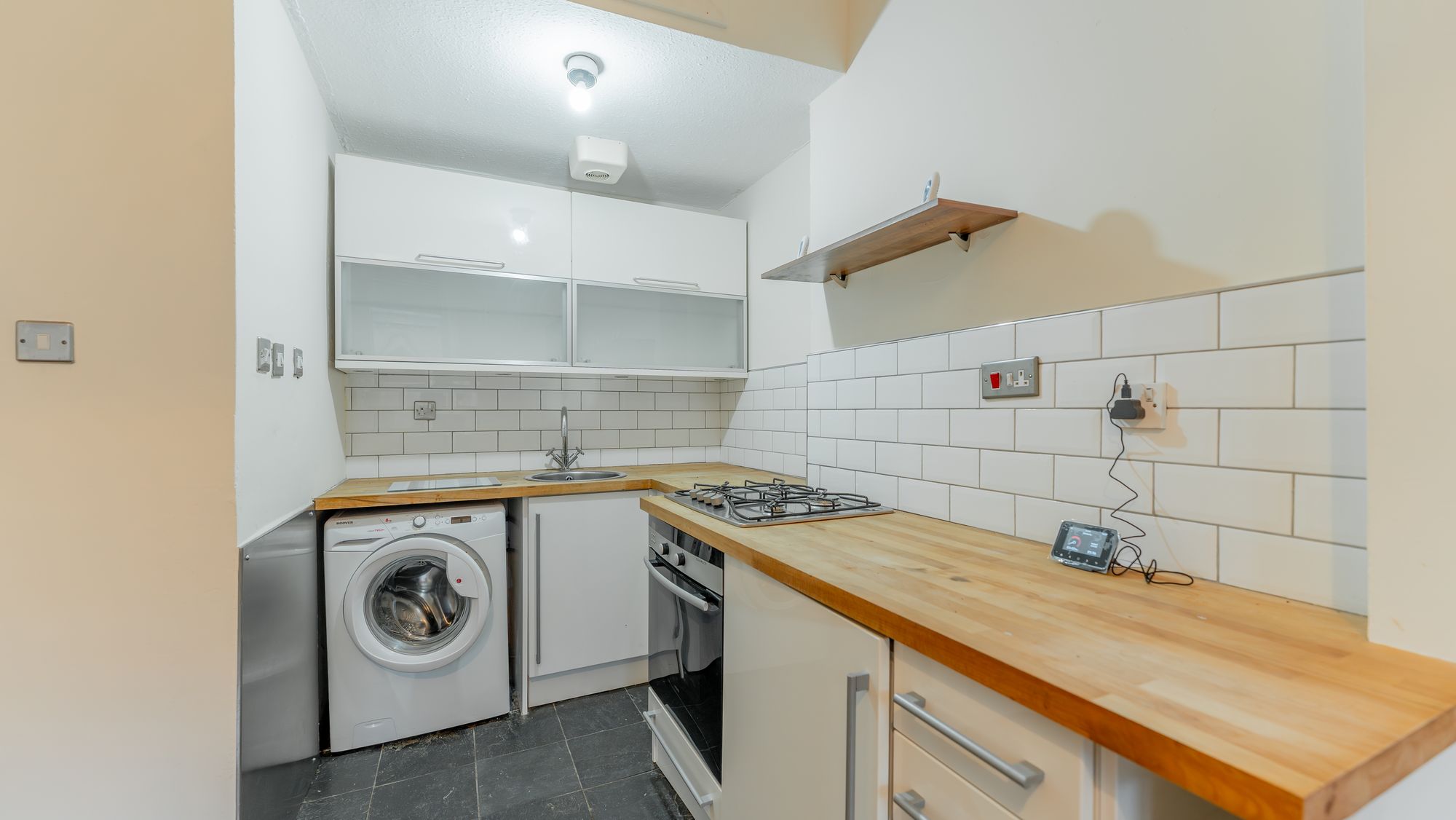 The building itself is accessed via a secure entry intercom system with stairs providing access to all levels. The home for sale is positioned on the first floor and offers bright and spacious living space. In brief, the accommodation extends to; welcoming entrance hallway with storage off, open plan living/kitchen. The kitchen itself has base and wall mounted units with tiled splash back and appliances. There is a rear facing double bedroom and the accommodation is completed by a main bathroom with three piece suite and shower over the bath.