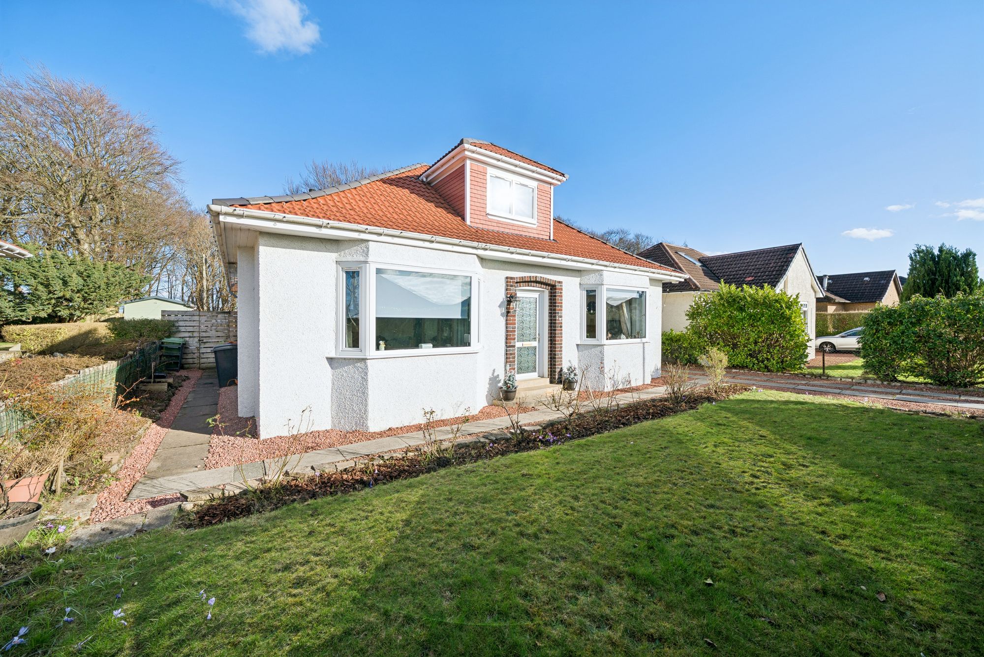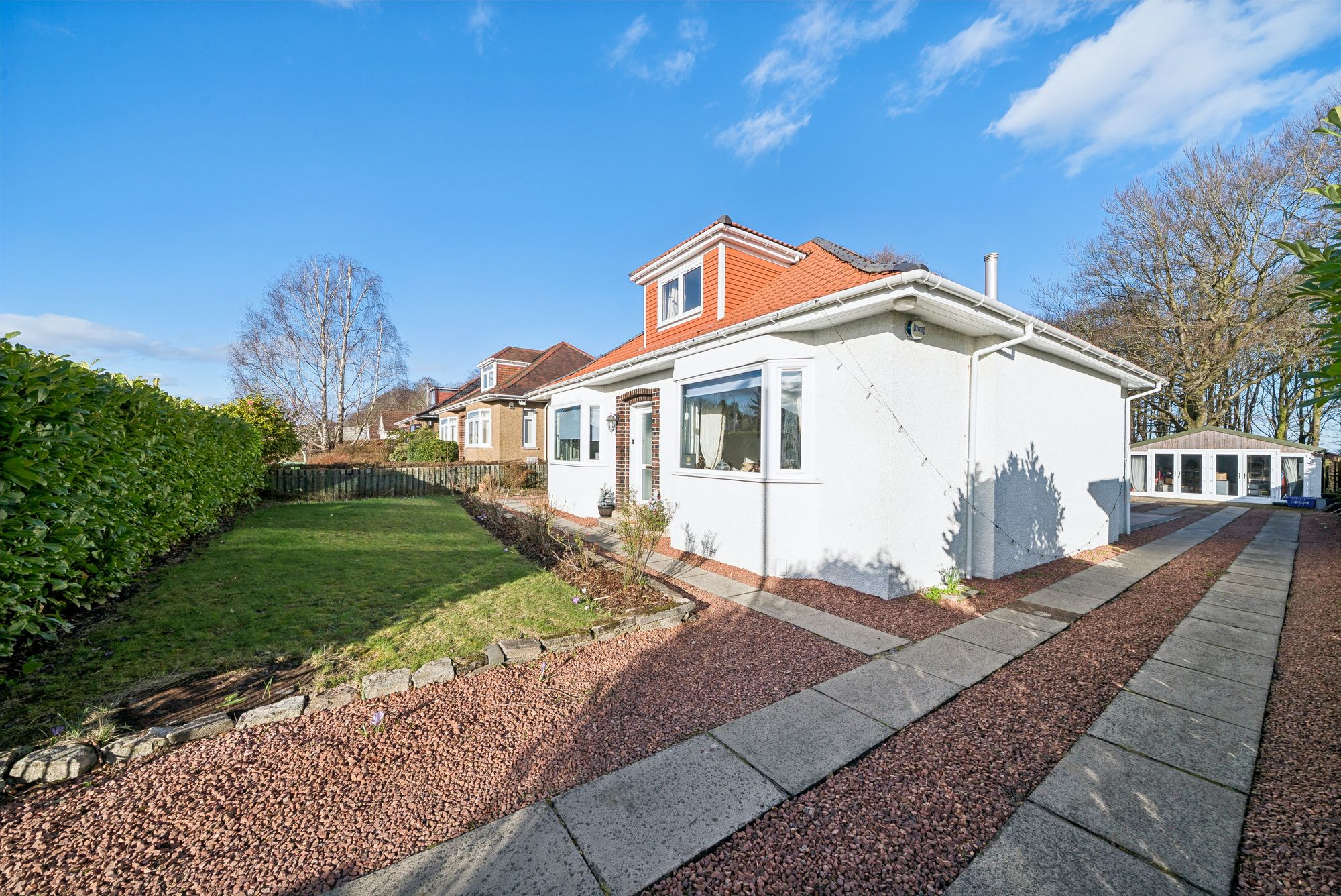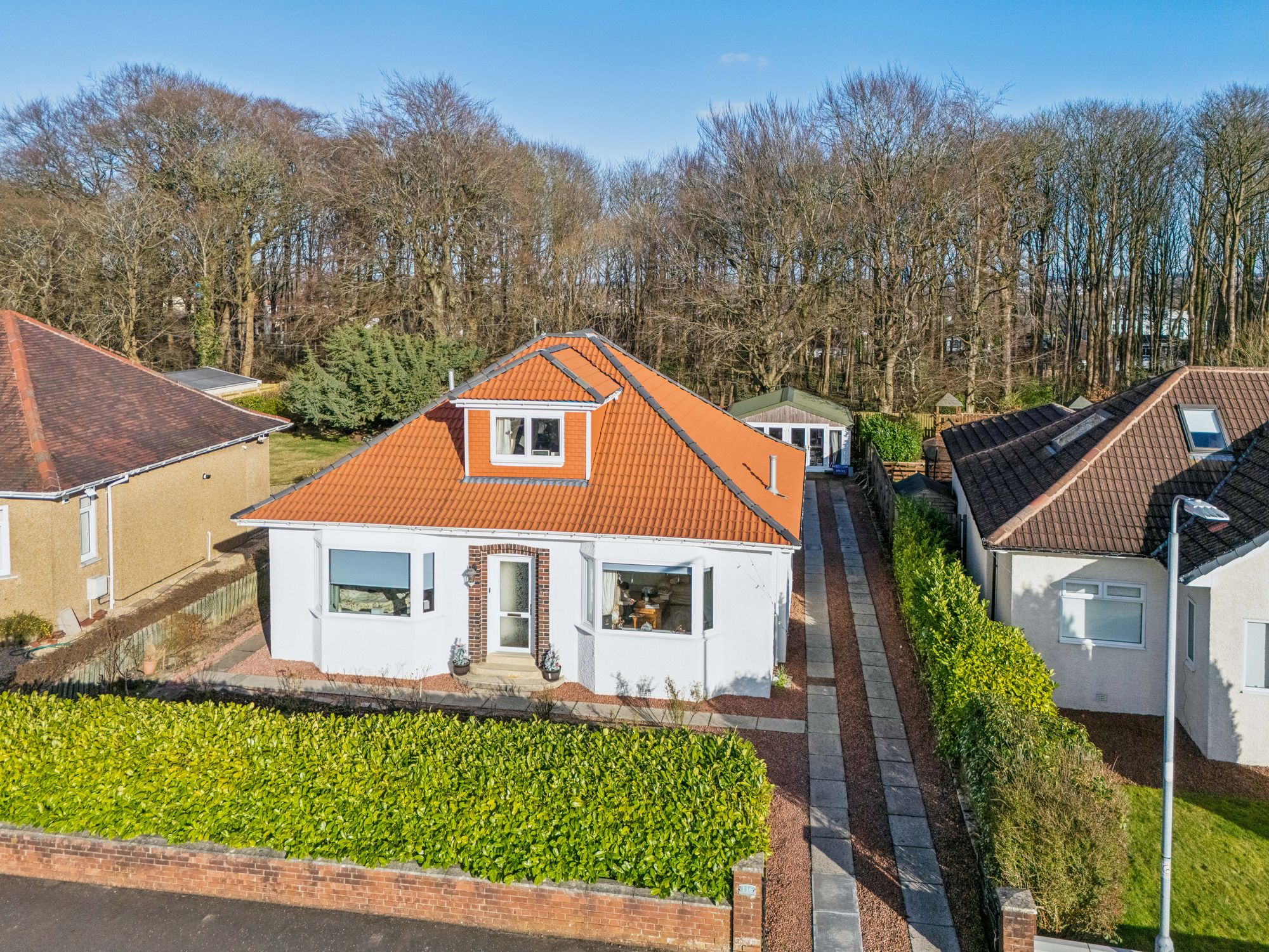 Situated within a peaceful and highly sought after residential pocket of Bearsden, this beautifully presented five bedroom detached bungalow offers spacious, flexible accommodation perfectly suited to growing families. Occupying a generous plot on the popular Henderland Road, the property is finished in attractive white render with a red slate roof and enjoys a wonderful backdrop onto Cairnhill Woods, providing a leafy, private outlook.