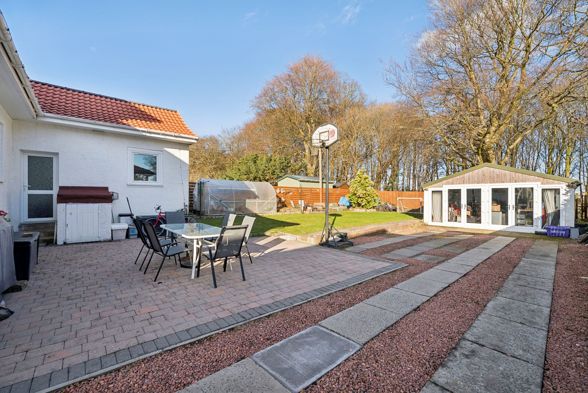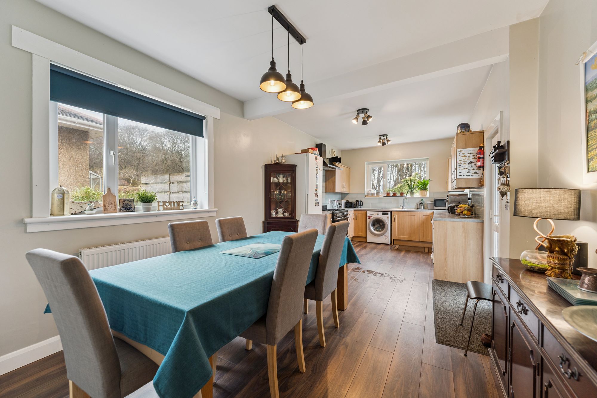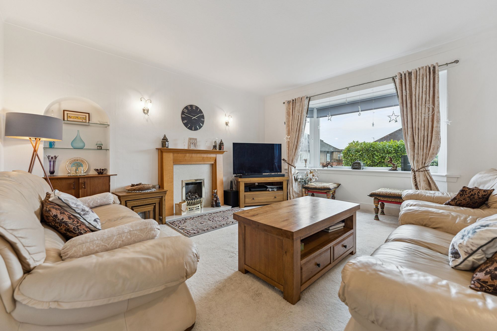 Situated within a peaceful and highly sought after residential pocket of Bearsden, this beautifully presented five bedroom detached bungalow offers spacious, flexible accommodation perfectly suited to growing families. Occupying a generous plot on the popular Henderland Road, the property is finished in attractive white render with a red slate roof and enjoys a wonderful backdrop onto Cairnhill Woods, providing a leafy, private outlook.
