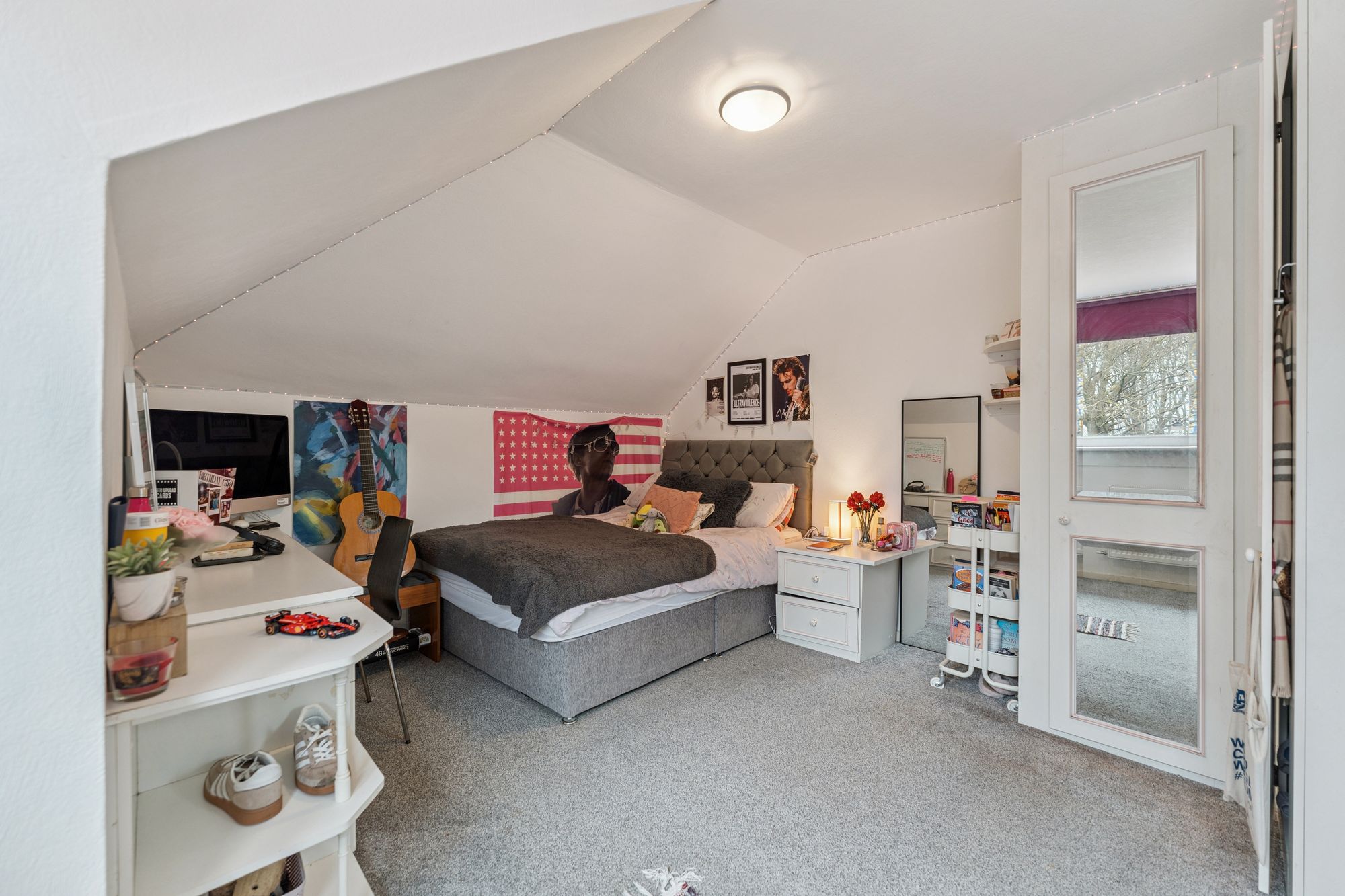 Upstairs, two additional bedrooms offer excellent flexibility and feature useful eaves storage. A family bathroom and a substantial storage cupboard extending into the eaves complete the upper level.