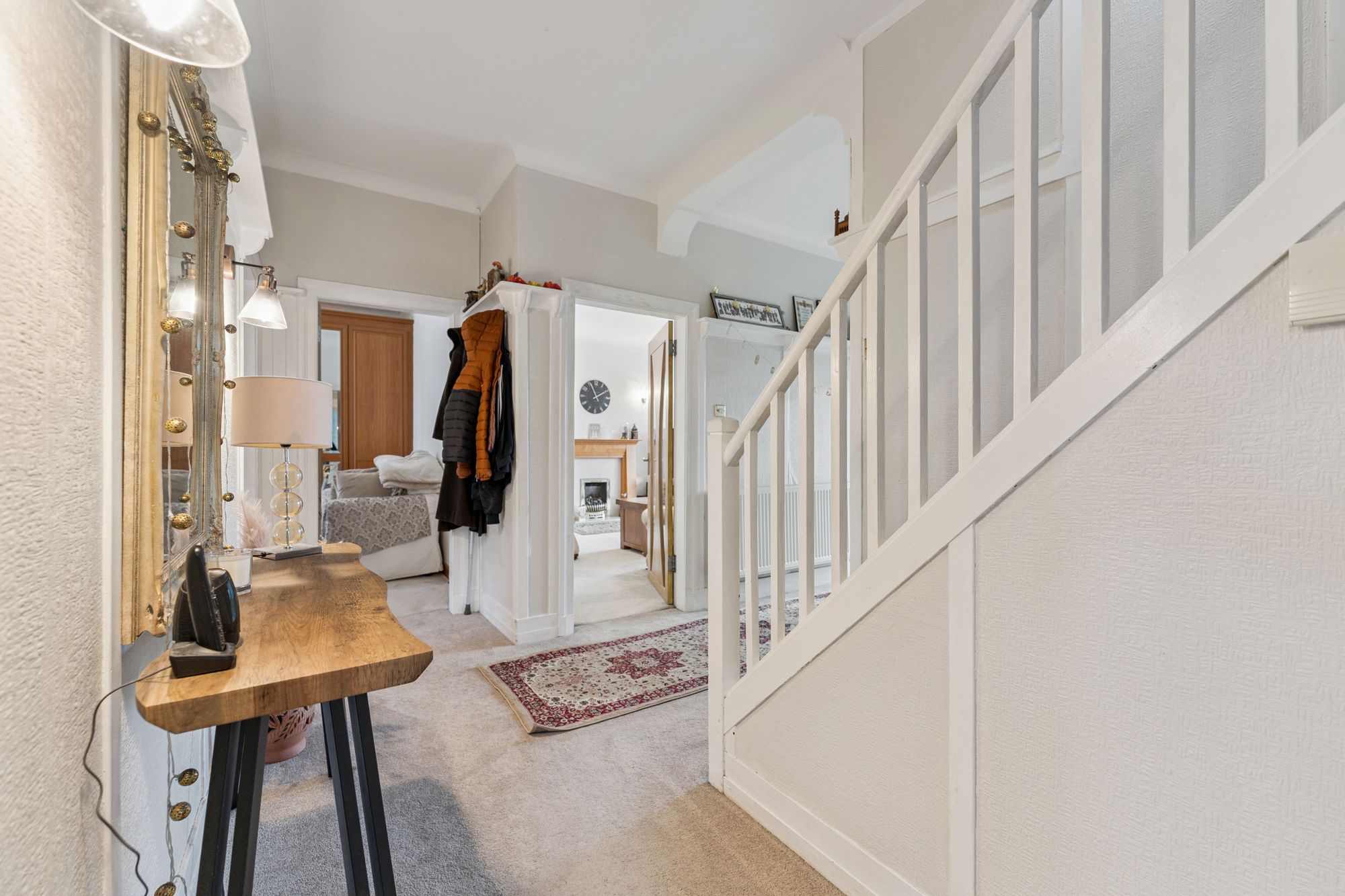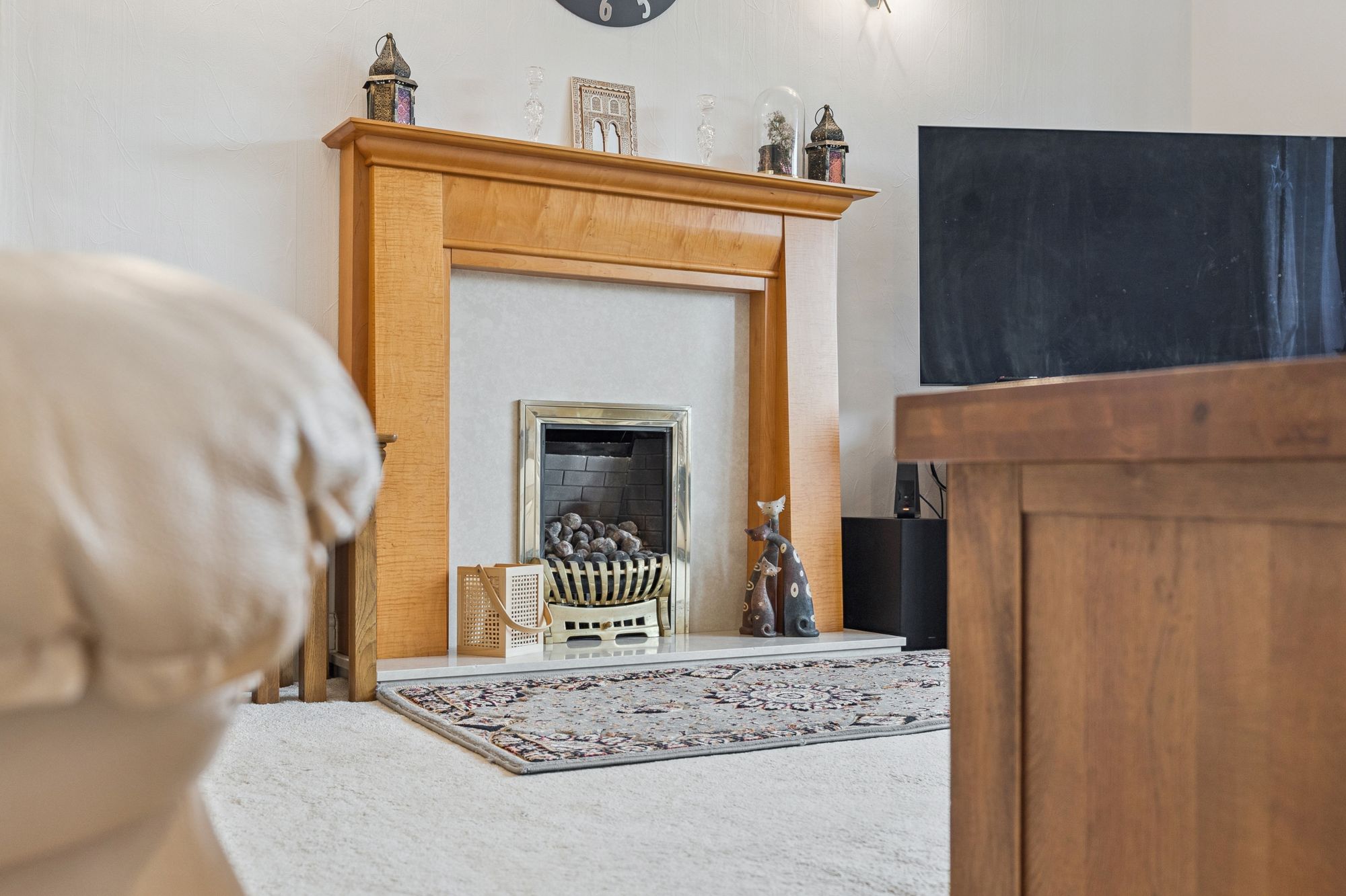 A welcoming entrance vestibule leads into a broad and spacious reception hallway. The formal lounge is generous in size, flooded with natural daylight and features a fireplace incorporating a gas fire and a charming bay window.