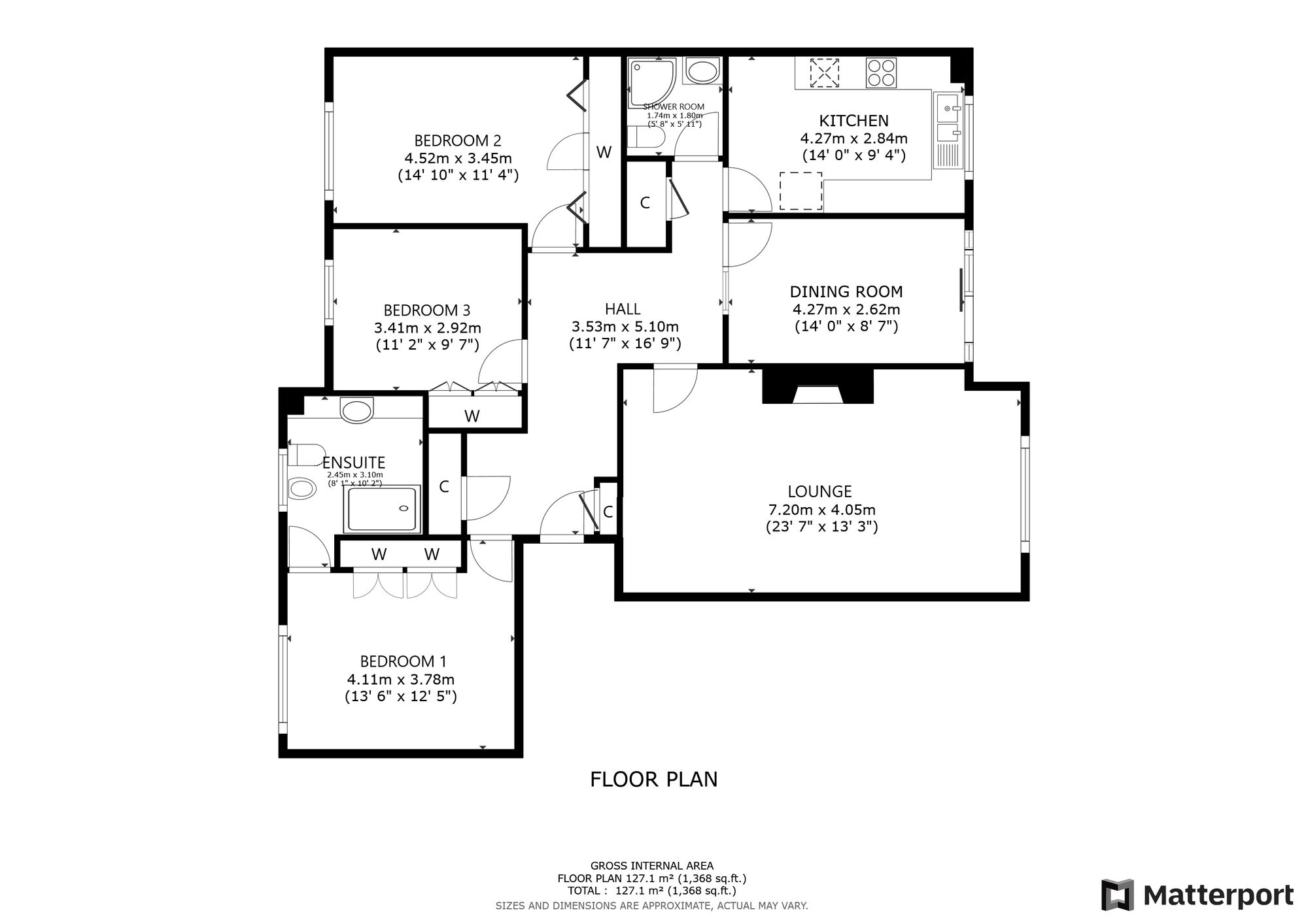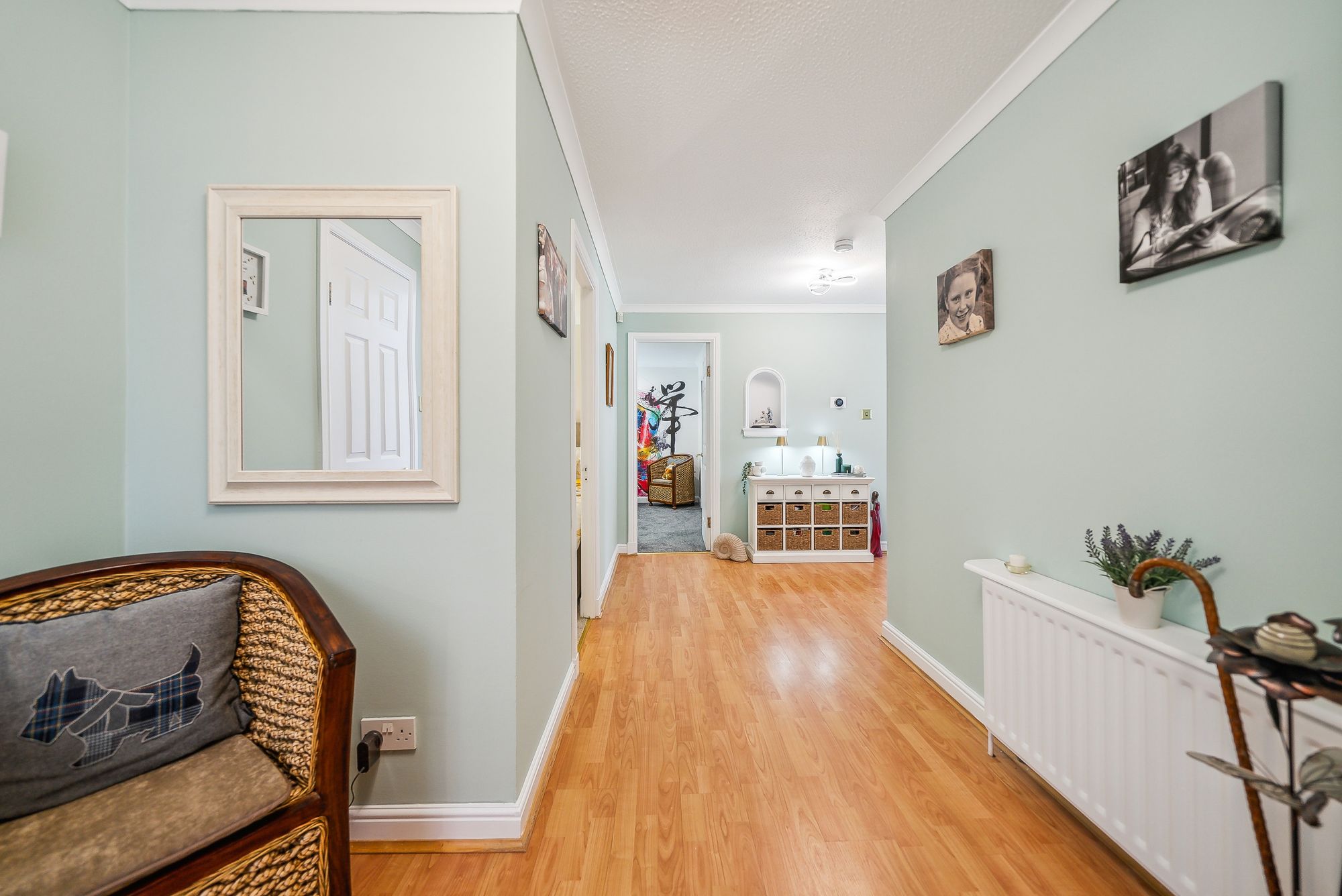 On approaching the building, a covered outer vestibule has a security entry system allowing access in to the building and the beautifully presented and recently re carpeted communal hallway is a very pleasant area. A gentle flight of stairs ascends to the upper landing which in turn gives access to the apartment. On entering, the large and welcoming reception hall has good in built storage and from here there is access to each of the rooms. To the front is a spacious lounge that enjoys lovely views over the development and with a feature fireplace at its focal point (living flame gas fire). Adjacent to the lounge is a separate and equally well proportioned dining room which has patio doors opening out on to a recently upgraded timber decked balcony, again with views over the gardens. Next to this is a good sized breakfasting kitchen that comes complete with extensive wall mounted and counter level units, a range of appliances and again with window facing to the front. Adjacent to the kitchen is a refitted shower room that has a shower enclosure, wc and vanity unit with wash hand basin. To the rear of the apartment there are three very well proportioned bedrooms, with the master being a particularly large room with built-in wardrobes, views over the gardens at the rear and with its own beautifully upgraded and spacious ensuite shower room that has a large walk-in shower, vanity unit with integrated wash hand basin, wc and bidet. The two further bedrooms are generous double rooms, again with views over the gardens to the rear. The apartment comes with full double glazing and has gas fired central heating.