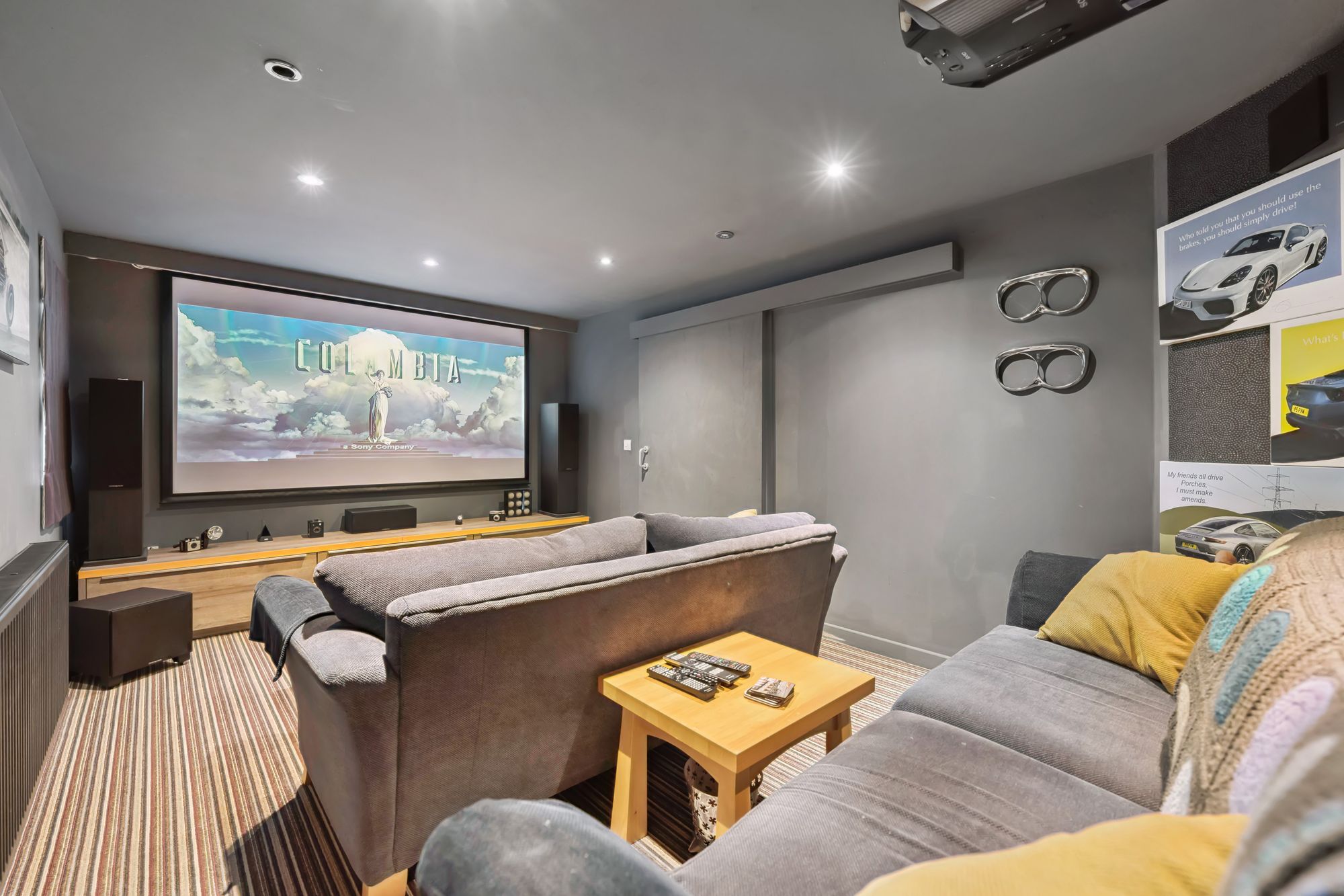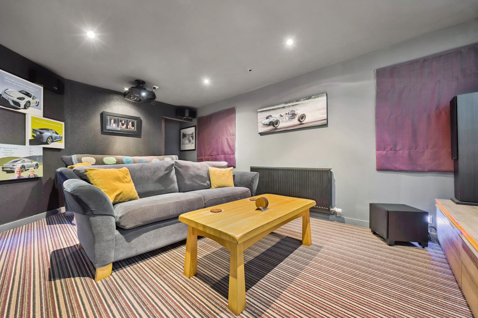 Continuing through the home, there is a practical utility room with external access, while a staircase leads down to a fantastic lower level cinema room, complete with full length window and door opening directly onto the rear garden.