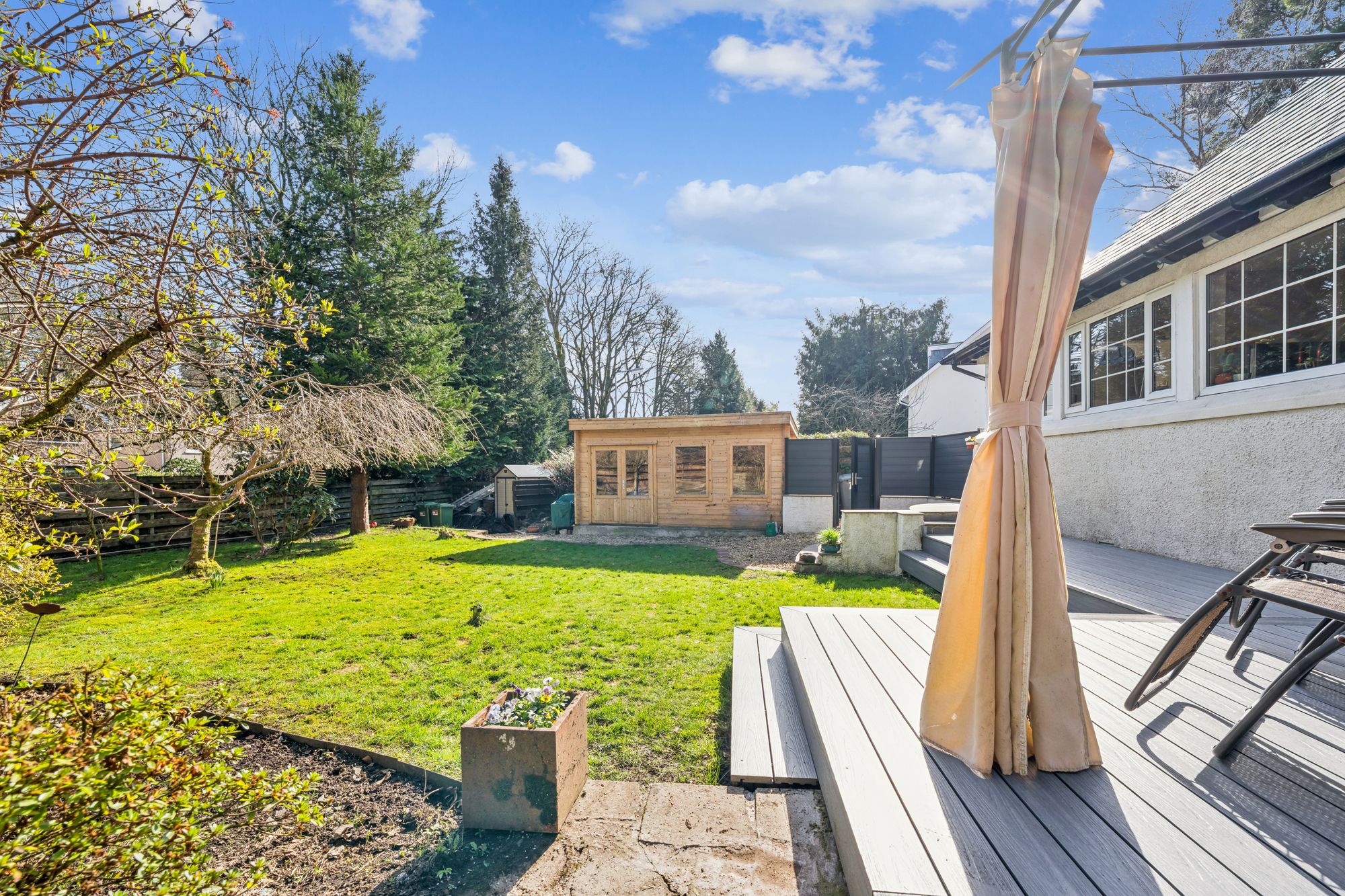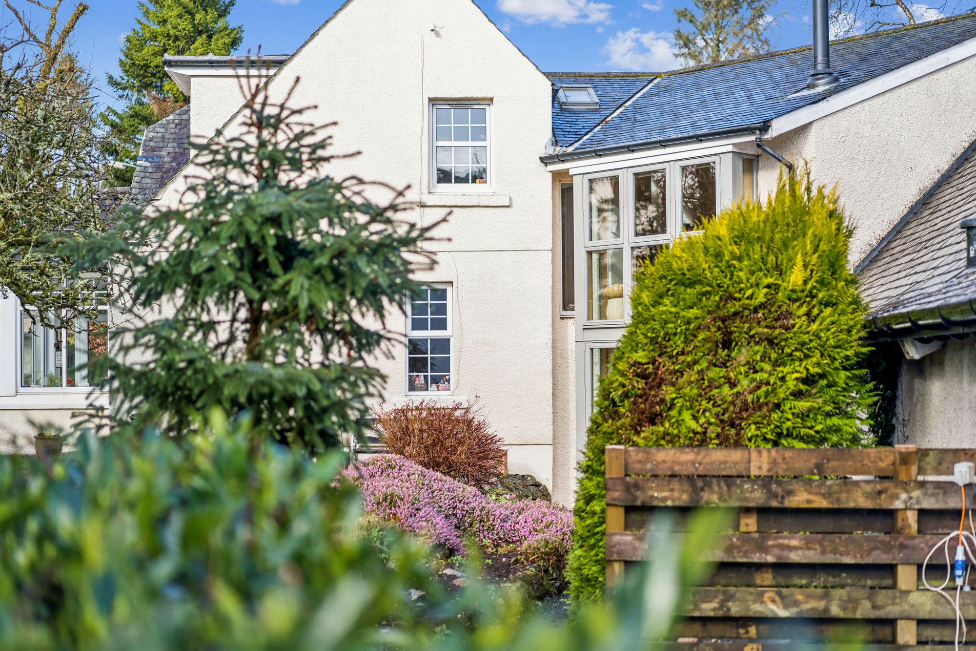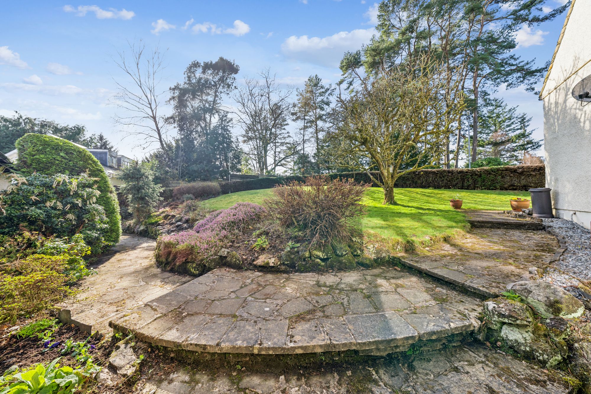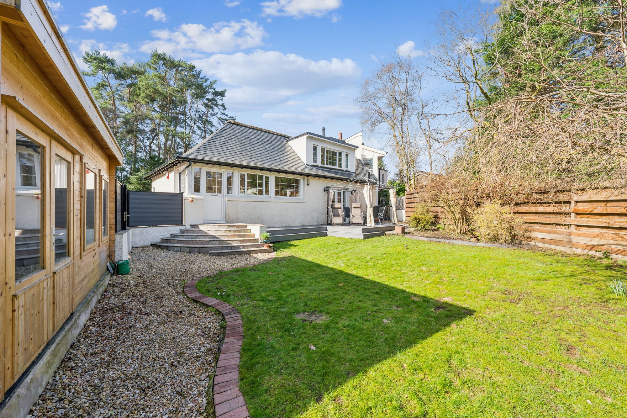 A truly stunning detached, six bedroom family home set within one of Milngavie’s most exclusive addresses, enjoying a private and enclosed plot surrounded by mature trees, offering both seclusion and tranquillity. This unique and characterful home is finished in a pleasant combination of painted render, with a natural slate hipped roof. The property has been cleverly developed, extended and improved over the years to provide superb family accommodation.