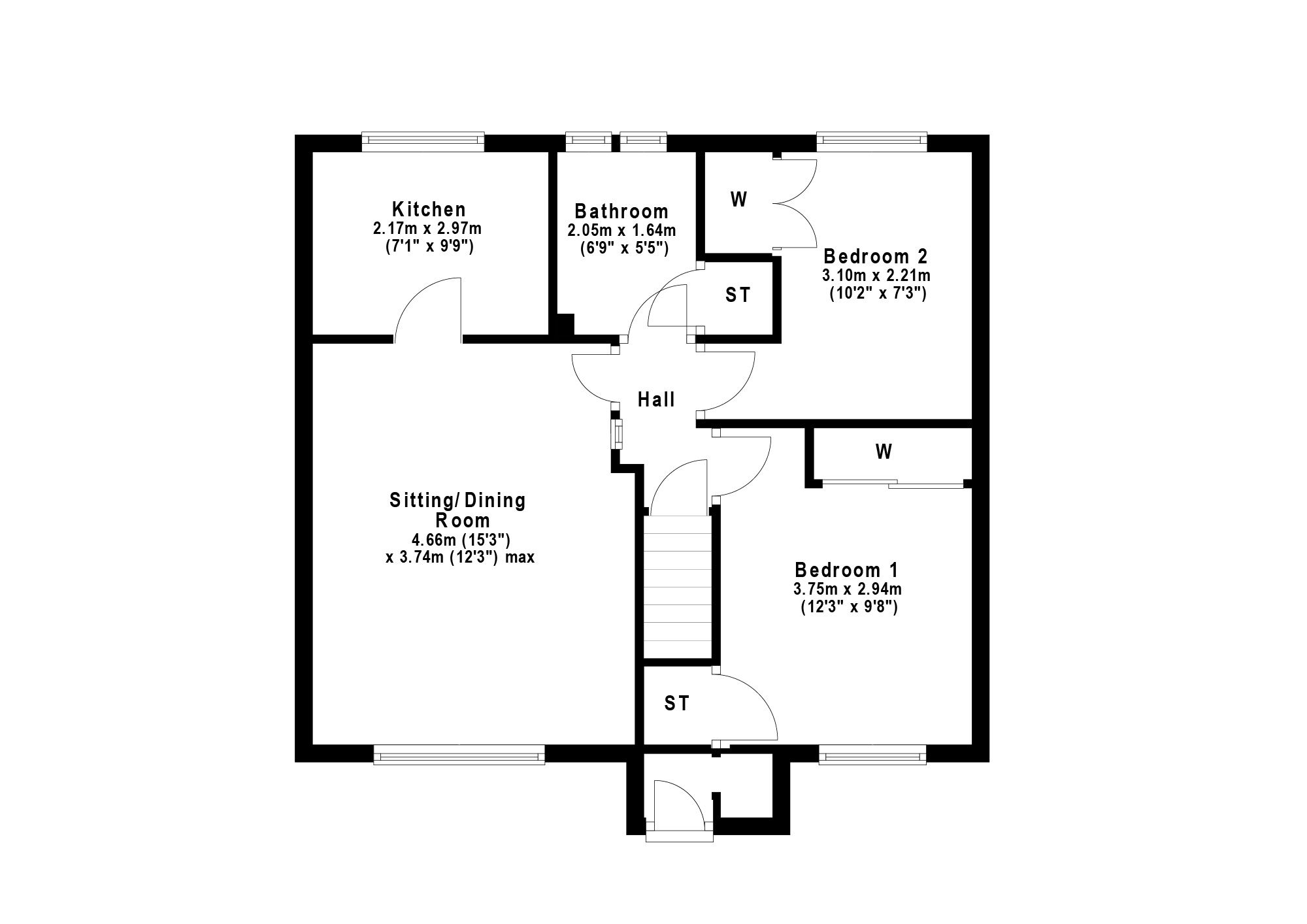 Bedroom Two 10’2” x 7’3” 3.10m x 2.18m (to robes)