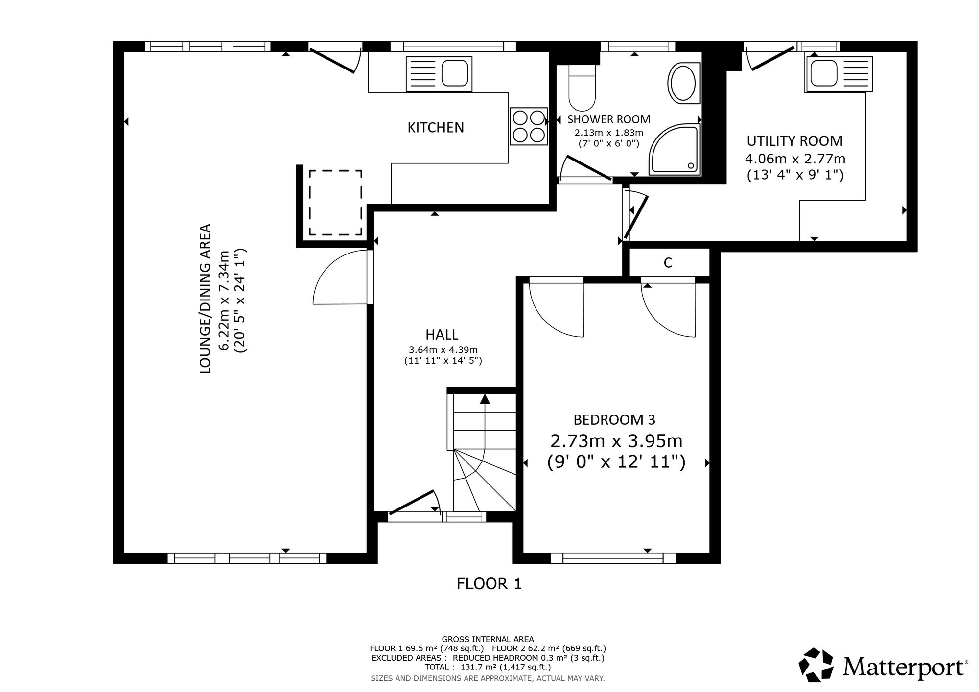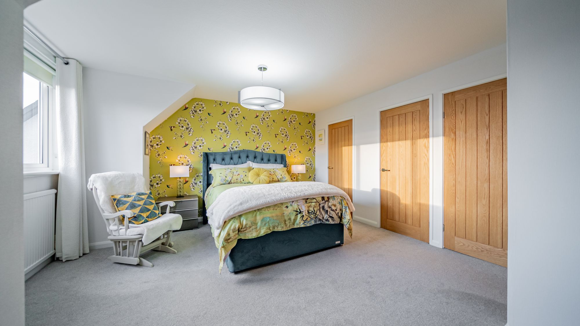 A welcoming and impressive reception hall sets the tone on arrival, leading seamlessly into a bright and expansive open-plan lounge and dining area. This superb space forms the heart of the home, ideal for modern family living and entertaining alike, and is flooded with natural light from large windows to both the front and rear. Adjoining the dining area is a stunning contemporary kitchen, beautifully finished with an extensive range of high quality wall and floor units and complemented by integrated appliances. The kitchen enjoys pleasant outlooks across the rear garden and provides direct access outdoors. Accessed from the main hallway is a particularly spacious and immaculately presented utility room, modern in style with wall-mounted and counter-level units and a second door leading out to the rear decking. A particularly valuable feature of the home is the generously proportioned ground floor double bedroom, complete with built-in storage and a large window allowing excellent natural light. This bedroom is supported by a sleek, modern shower room, making the ground floor perfectly suited for guest accommodation, home working, or multi-generational living.