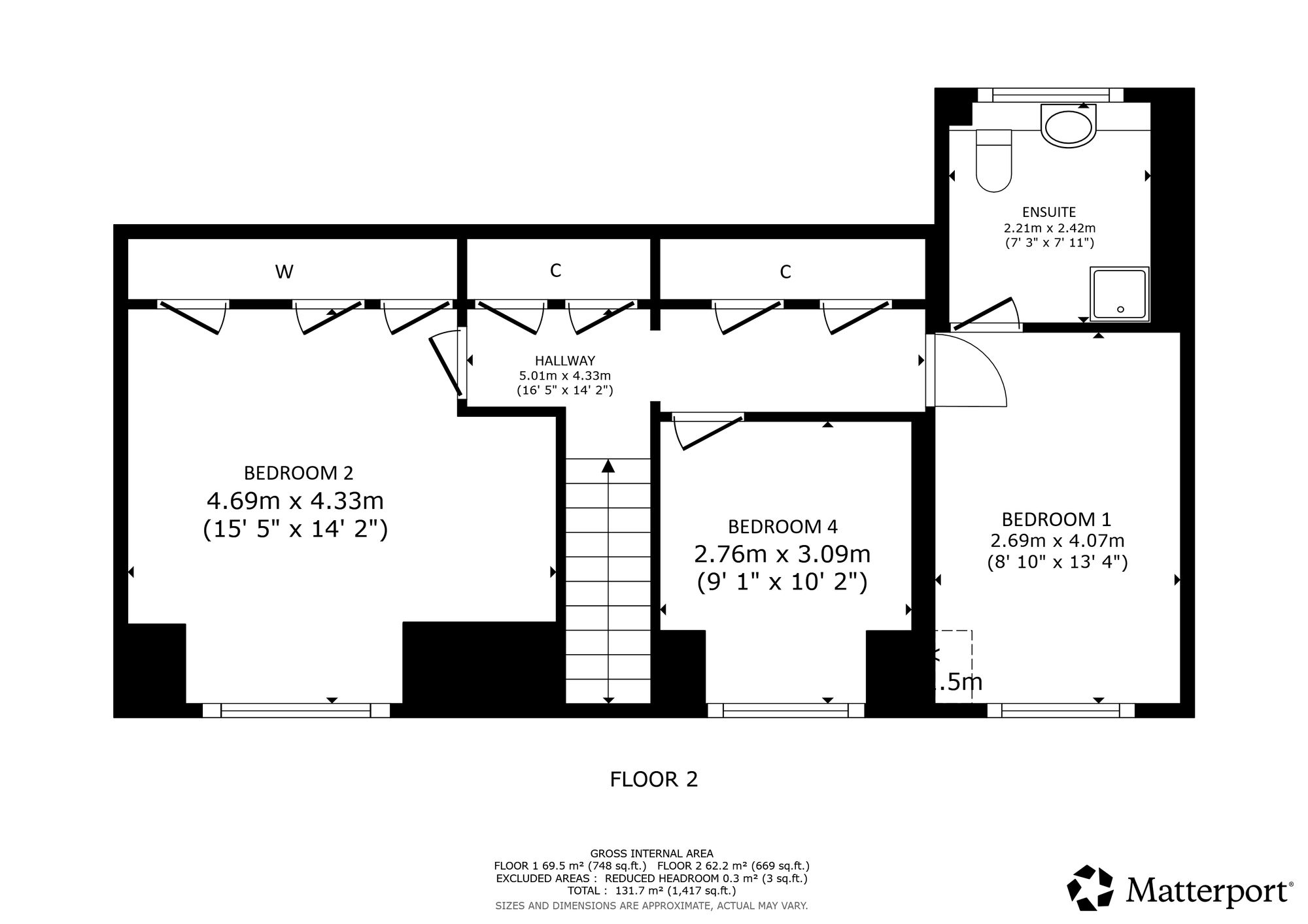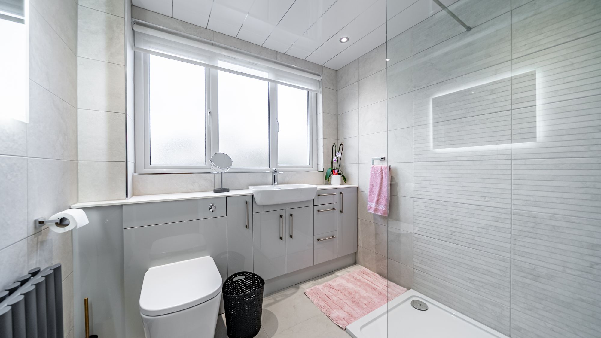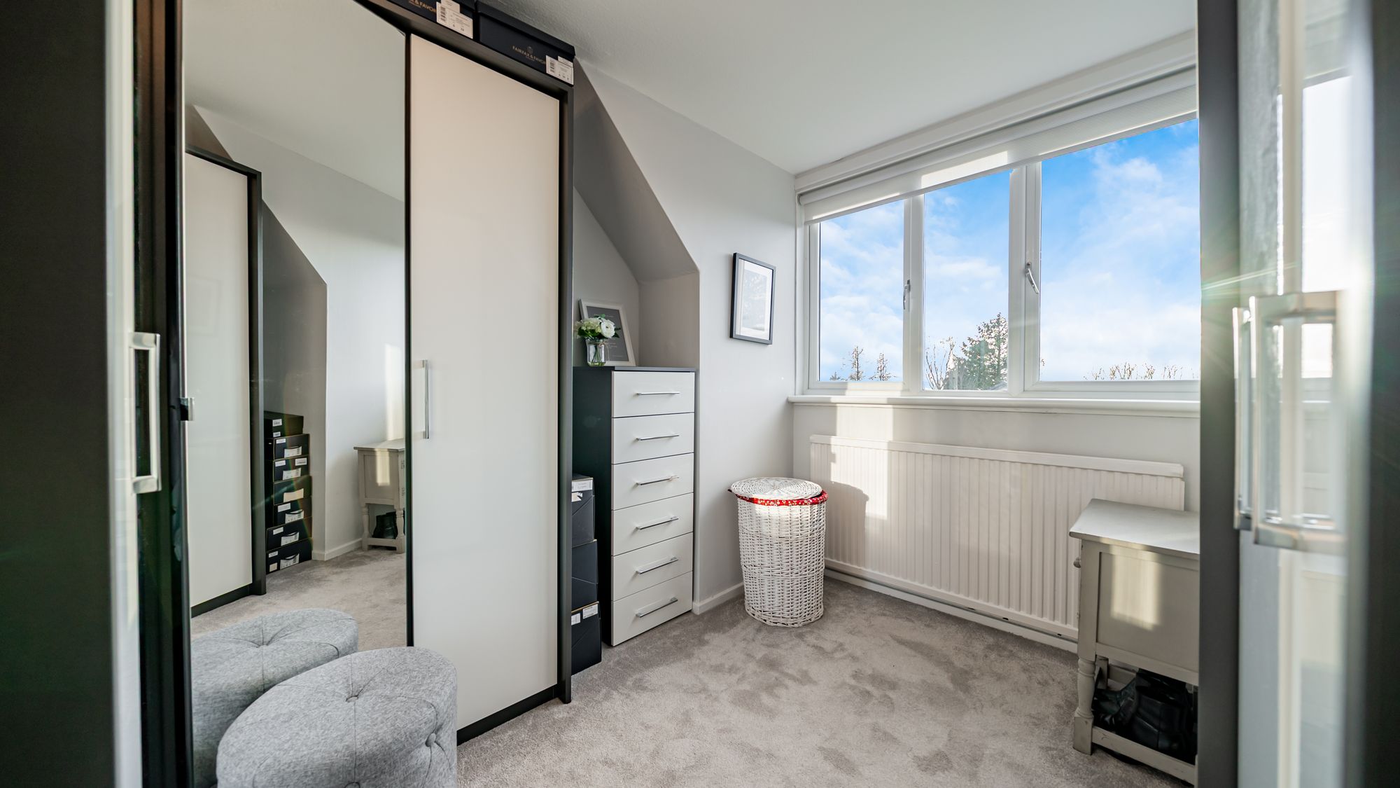 The upper floor is equally impressive. A generous landing provides extensive built-in storage, while the master bedroom is beautifully presented and enjoys views across the front gardens. This room benefits from a large and luxurious ensuite shower room, fully fitted with a walk-in shower enclosure, wc and wash-hand basin. Across the hall lies the second bedroom, the largest in the property, boasting stylish décor and substantial built-in storage. Completing the accommodation is the fourth bedroom, currently utilised as a dressing room but offering excellent versatility as an additional bedroom, home office or cosy snug. Further features include PVC-framed double-glazed windows and doors, along with a mains gas supply, ensuring comfort, efficiency and peace of mind throughout the home.