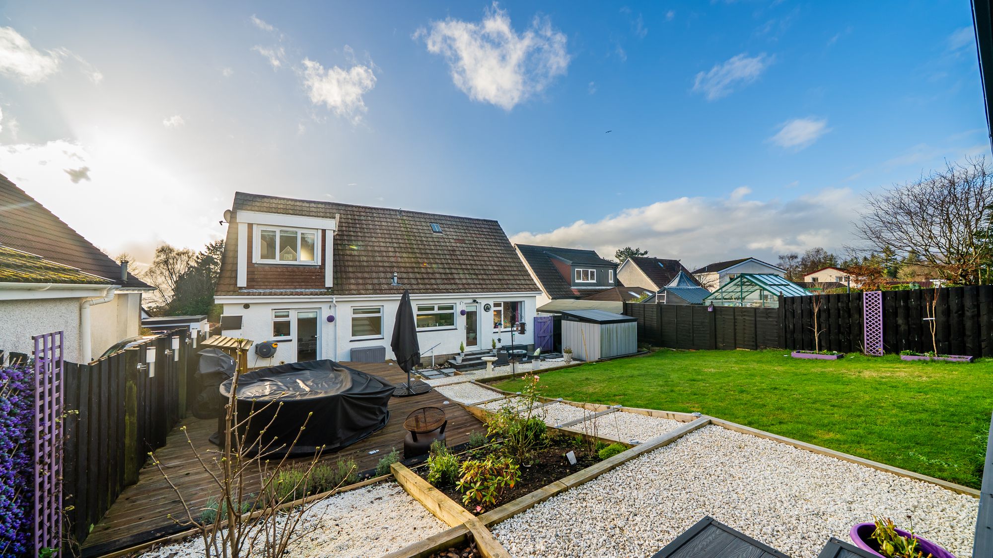 Set within one of Helensburgh’s most sought-after residential pockets to the north-east of the town, this outstanding detached villa with side extension commands an elevated position and enjoys panoramic views of the Clyde. The property delivers exceptional, flexible family living across two generous levels, finished to a high specification throughout and offering a superb blend of style, space and functionality.