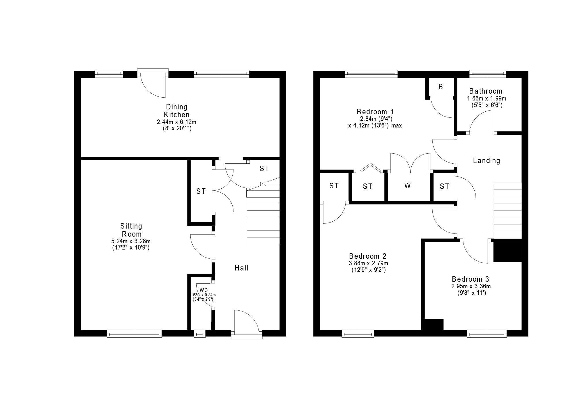 Downstairs WC 5’4” x 2’9” 1.63m x 0.84m