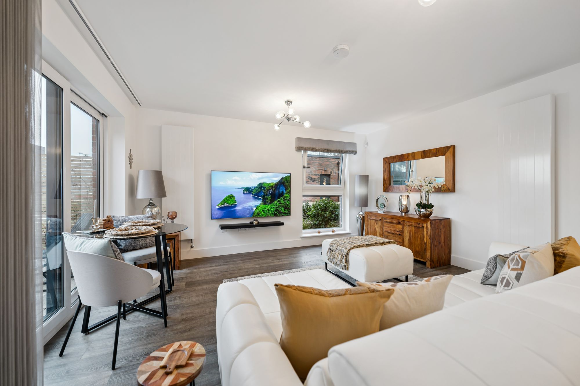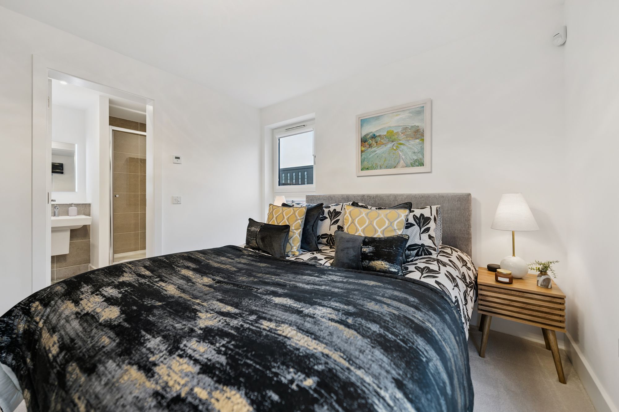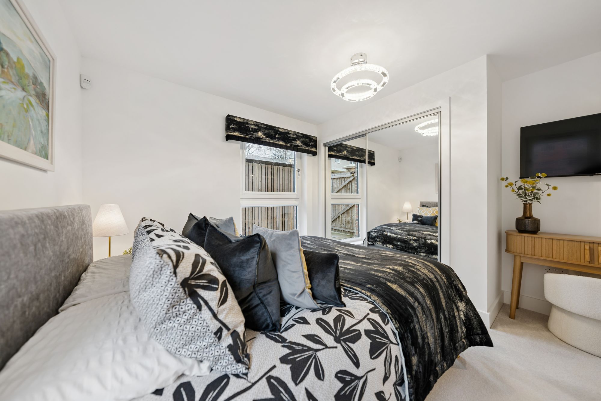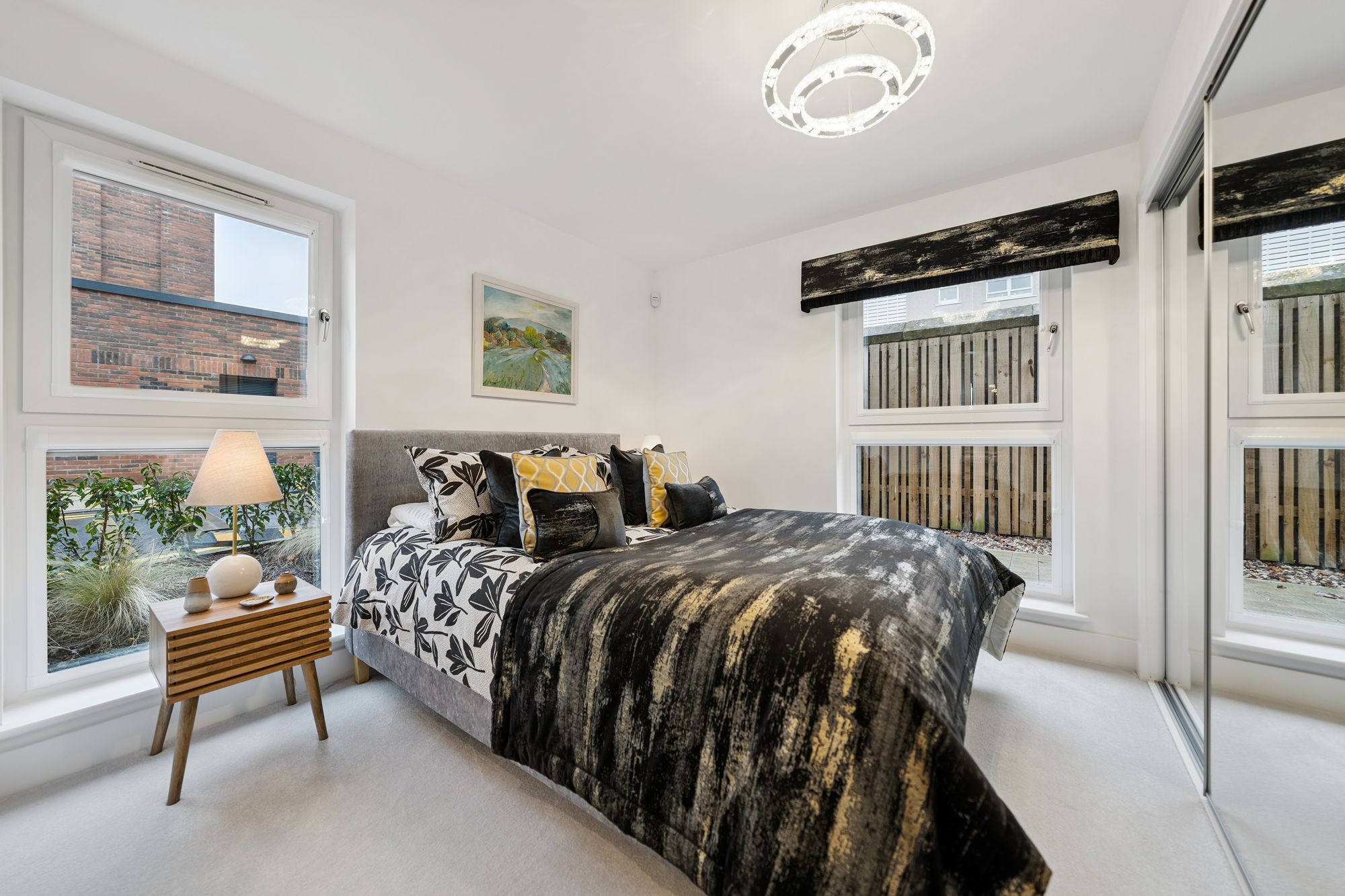 There are two well-proportioned double bedrooms, both benefiting from fitted wardrobes. The principal bedroom is particularly impressive, enjoying dual-aspect windows that create a bright and airy feel, along with a beautifully finished en-suite shower room. The accommodation is completed by a stylish main bathroom, fitted with a modern three-piece suite and shower over the bath.