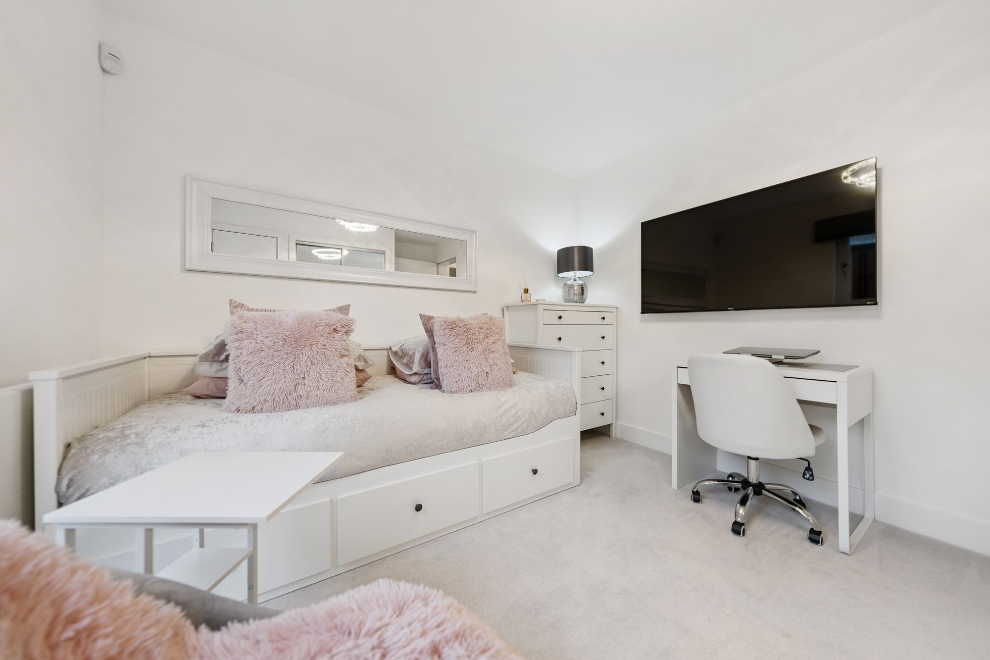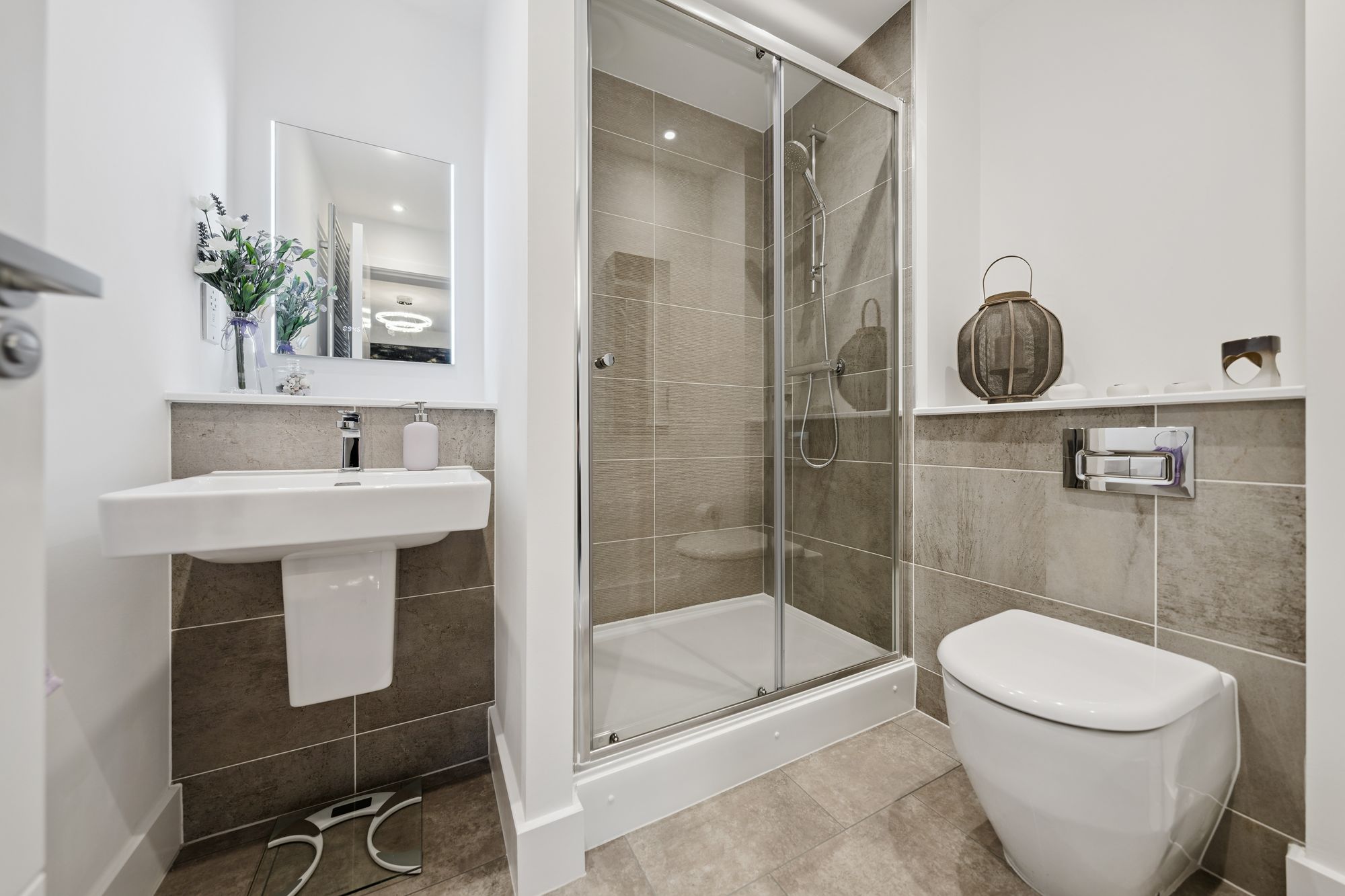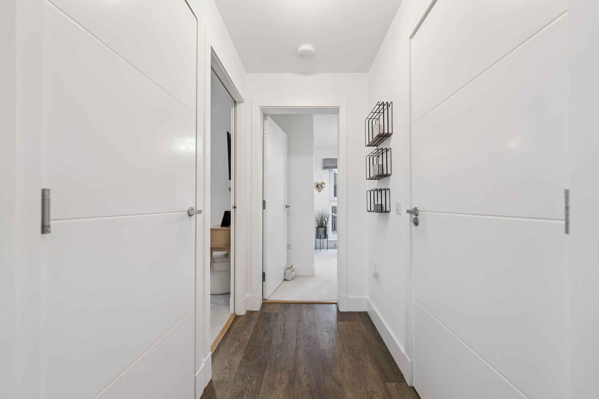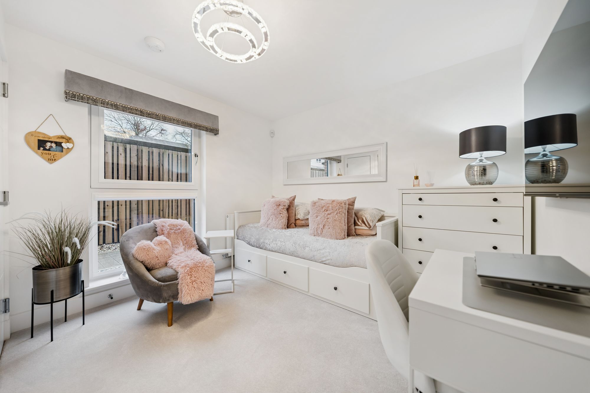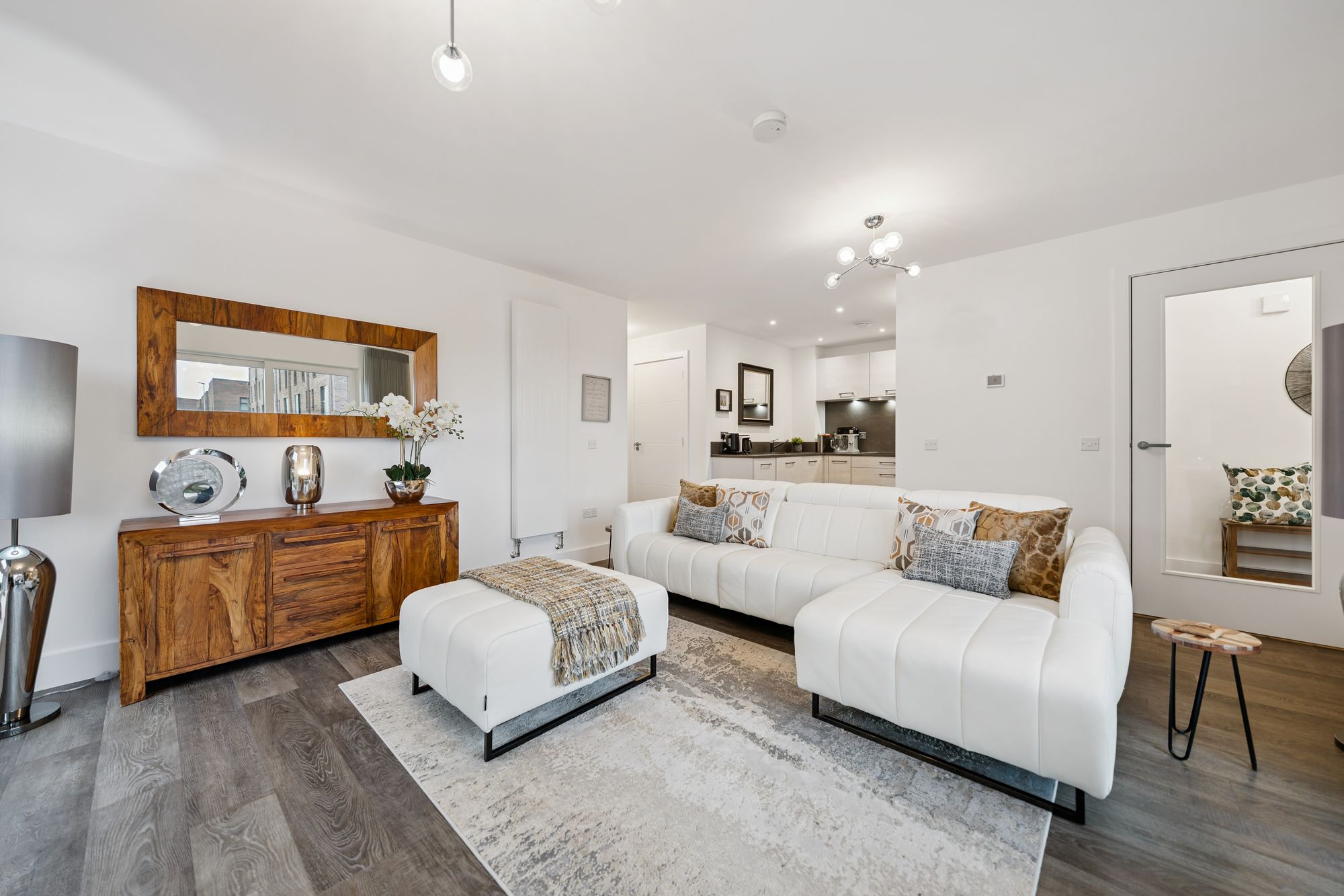 There are two well-proportioned double bedrooms, both benefiting from fitted wardrobes. The principal bedroom is particularly impressive, enjoying dual-aspect windows that create a bright and airy feel, along with a beautifully finished en-suite shower room. The accommodation is completed by a stylish main bathroom, fitted with a modern three-piece suite and shower over the bath.