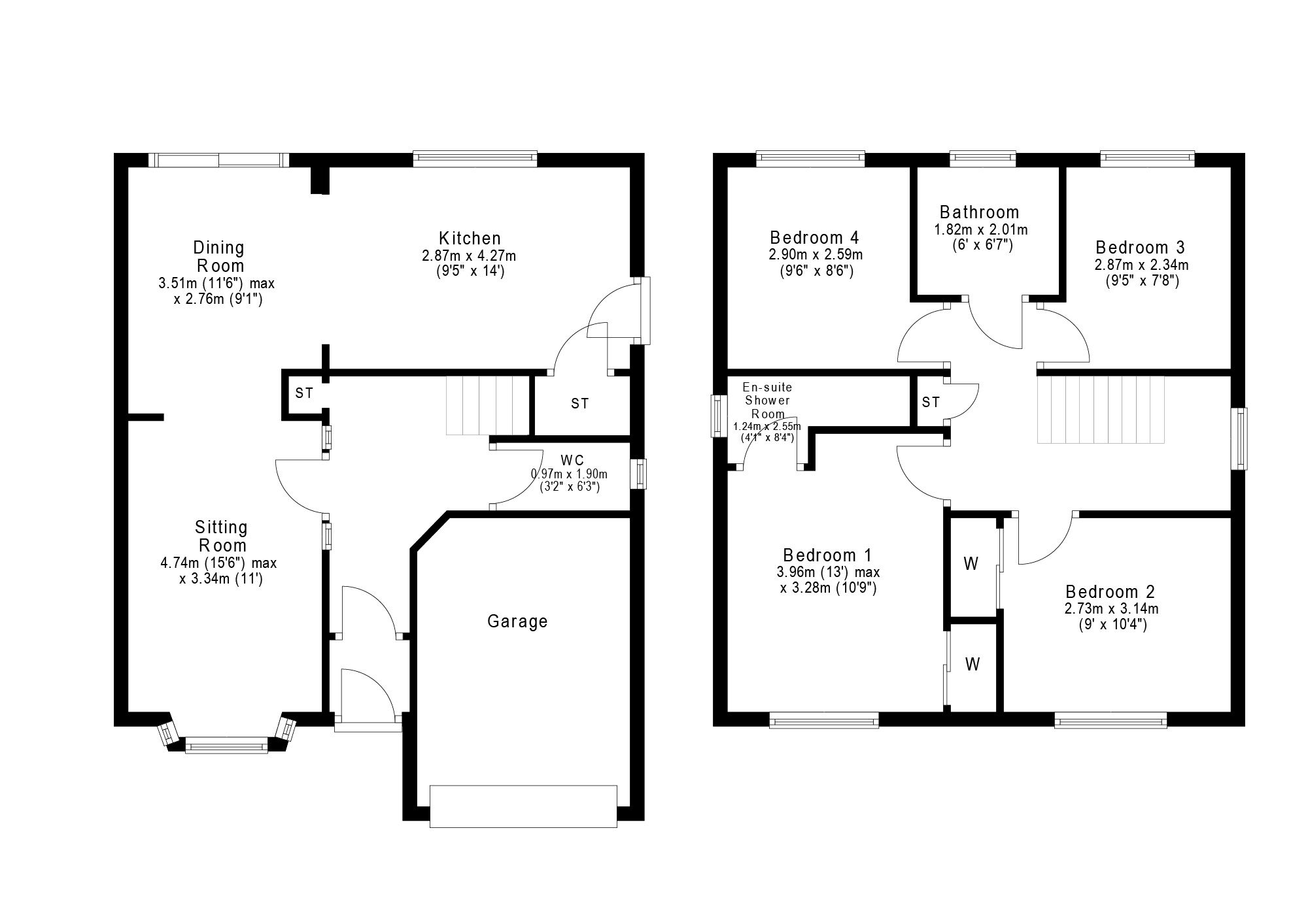Bedroom Four 9’6” x 8’6” 2.90m x 2.59m